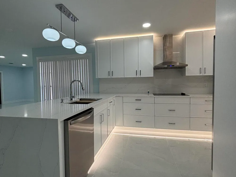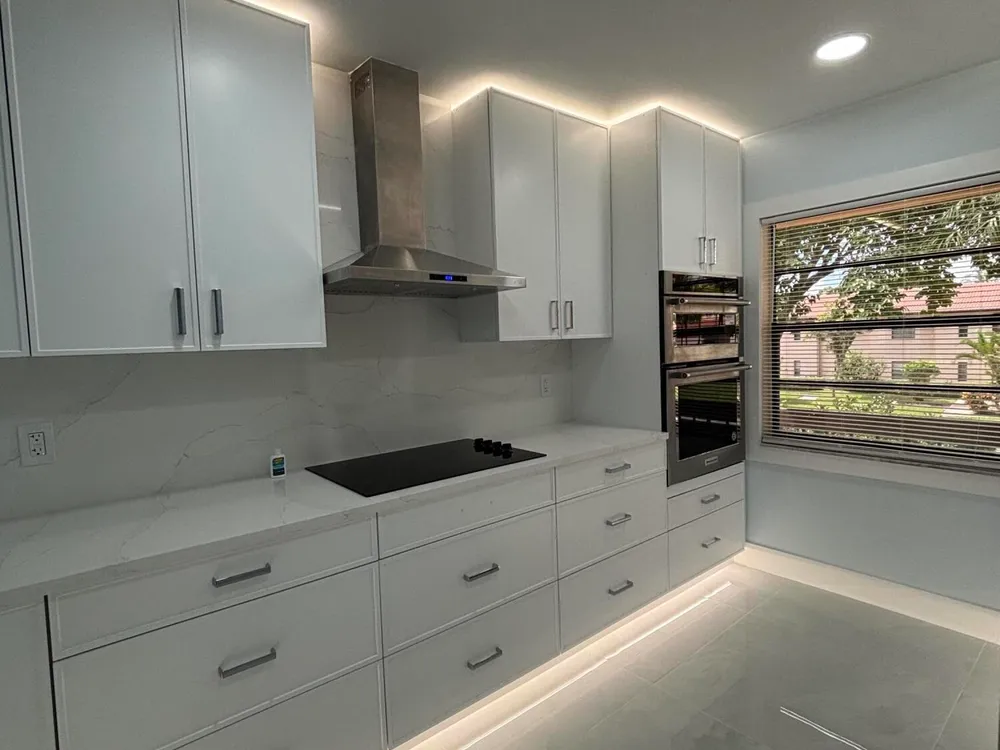Walk into your newly remodeled 2 bed/ with den area...Enjoy the spacious open plan condo with plenty of room for entertaining, tv area and dining. Gorgeous white porcelain tile throughout and pristine carpets in the bedrooms. Upgraded kitchen includes all new appliances, built in oven/microwave. Separate cook top..Plenty of countertop space for gourmet cooking.. Master bath has stunning walk in shower , double sink vanity, back lit mirrors and enhanced by tile that runs up to the ceiling . Guest bath also has abeautiful walk in shower and vanity.Master bedroom has massive amount of closet space , capable of housing the largest wardrobes ...Beyond your living space is an extra long patio with glass sliders where you can enjoy your early sunrises....this unit is a must see.....