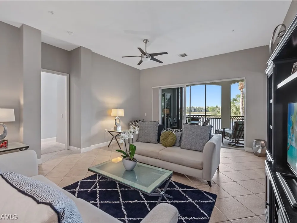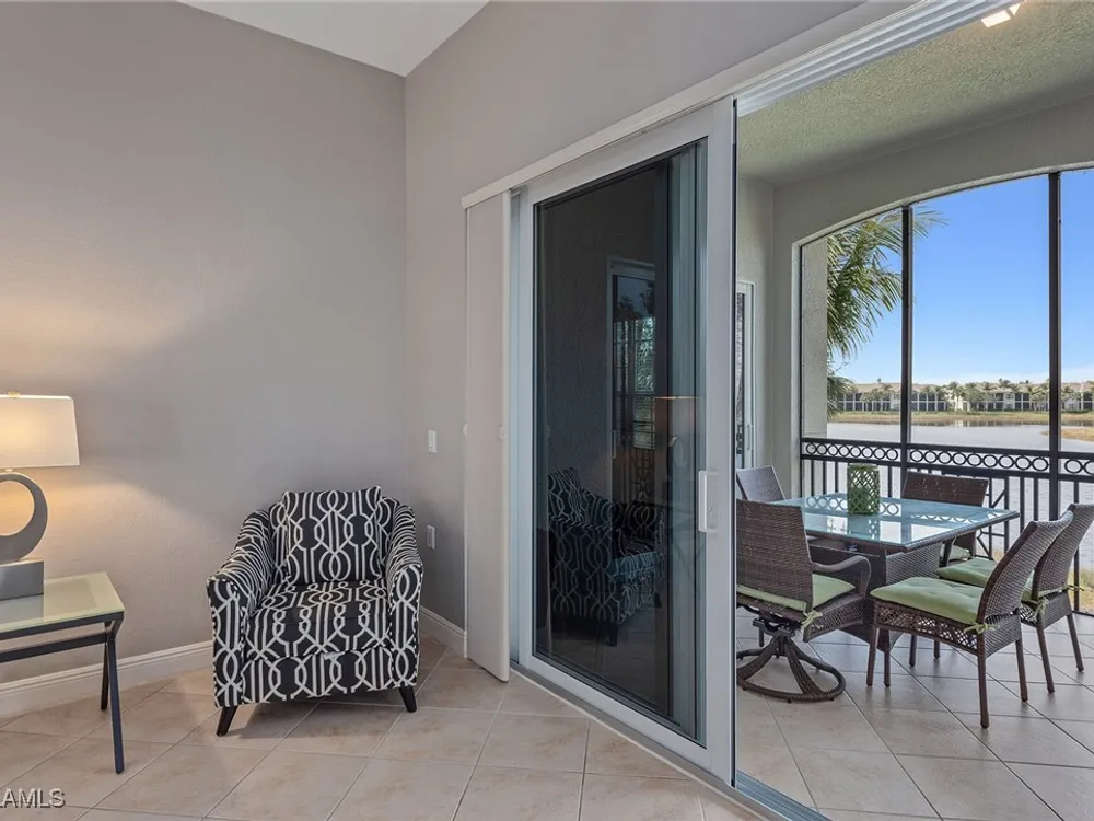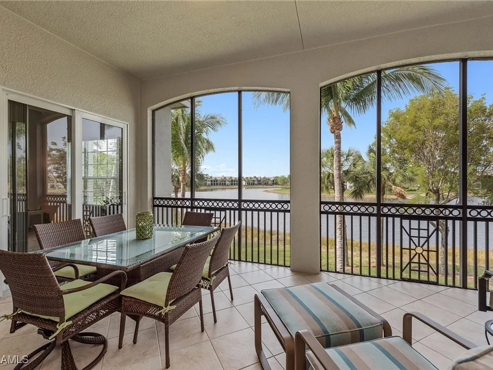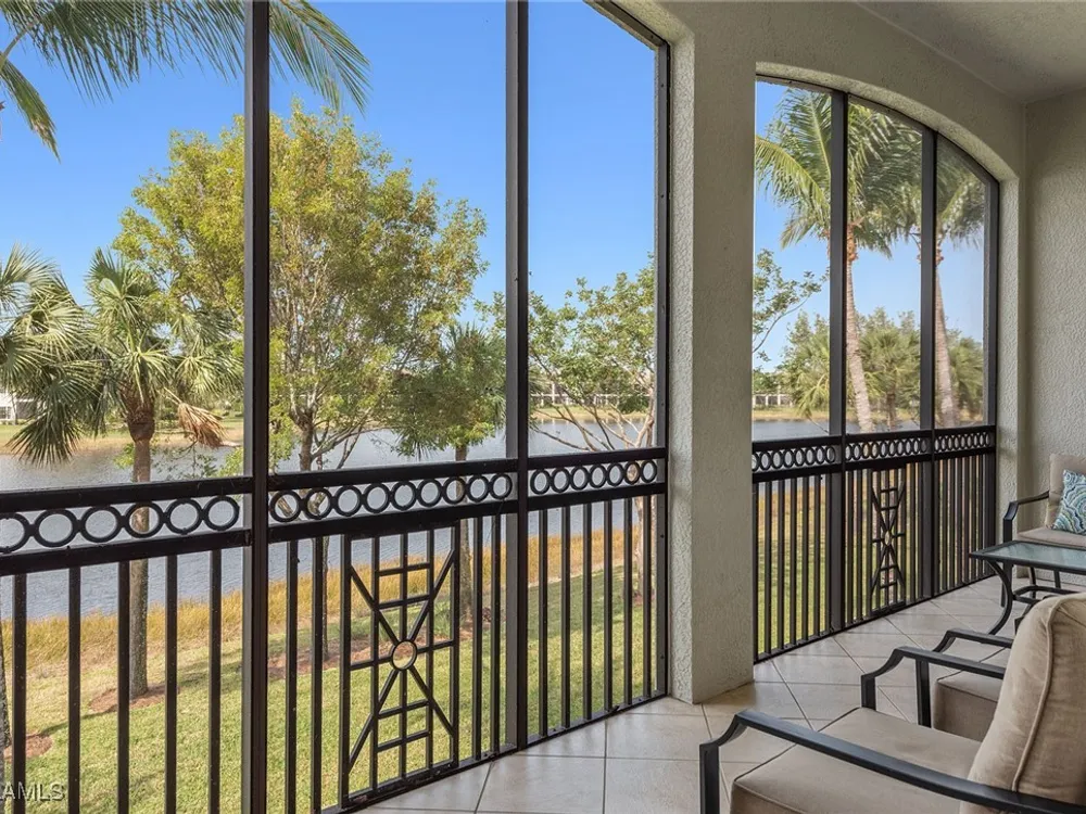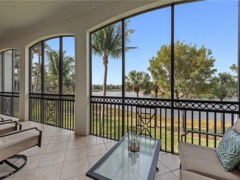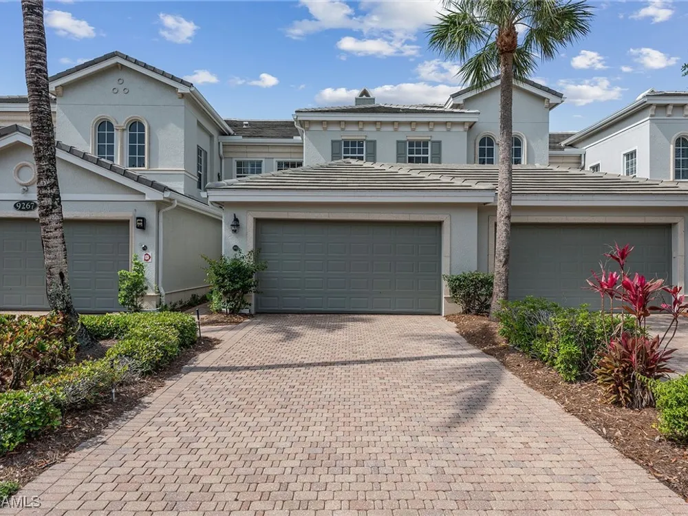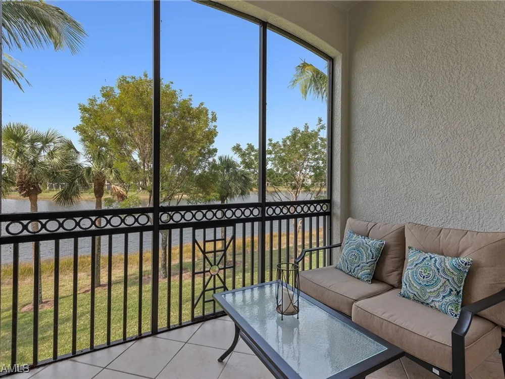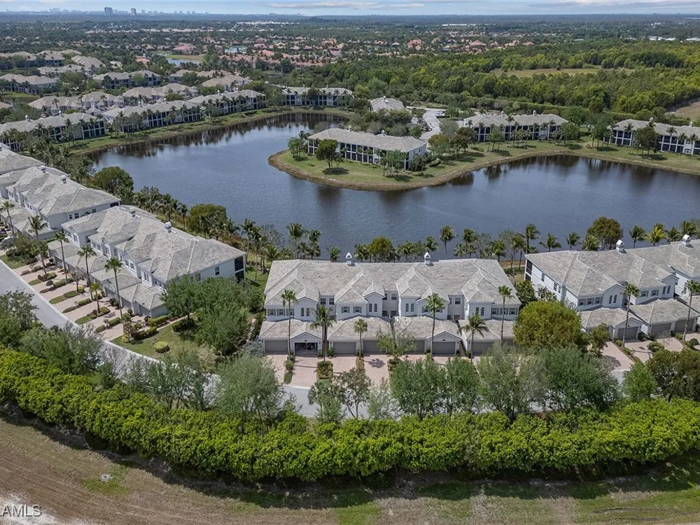 Are you searching for a peaceful Southwest Florida retreat with long, tranquil lake views and abundant natural light? This stunning Carona floor plan coach home in Laguna at Fiddler’s Creek captures the essence of elevated resort-style living with its desirable southwest exposure, expansive covered lanai, and private water vistas that create a serene backdrop for everyday relaxation or entertaining. Offering three bedrooms, three baths and a two-car garage, this well-appointed residence welcomes you with diagonal tile flooring throughout the main living areas, high ceilings, and a thoughtful split-bedroom floor plan that balances privacy with everyday comfort. The living room features modern ceiling fans and glass sliders that seamlessly connect to the lanai, bringing in tranquil views and soft breezes. The kitchen blends functionality and style with shaker-style cabinetry, granite countertops, a tumbled marble tile backsplash, recessed lighting and a breakfast bar counter. Stainless steel GE appliances, including a gas range, newer microwave, refrigerator/freezer, and dishwasher, complement the space, while a walk-in pantry and cozy dining area add everyday convenience. The owner’s suite is a calming sanctuary with direct lanai access, lake views and walk-in closets with wood-slatted shelving. The en-suite bath features a dual-sink vanity with a full-width mirror and makeup counter, a walk-in shower with glass enclosure, and a separate soaking tub. Two guest bedrooms provide comfortable accommodations, each with walk-in closets, and en-suite baths with walk-in showers, one accessed through elegant double doors with arched windows. Additional highlights include impact doors and windows replaced in 2021, a new building roof (2021), a spacious laundry room with utility sink, storage closet, and GE washer and dryer. The large screened lanai with a covered outdoor living area offers the ideal space to unwind while enjoying sweeping lake views. As a resident of Fiddler’s Creek, you’ll have access to a world-class club and spa, including a state-of-the-art fitness center, tennis and pickleball courts with clinics and leagues, bocce, spa services, steam room and sauna, resort-style pools with waterfalls and slides, and a vibrant calendar of events and activities. Optional beach, golf and marina memberships are also available, making this an unparalleled lifestyle opportunity in Naples. Schedule your private tour today.