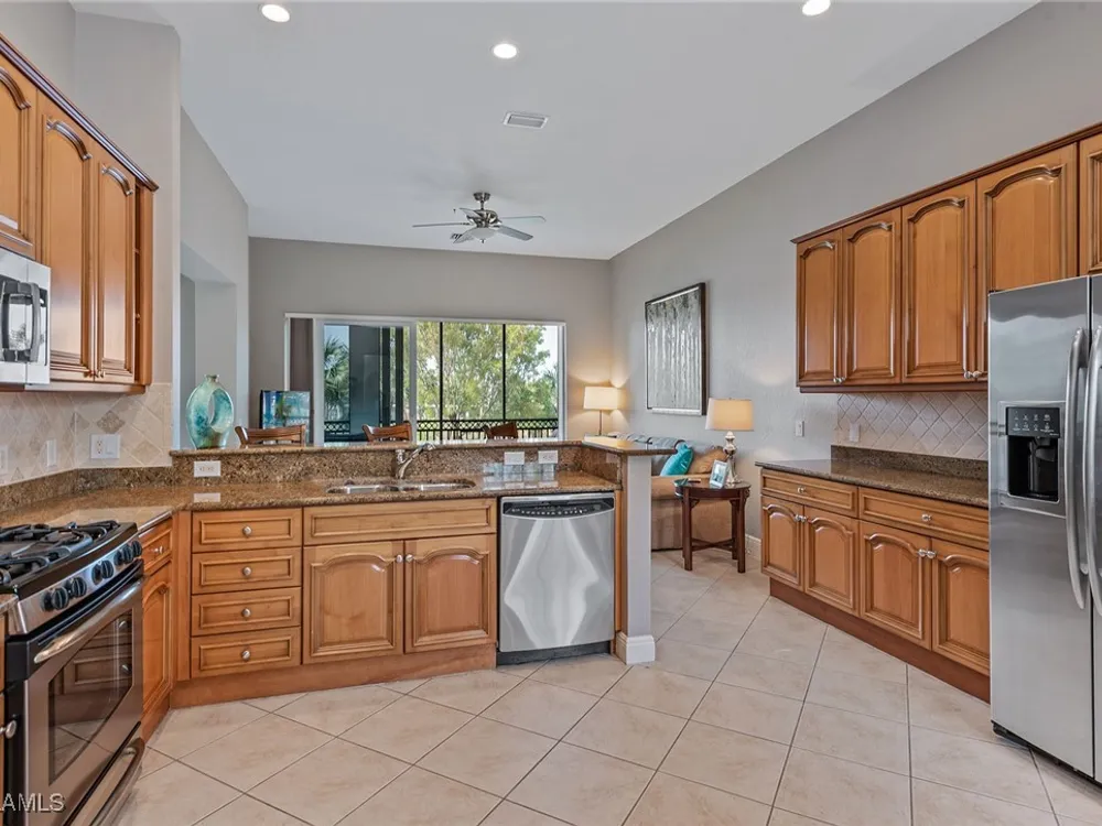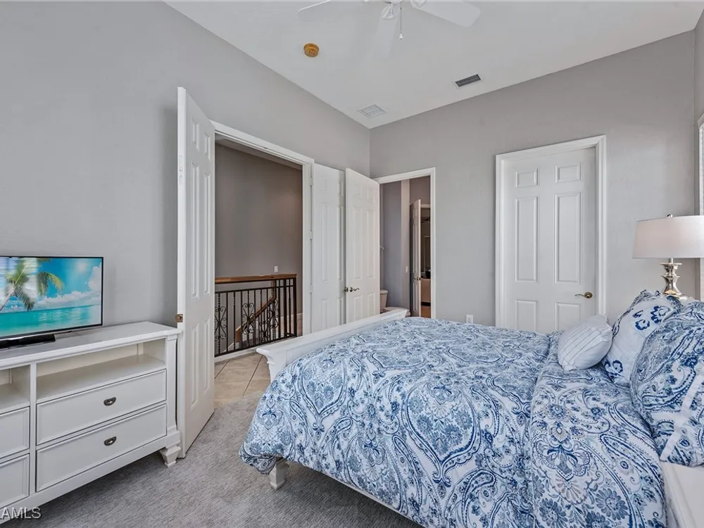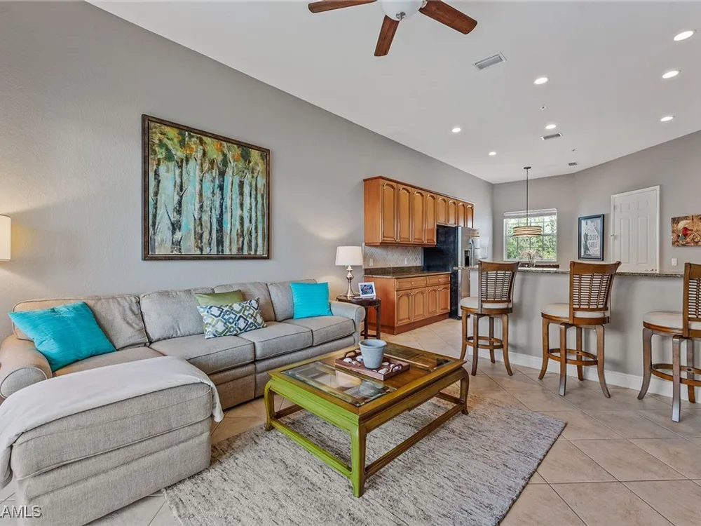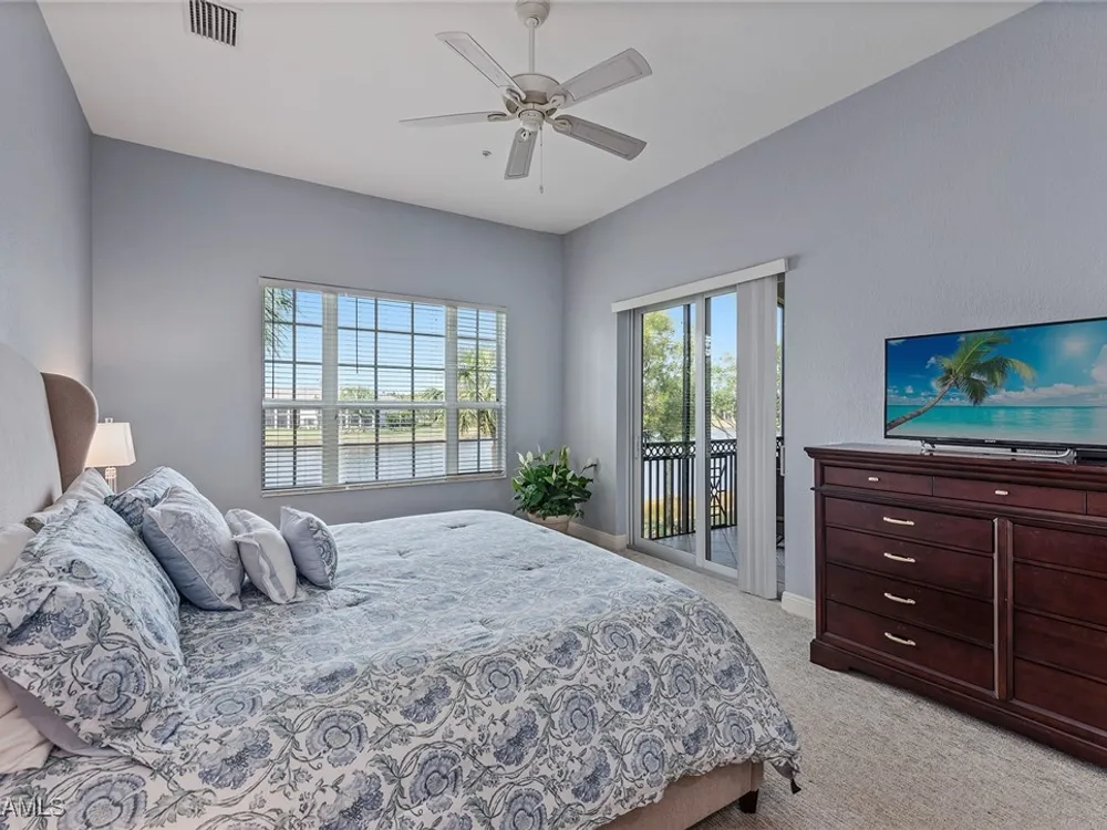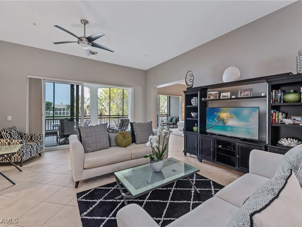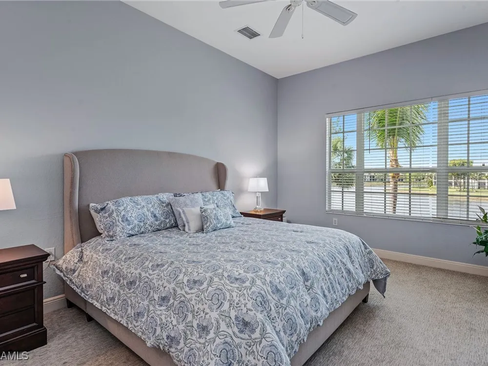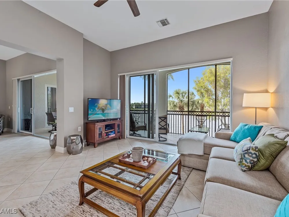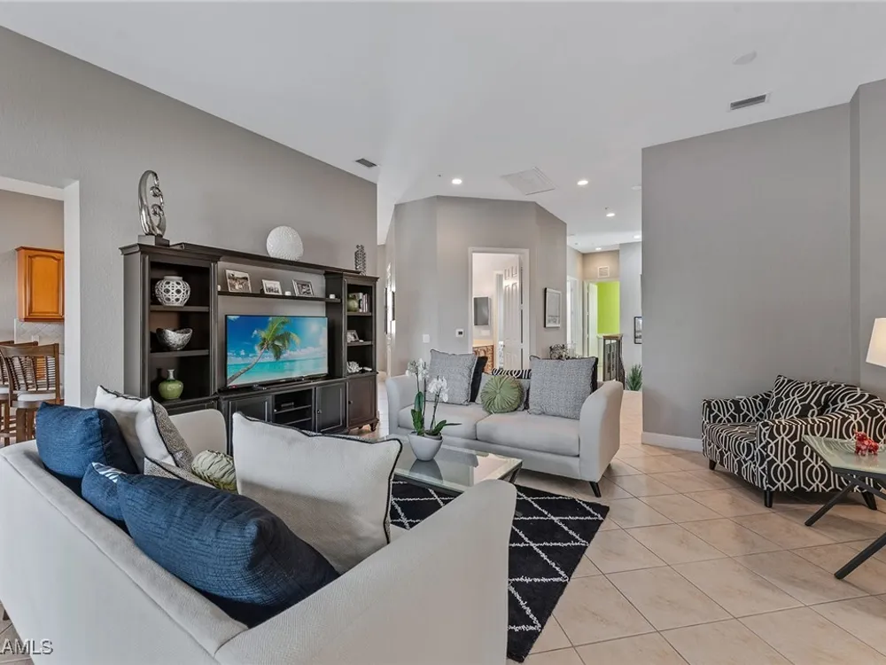 Are you searching for a peaceful Southwest Florida retreat with long, tranquil lake views and abundant natural light? This stunning Carona floor plan coach home in Laguna at Fiddler’s Creek captures the essence of elevated resort-style living with its desirable southwest exposure, expansive covered lanai, and private water vistas that create a serene backdrop for everyday relaxation or entertaining. Offering three bedrooms, three baths and a two-car garage, this well-appointed residence welcomes you with diagonal tile flooring throughout the main living areas, high ceilings, and a thoughtful split-bedroom floor plan that balances privacy with everyday comfort. The living room features modern ceiling fans and glass sliders that seamlessly connect to the lanai, bringing in tranquil views and soft breezes. The kitchen blends functionality and style with shaker-style cabinetry, granite countertops, a tumbled marble tile backsplash, recessed lighting and a breakfast bar counter. Stainless steel GE appliances, including a gas range, newer microwave, refrigerator/freezer, and dishwasher, complement the space, while a walk-in pantry and cozy dining area add everyday convenience. The owner’s suite is a calming sanctuary with direct lanai access, lake views and walk-in closets with wood-slatted shelving. The en-suite bath features a dual-sink vanity with a full-width mirror and makeup counter, a walk-in shower with glass enclosure, and a separate soaking tub. Two guest bedrooms provide comfortable accommodations, each with walk-in closets, and en-suite baths with walk-in showers, one accessed through elegant double doors with arched windows. Additional highlights include impact doors and windows replaced in 2021, a new building roof (2021), a spacious laundry room with utility sink, storage closet, and GE washer and dryer. The large screened lanai with a covered outdoor living area offers the ideal space to unwind while enjoying sweeping lake views. As a resident of Fiddler’s Creek, you’ll have access to a world-class club and spa, including a state-of-the-art fitness center, tennis and pickleball courts with clinics and leagues, bocce, spa services, steam room and sauna, resort-style pools with waterfalls and slides, and a vibrant calendar of events and activities. Optional beach, golf and marina memberships are also available, making this an unparalleled lifestyle opportunity in Naples. Schedule your private tour today.