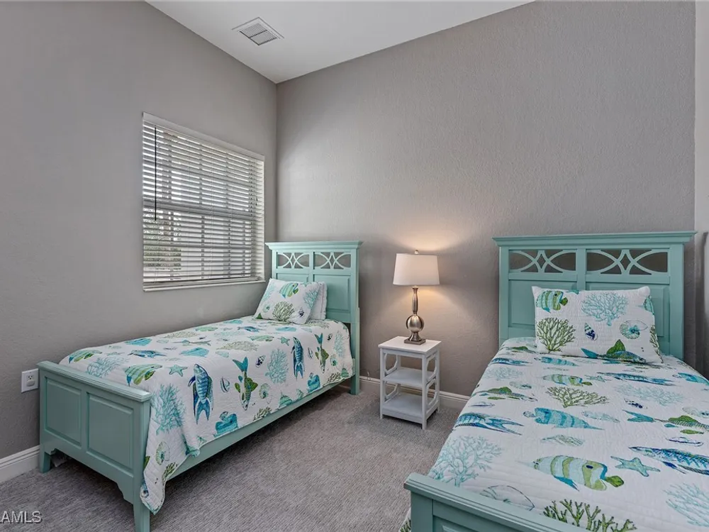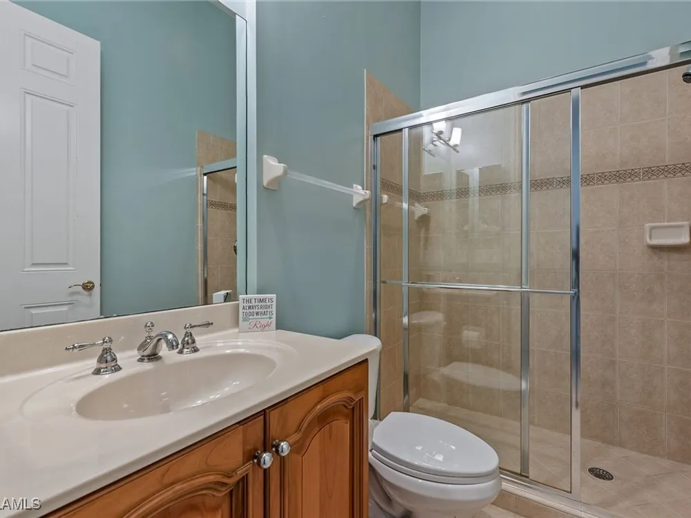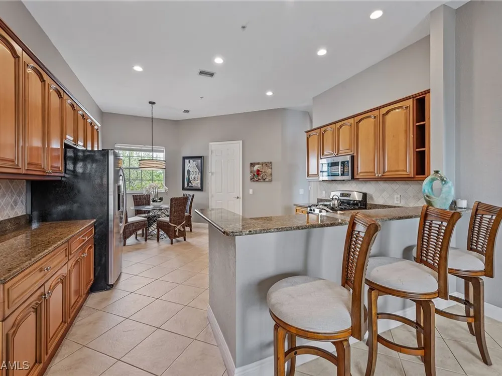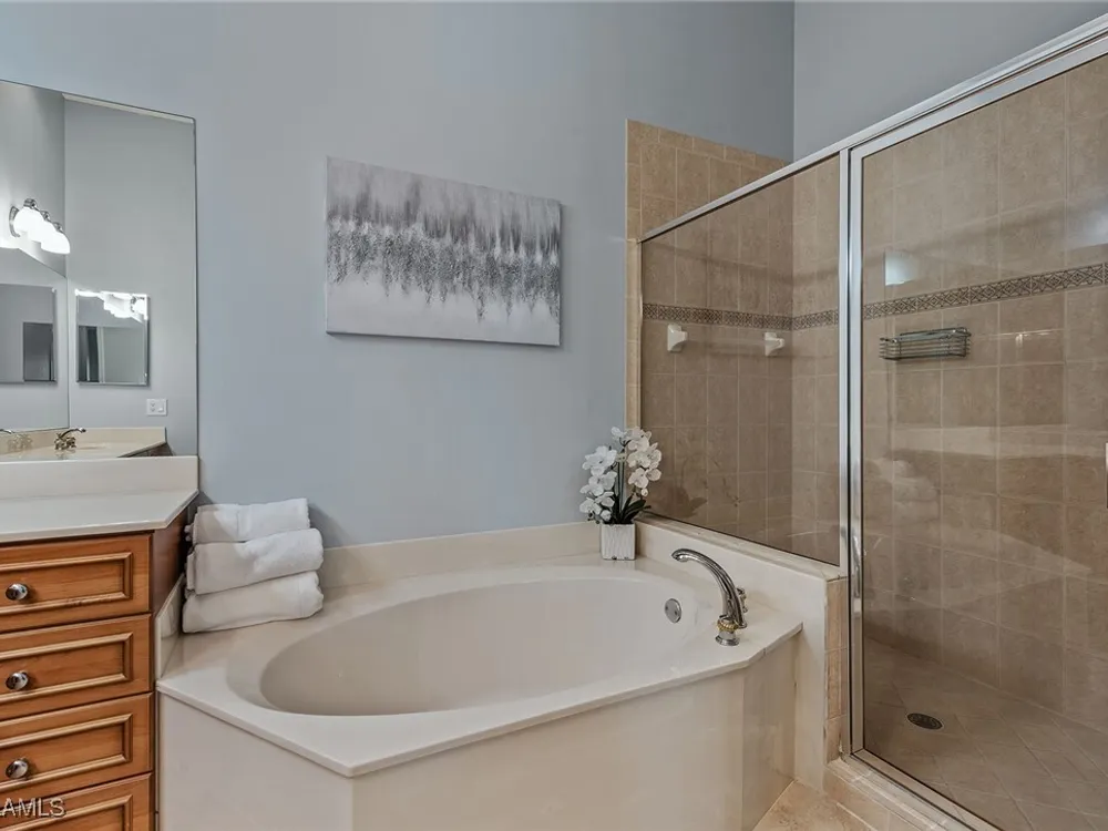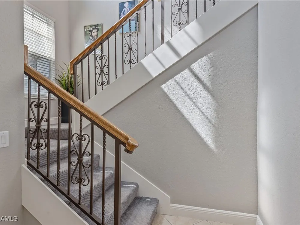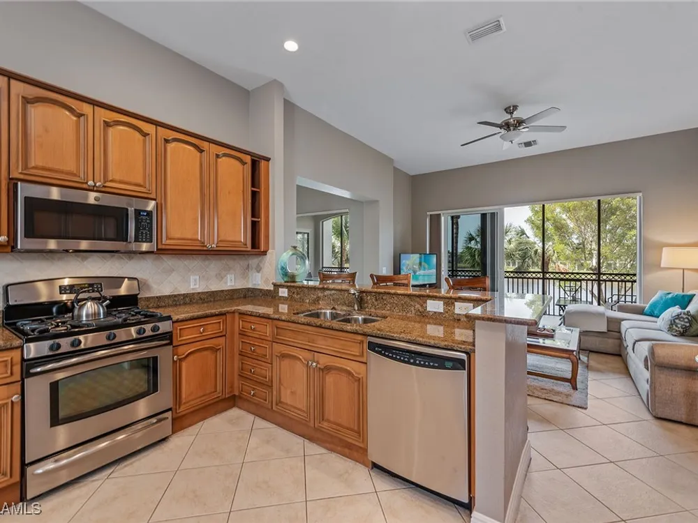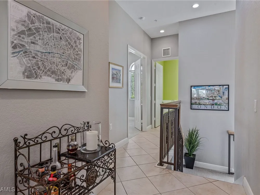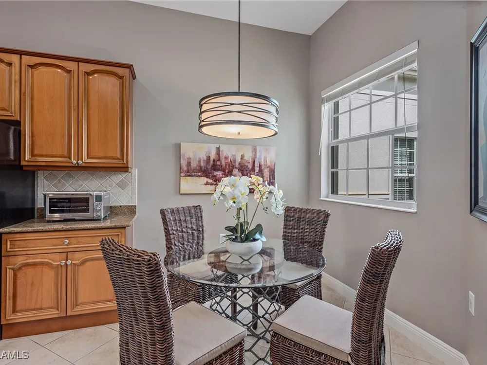 Are you searching for a peaceful Southwest Florida retreat with long, tranquil lake views and abundant natural light? This stunning Carona floor plan coach home in Laguna at Fiddler’s Creek captures the essence of elevated resort-style living with its desirable southwest exposure, expansive covered lanai, and private water vistas that create a serene backdrop for everyday relaxation or entertaining. Offering three bedrooms, three baths and a two-car garage, this well-appointed residence welcomes you with diagonal tile flooring throughout the main living areas, high ceilings, and a thoughtful split-bedroom floor plan that balances privacy with everyday comfort. The living room features modern ceiling fans and glass sliders that seamlessly connect to the lanai, bringing in tranquil views and soft breezes. The kitchen blends functionality and style with shaker-style cabinetry, granite countertops, a tumbled marble tile backsplash, recessed lighting and a breakfast bar counter. Stainless steel GE appliances, including a gas range, newer microwave, refrigerator/freezer, and dishwasher, complement the space, while a walk-in pantry and cozy dining area add everyday convenience. The owner’s suite is a calming sanctuary with direct lanai access, lake views and walk-in closets with wood-slatted shelving. The en-suite bath features a dual-sink vanity with a full-width mirror and makeup counter, a walk-in shower with glass enclosure, and a separate soaking tub. Two guest bedrooms provide comfortable accommodations, each with walk-in closets, and en-suite baths with walk-in showers, one accessed through elegant double doors with arched windows. Additional highlights include impact doors and windows replaced in 2021, a new building roof (2021), a spacious laundry room with utility sink, storage closet, and GE washer and dryer. The large screened lanai with a covered outdoor living area offers the ideal space to unwind while enjoying sweeping lake views. As a resident of Fiddler’s Creek, you’ll have access to a world-class club and spa, including a state-of-the-art fitness center, tennis and pickleball courts with clinics and leagues, bocce, spa services, steam room and sauna, resort-style pools with waterfalls and slides, and a vibrant calendar of events and activities. Optional beach, golf and marina memberships are also available, making this an unparalleled lifestyle opportunity in Naples. Schedule your private tour today.