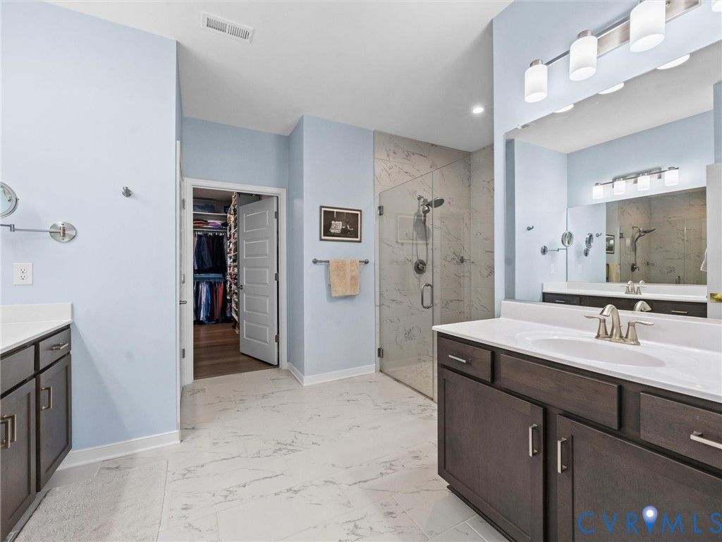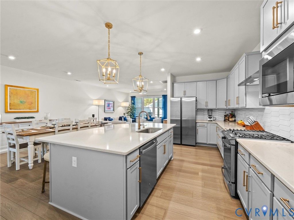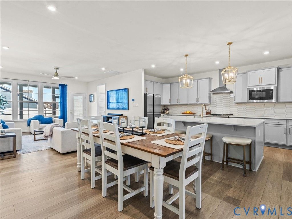 Welcome to Mosaic at West Creek, Goochland’s premier 55 & Better community! This better-than-new Indigo floor plan offers 2 bedrooms, a spacious loft, 2.5 baths, 2-car front-entry garage, and an impressive 12x31 walk-in attic providing exceptional storage. The foyer opens to a bright dining area and a chef’s kitchen featuring quartz countertops, stainless steel appliances, soft-close custom cabinetry, a large center island, walk-in pantry, gas range, tile backsplash, and sophisticated yet playful lighting. The open-concept family room flows seamlessly to the screened porch, patio, and fenced rear yard—perfect for morning coffee, listening to the rain, or entertaining outdoors. The first-floor primary suite includes a large walk-in closet with custom shelving and a private bath with double vanities and a glass-tiled walk-in shower with bench. Upstairs, you’ll find a flexible loft, second bedroom, full bath, and generous walk-in attic for additional storage. Residents enjoy low-maintenance living with access to the 10,000 sq. ft. Connexion Clubhouse, offering fitness and yoga studios, a salt-treated pool and hot tub, pickleball courts, walking trails, a dog park, and year-round activities. Community walking paths make it easy to stroll to The Conservatory, dog park, community grills, fire pit, pool, and mailbox. Ideally located just a short drive from Short Pump, you’re minutes from shopping, dining, financial institutions, and medical care.