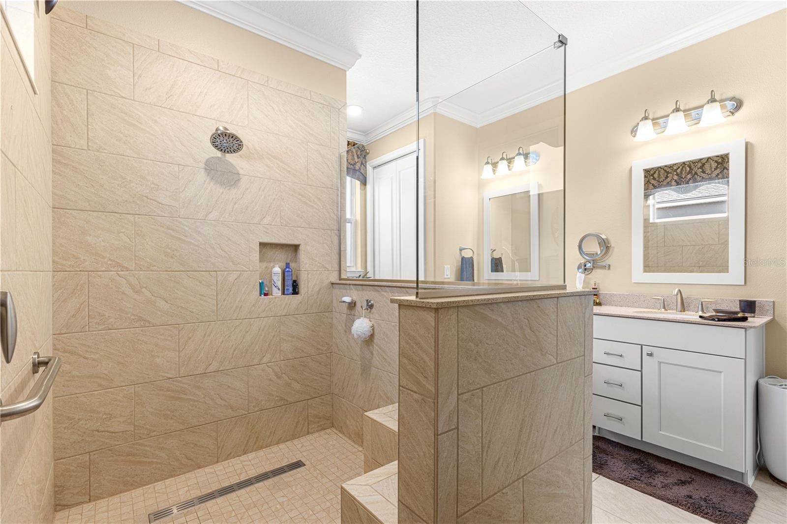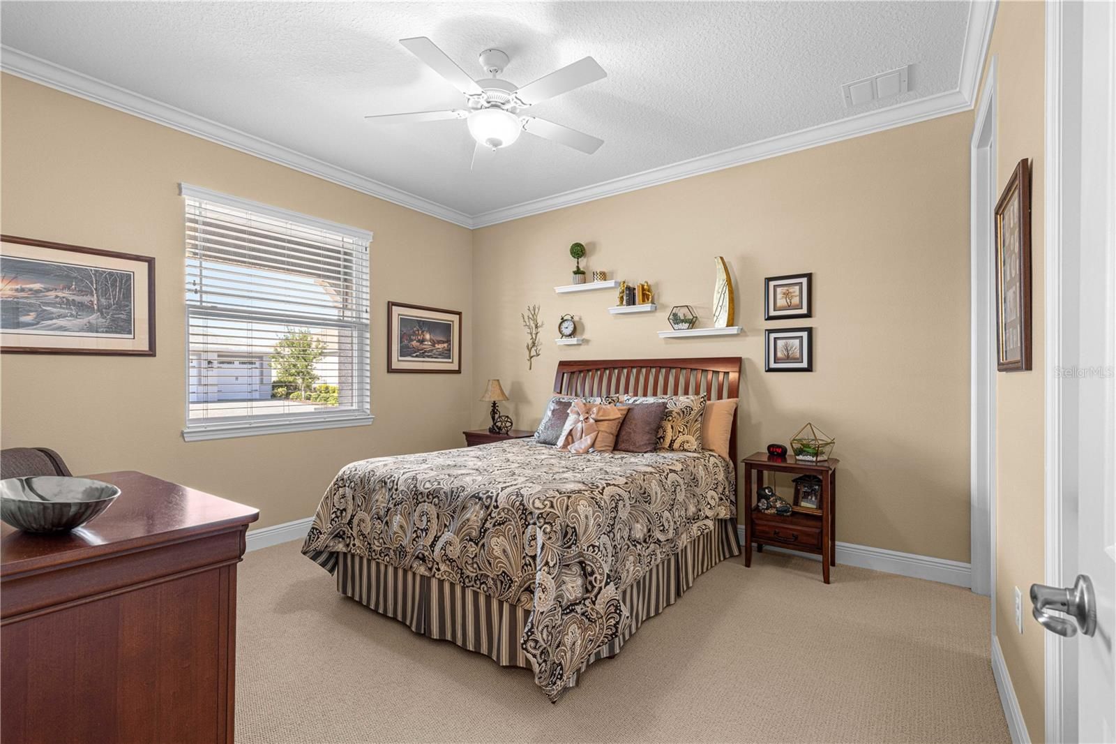 Under contract-accepting backup offers. Want an elegant home on a PRIVATE home site? Congratulations...you've found it!!! This home truly shows like a model, with stunning landscaping and unbeatable curb appeal that welcome you to an inviting front porch. Step inside the leaded-glass front door and be greeted by tall ceilings with tray accents and elegant crown molding throughout. The living room is a cozy retreat featuring an electric fireplace beautifully encased in stone. The gourmet kitchen is a chef’s dream, boasting quartz countertops, stainless steel appliances including a built-in double oven, gas cooktop, and staggered cabinets with crown molding. Perfect for hosting guests, the secondary bedroom offers a private en-suite, ideal as a guest retreat or in-law suite. The large owner’s suite impresses with a walk-in closet featuring built-in cabinets and a luxurious walk-in shower. Additional conveniences include a large laundry room with extra cabinets and counters, and the washer and dryer are included in the sale. Energy efficiency is a priority, with added insulation in the attic, insulated garage doors, a thermostatic attic fan, and a whole home 16KW Generac generator for peace of mind. For hobbyists and handymen, the epoxy-coated garage features a spacious air-conditioned workshop—a perfect space for projects year-round. Exterior paint got a fresh coat recently. Outdoor living is exceptional in this home with a huge, wrap-around screened-in lanai and a brick-paved patio, complete with added lights in the rear soffits for evening ambiance. The gas fire-pit and gas line for a grill add to the convenience and enjoyment of your backyard. Best of all...there are no homes behind you! This is more than a home; it’s a lifestyle. Don’t miss your chance to live in this beautifully maintained, move-in-ready home that is a masterpiece!