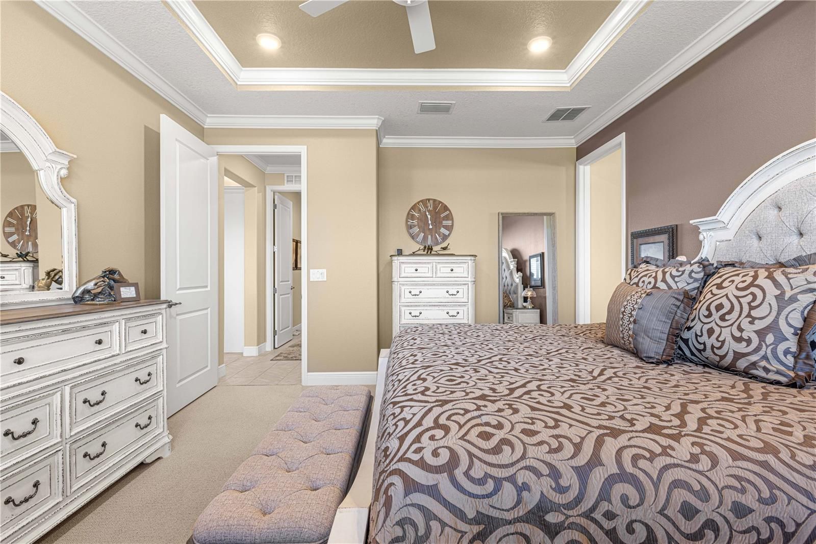 - Built-in Features, Ceiling Fan(s), Crown Molding, Eat-in Kitchen, High Ceilings, Kitchen/Family Room Combo, Open Floorplan, Main Level Primary, Smart Home, Thermostat, Tray Ceiling(s), Walk-In Closet(s), Window Treatments