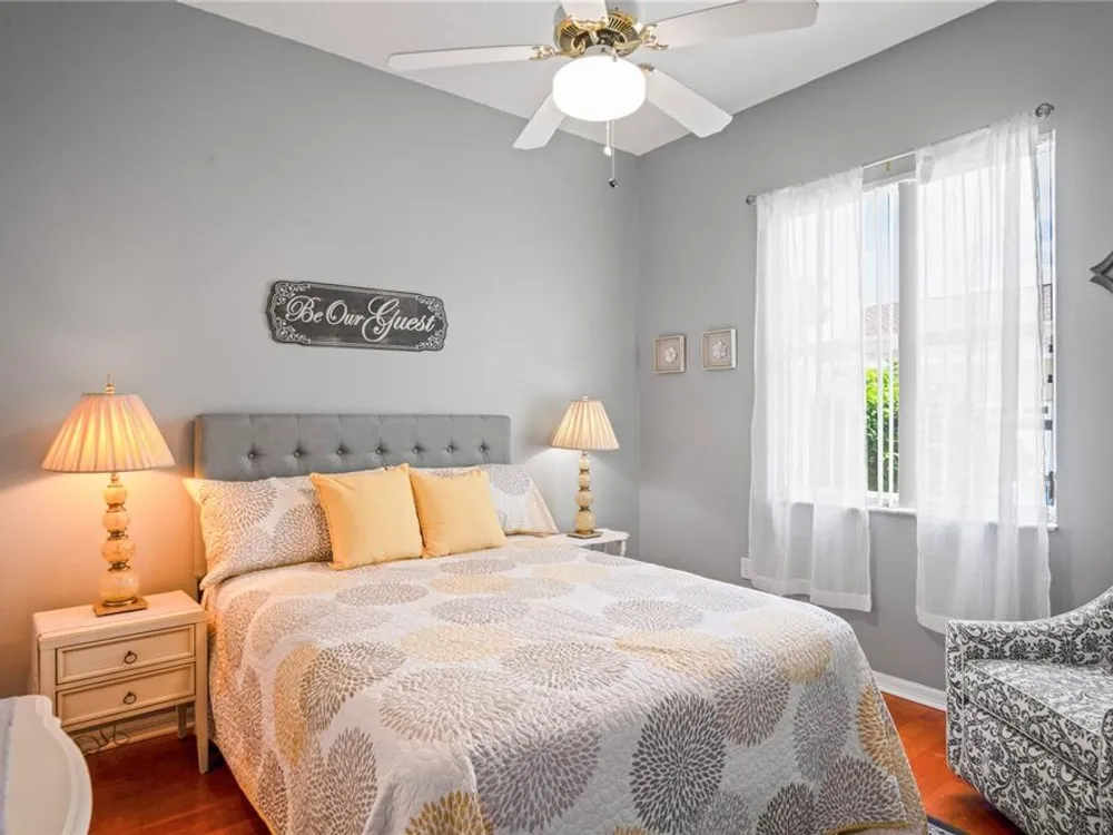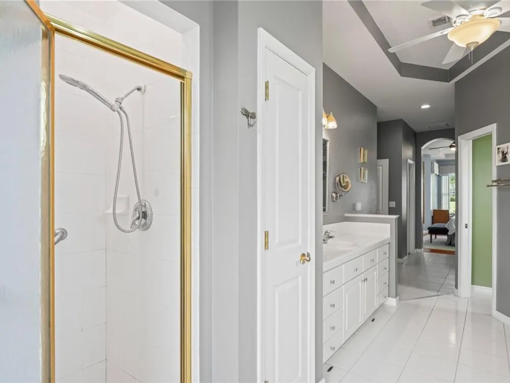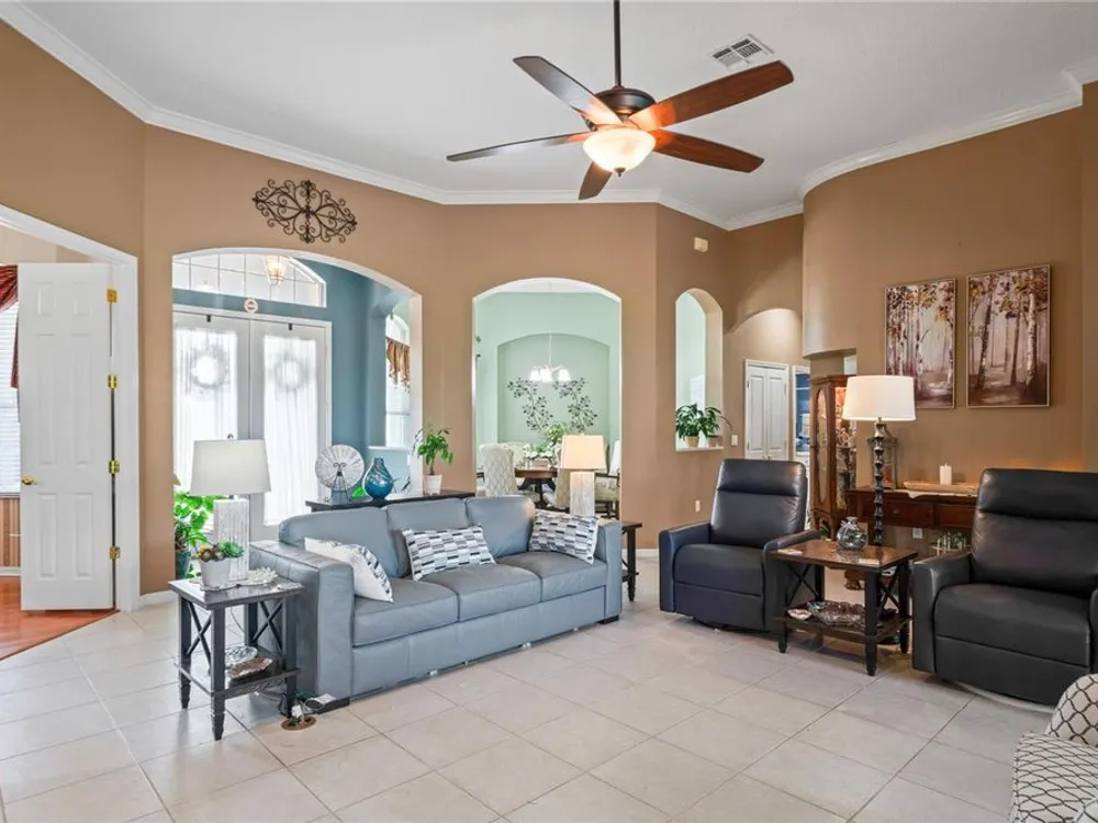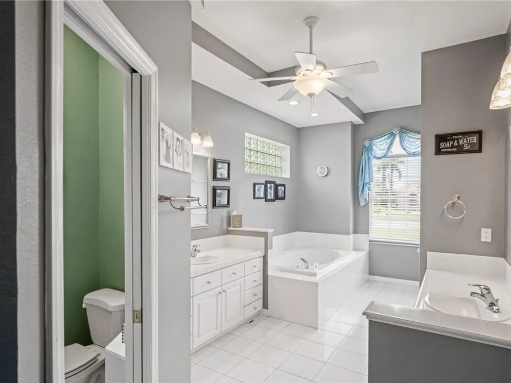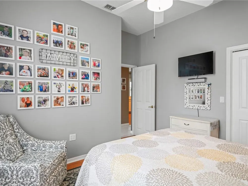 - Ceiling Fan(s), Crown Molding, Eat-in Kitchen, High Ceilings, Main Level Primary, Solid-Wood Cabinets, Split Bedrooms, Tray Ceiling(s), Walk-In Closet(s), Window Treatments