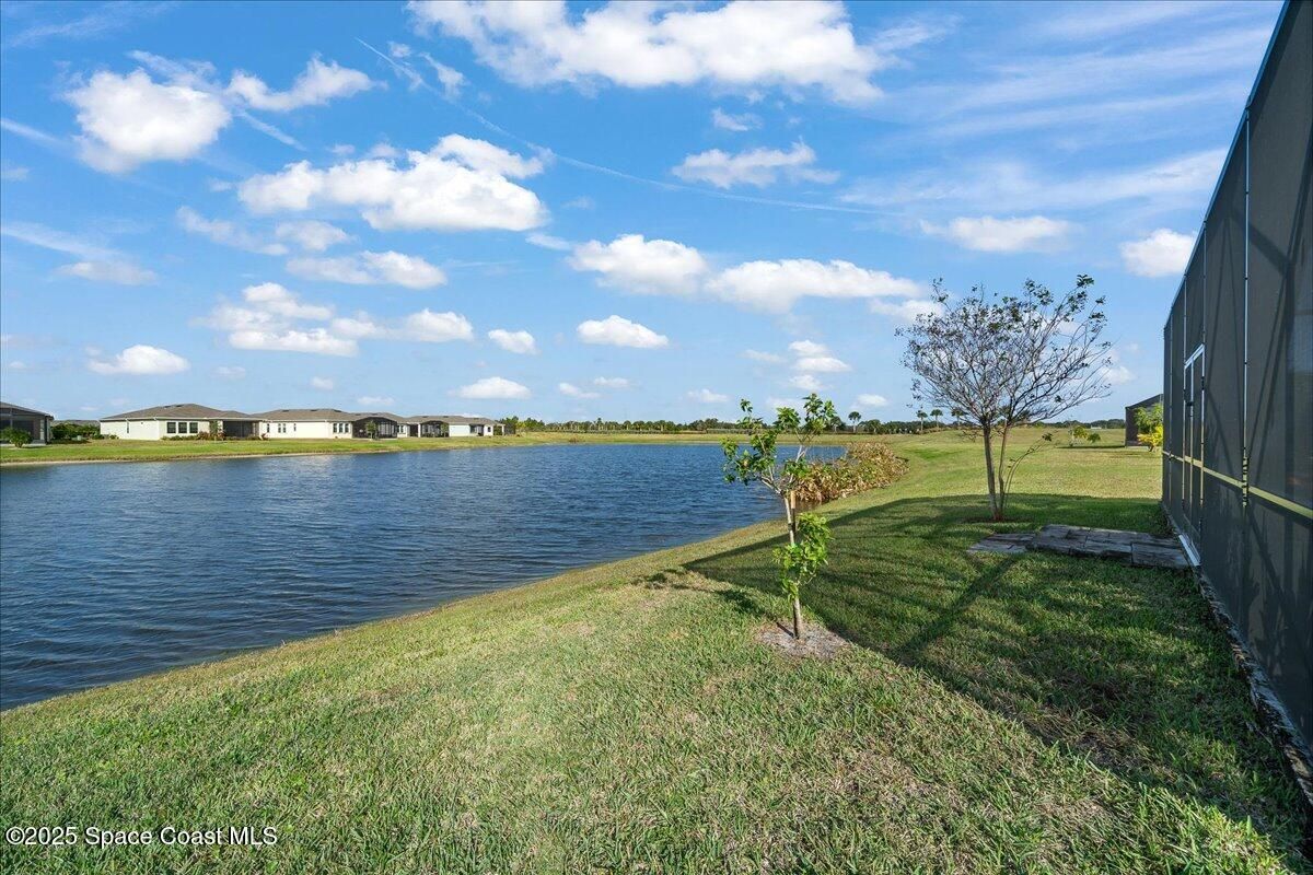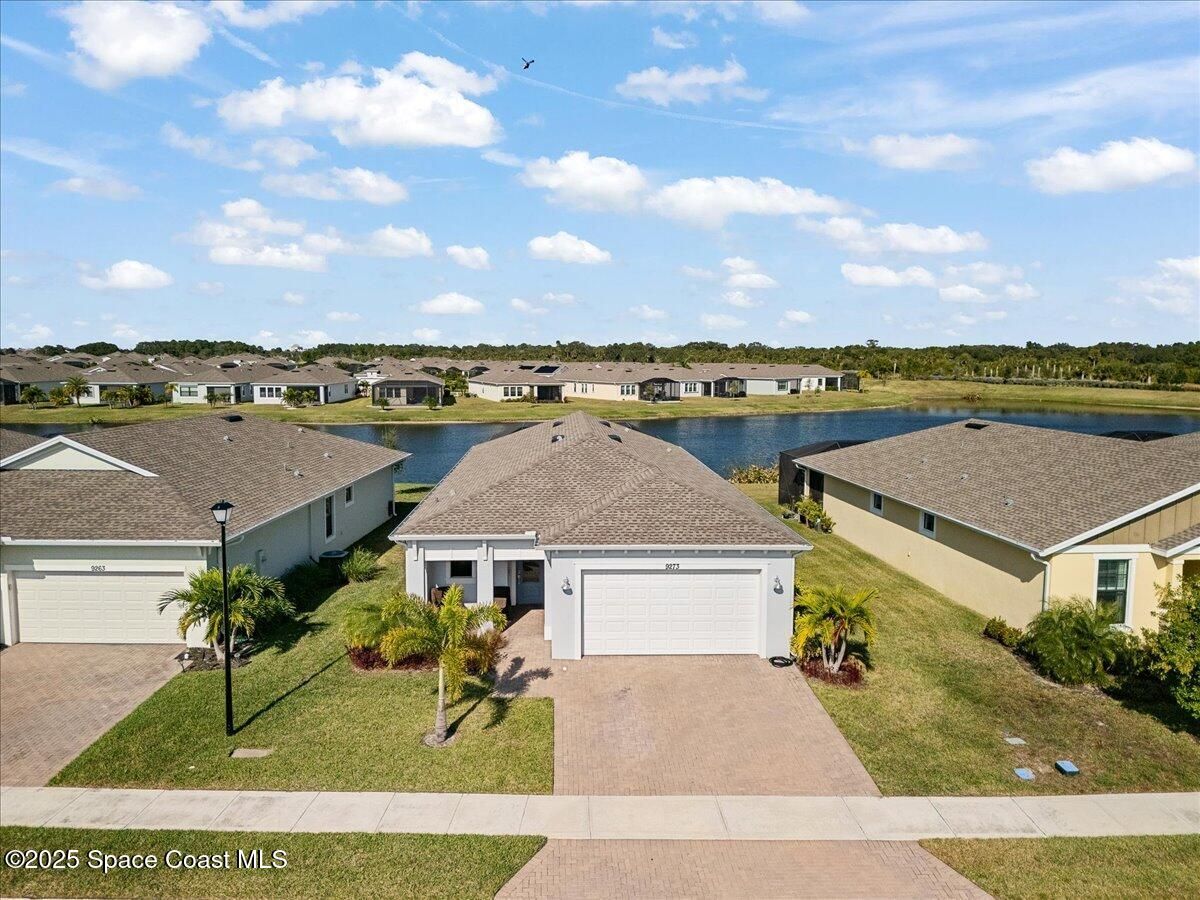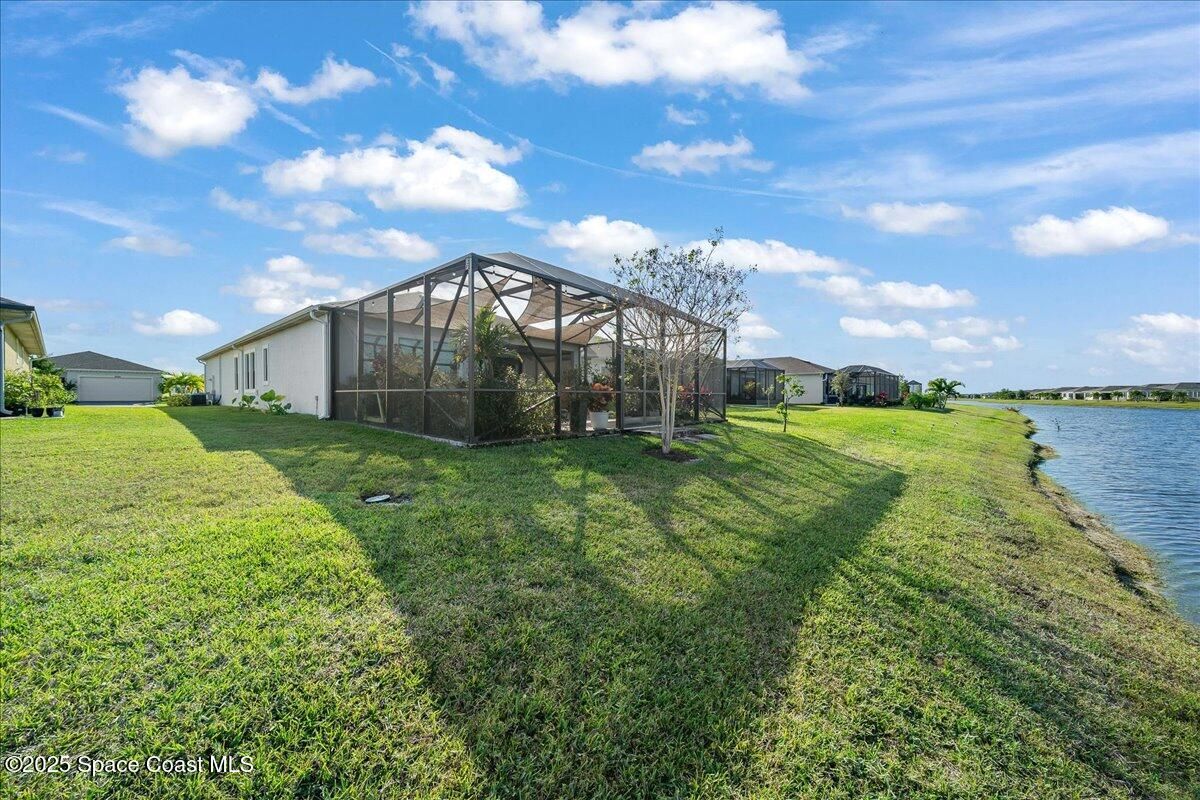 Looking for privacy and one of the best views in Bridgewater at Viera? You've found it. This home sits on the wide part of the lake and faces more green space than most lots. It also features the largest lanai in the entire community, creating a peaceful, expansive outdoor oasis perfect for plant lovers and anyone who enjoys relaxing in a spacious patio setting. The layout offers generous room to host guests, with upgraded kitchen features including wood slide-outs in every lower cabinet and wood shelving with pullouts in the pantry. The primary suite includes a double vanity, tiled shower, and two walk-in closets—one upgraded with built-ins. Additionally, there are IMPACT WINDOWS, an expanded driveway and epoxy floors in the garage. Located in a vibrant 55+ community, you'll also enjoy resort-style amenities like a luxurious clubhouse, oversized pool, fitness center, tennis & pickleball, and a full calendar of activities designed for connection and quality of life.
