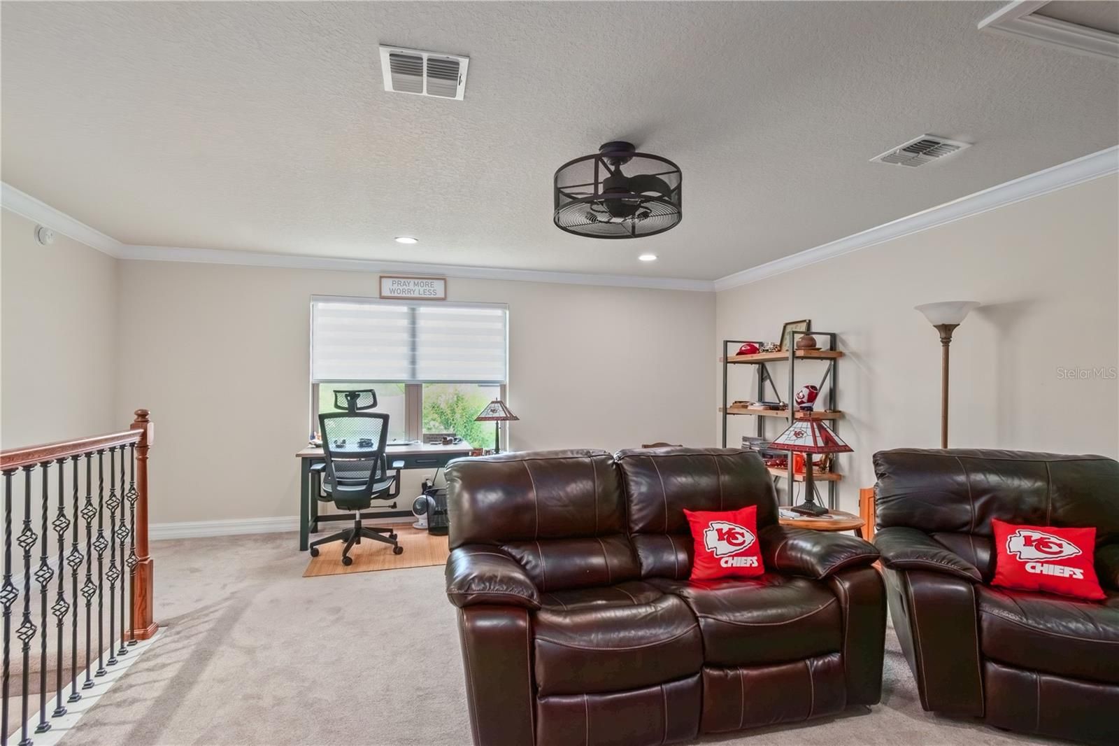 Discover this absolutely stunning pool home in the vibrant 55+ golf community of Stone Creek. From the moment you arrive, the exceptional curb appeal—featuring a custom glass door and stone-paved driveway—welcomes you to one of the largest lots in the neighborhood. The backyard oasis offers complete privacy with a tranquil whirlpool spa, perfect for relaxing retreats. Inside, enjoy soaring high ceilings, elegant crown molding, custom window treatments, and rich cherry wood floors that add a touch of sophistication. The gourmet kitchen is a chef’s dream, boasting a massive granite island, gas cooktop, wine fridge, stainless steel appliances, soft-close cabinets, and a spacious walk-in pantry. The expansive living and family rooms overlook the poolside paradise through triple retracting glass sliders, opening to a covered patio, resort-style pool, spa, and fire pit—creating an inviting outdoor living space perfect for entertaining or tranquil relaxation. The primary suite features French doors leading directly to the hot tub, a luxurious ensuite bathroom, and a custom walk-in closet. Upstairs, the versatile loft serves as a large family or game room, alongside a second master suite that easily accommodates a king-sized bed with a full bath and ample walk-in closet space. This home is filled with luxurious upgrades and special touches—too many to list! Don’t miss the opportunity to make it yours. Call today to schedule your private showing. Plus, enjoy a $10,000 credit toward customizing this beautiful home to reflect your personal style.