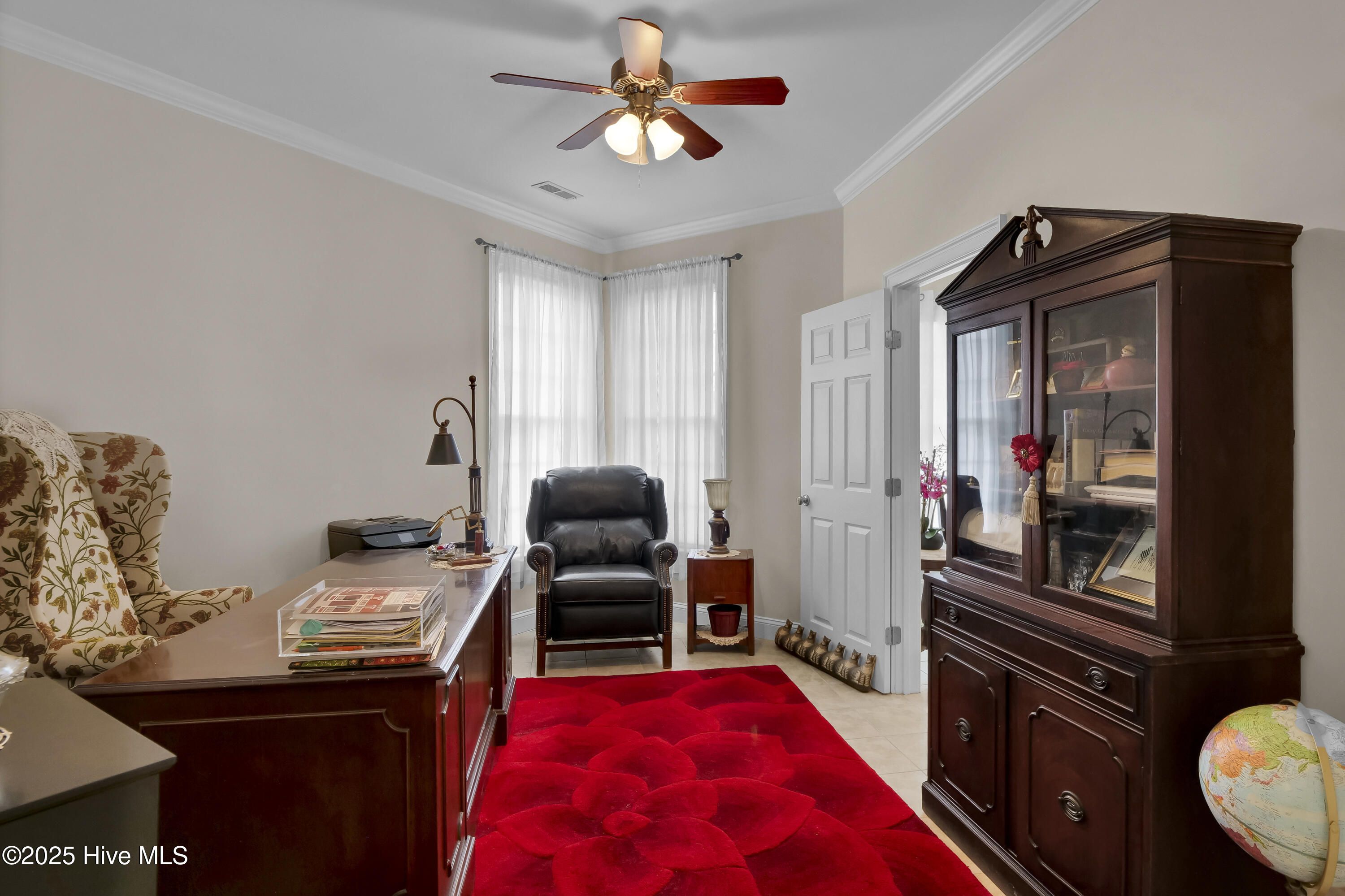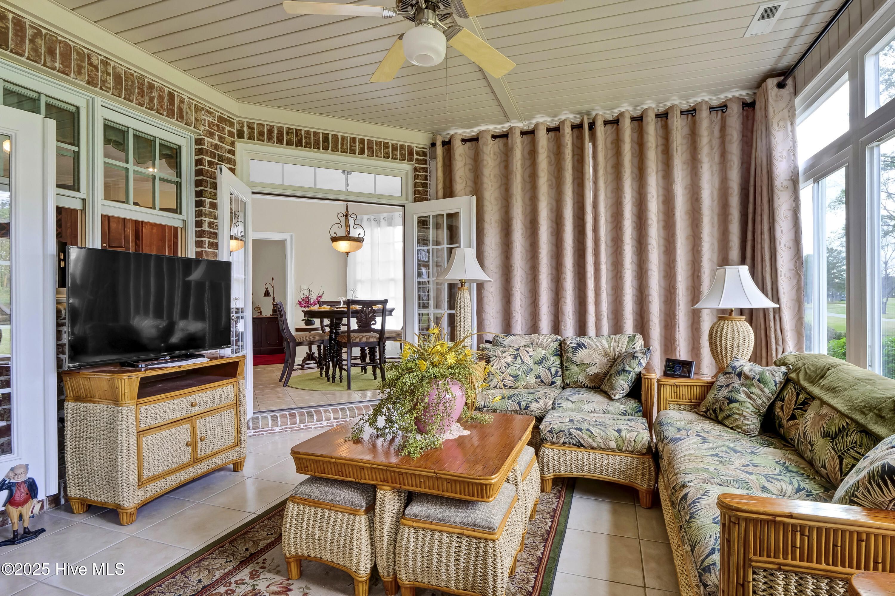 Nestled within the prestigious Crow Creek Golf Community, this beautifully maintained home offers an exceptional blend of comfort, elegance, and breathtaking views of the second fairway and a tranquil pond. Crow Creek is one of Brunswick County's premier gated golf course communities, known for its resort-style amenities just minutes from Sunset Beach and the charm of downtown Calabash. Residents enjoy access to an 18-hole golf course, indoor and outdoor pools, tennis and pickleball courts, a state-of-the-art fitness center, and a clubhouse. The community's sidewalk-lined streets, mature landscaping, and scenic ponds create a peaceful setting perfect for walking, biking, and connecting with neighbors. Situated along the fairway, this 4-bedroom, 3.5-bathroom home—with the flexibility for a fifth bedroom—exudes timeless curb appeal with its stately brick exterior, custom trim work, and professional landscape lighting. A grand foyer welcomes you into a spacious and light-filled main living area, complete with decorative columns and a formal dining room enhanced by classic wainscoting. The kitchen is the heart of the home and has been thoughtfully designed with solid surface countertops, stainless steel KitchenAid appliances, an ultra-quiet dishwasher (installed approximately two years ago), electric cooktop, tile flooring, and transom windows that flood the space with natural light. For those who love to relax and entertain, the home features two incredible sun-filled rooms: a bright Carolina room perfect for morning coffee or reading, and a rear sunroom—added in 2015-2016—offering sweeping views of the pond and second fairway. The sunroom includes a dedicated mini-split system, allowing year-round comfort in a peaceful setting.