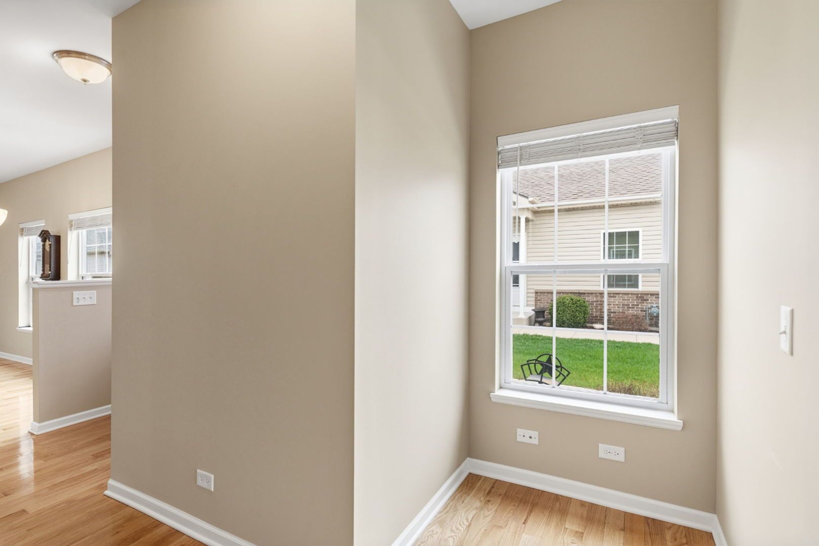 Move-in ready, 2 bedroom, 2 bath ranch duplex unit in the Manors of Patriot Estates! The unit has many upgrades! Gorgeous NEW spa bath with fully tiled walk-in shower, dual vanity with quartz counter, and there are grab bars by the toilet and shower. The primary suite features two closets and beautiful new french doors leading into the room. The kitchen has quartz counters, stainless steel appliances, and a white subway tile backsplash. The home features oak hardwood floors throughout, and the bedrooms have carpet. The home also has a radon mitigation system, an open floor plan for entertaining, 9 foot ceilings, newer neutral paint and upgraded lighting. Sliding doors lead to the concrete patio for easy barbecuing or a great place to sit and relax! All exterior maintenance is included in this 55 and up active adult community AND includes membership to Irish Prairie health Club. No more lawn maintenance and no more snow removal as your association dues take care of that!
