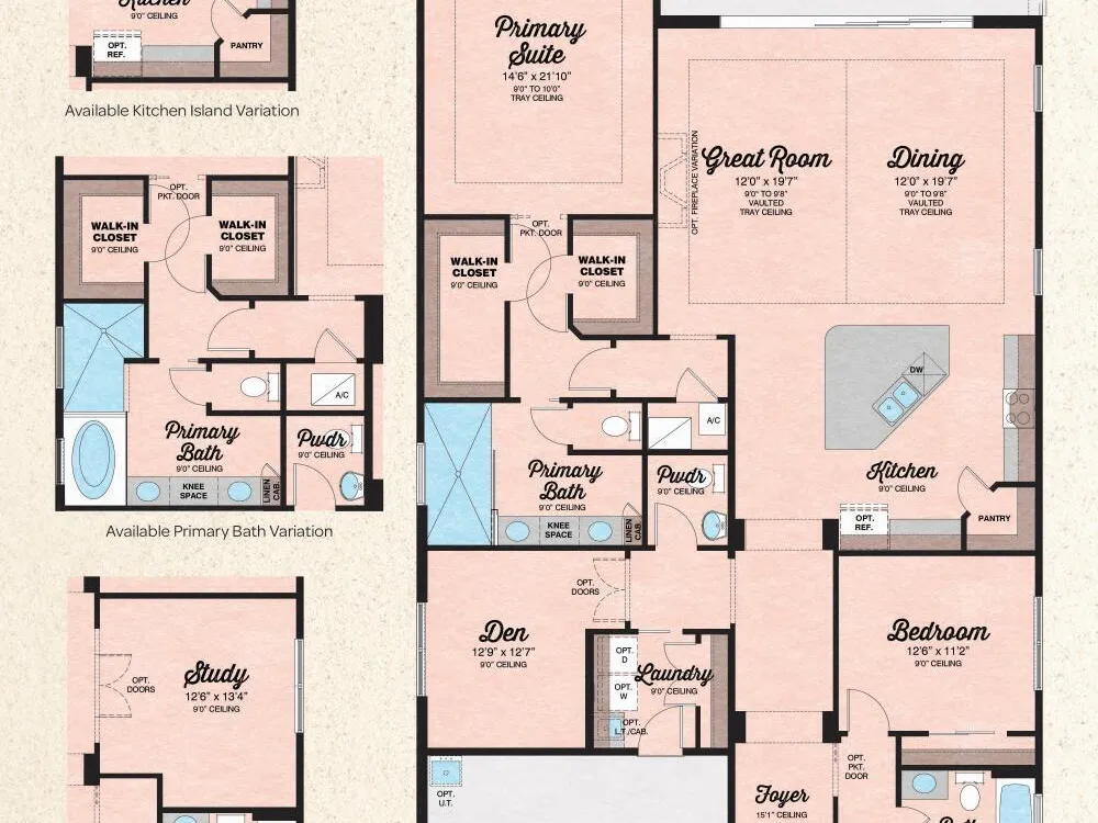 - High Ceilings, Kitchen Island, Recessed Lighting, Vaulted Ceiling(s)