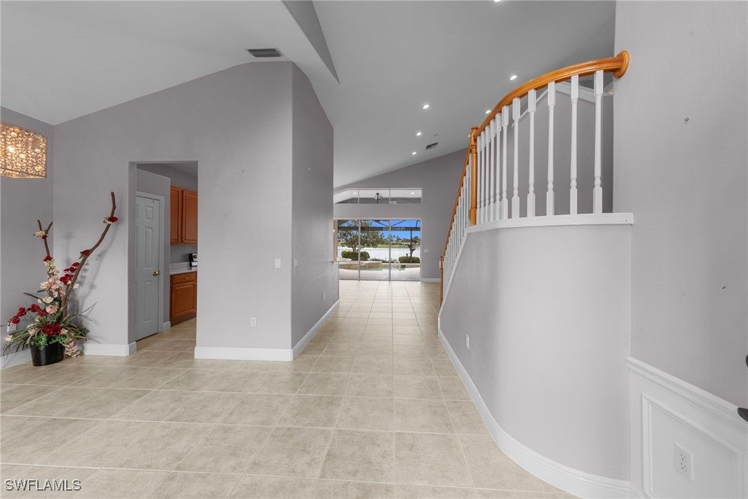 If you are looking for a fantastic property in Colonial Country Club, this Laurel has everything you are looking for. Upon entering, the impressive view of the 2-story floor plan with impressive chandeliers and fresh grey paint are immediately apparent. The expansive view over the private pool, Lake and Club house beyond is really something to behold. The seller has spared no expense to add many upgrades to the home that include ‘2022-‘23 New Hurricane Cat 5 Roof, 2024 New Hurricane Windows up and down and 2015 Hurricane Auto Control Shutter for Lanai. From 2019 beautiful Brazilian Hardwood Cherry Floors in all Bedrooms, Den & Stairs to Calif Closets and 2022 Fully Renovated Main Bathroom with walk-in shower and beautiful cabinets—everything is the utmost of quality. The Kitchen has beautiful light Quartz in 2021, 2025 updated SS Appliances and Microwave & Stove in May ’25. All cabinets have pull-out shelving and an ROI filter system at Kitchen Sink and under cabinet lighting. All ceiling fans have been replaced with Top of the line Quality models, along with commodes replaced in 25 with tall models. The Garage has Epoxy Flooring, Tall storage cabinets and ’23 New Garage door and springs ($4000). There is a separate Generator hook-up and a portable generator that stays with the home. 2023 a new AC Gold Star unit was installed, and 2024 a new Hot Water Heater. This home comes with a BUNDLED GOLF MEMBERSHIP included in the highly sought out Colonial Country Club Community and Newly renovated 18-hole Gordon Lewis Championship course. Recently renovated Clubhouse in 2020 complete w/oversized Sunset Bar & Grille plus Formal Dining Room and outside dining options. CCC has a very Active Life-Style, World class Tennis facility, newly renovated Fitness Center, Competitive Pickleball, Bocce, Golf-Tennis shops & miles of Walking Nature Trail that winds around the community. Conveniently located close to RSW airport, Twins and Red Sox Spring Training Stadiums, restaurant, shopping and easy access to Interstate 75 getting around to all that SWFL has to offer is a bonus. Desirable Colonial Country Club community has recently been voted one of America’s Healthiest Clubs by Prevo Health Solutions-the premier wellness solutions providers in the Club industry & has been Recently Awarded a ‘Distinguished Club” designation from Forbes Travel