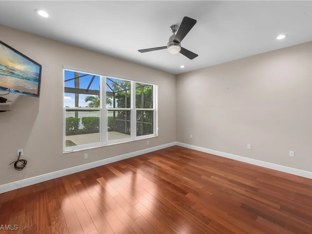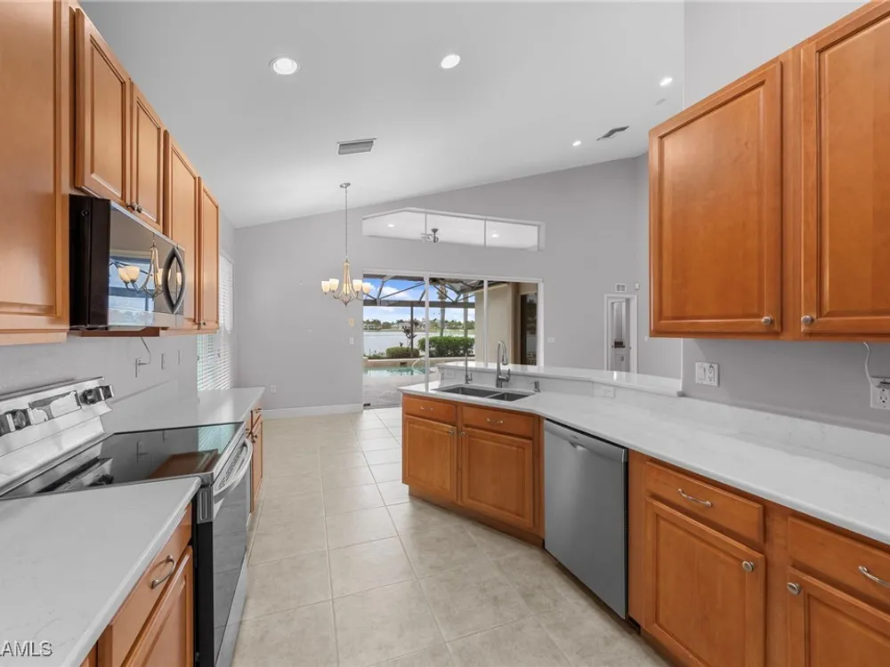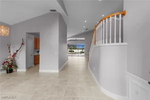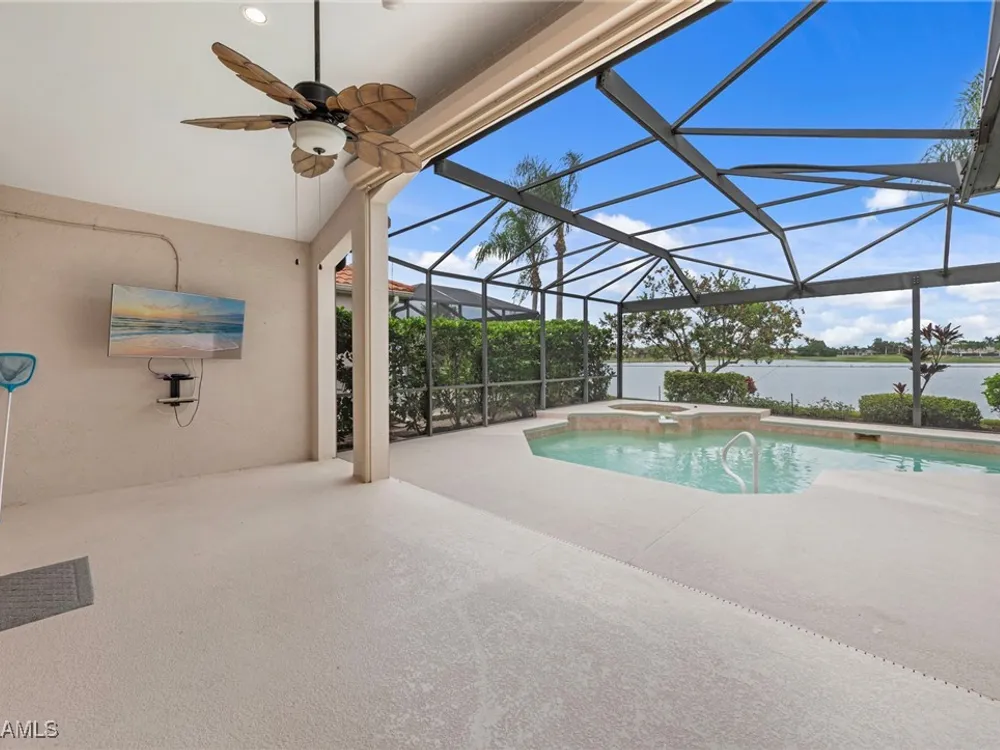 If you are looking for a fantastic property in Colonial Country Club, this Laurel has everything you are looking for. Upon entering, the impressive view of the 2-story floor plan with impressive chandeliers and fresh grey paint are immediately apparent. The expansive view over the private pool, Lake and Club house beyond is really something to behold. The seller has spared no expense to add many upgrades to the home that include ‘2022-‘23 New Hurricane Cat 5 Roof, 2024 New Hurricane Windows up and down and 2015 Hurricane Auto Control Shutter for Lanai. From 2019 beautiful Brazilian Hardwood Cherry Floors in all Bedrooms, Den & Stairs to Calif Closets and 2022 Fully Renovated Main Bathroom with walk-in shower and beautiful cabinets—everything is the utmost of quality. The Kitchen has beautiful light Quartz in 2021, 2025 updated SS Appliances and Microwave & Stove in May ’25. All cabinets have pull-out shelving and an ROI filter system at Kitchen Sink. All ceiling fans have been replaced with Top of the line Quality models, along with commodes replaced in 25 with tall models. The Garage has Epoxy Flooring, Tall storage cabinets and ’23 New Garage door and springs ($4000). There is a separate Generator hook-up and a portable generator that stays with the home. 2023 a new AC Gold Star unit was installed, and 2024 a new Hot Water Heater. This home comes with a BUNDLED GOLF MEMBERSHIP included in the highly sought out Colonial Country Club Community and Newly renovated 18-hole Gordon Lewis Championship course. Recently renovated Clubhouse in 2020 complete w/oversized Sunset Bar & Grille plus Formal Dining Room and outside dining options. CCC has a very Active Life-Style, World class Tennis facility, newly renovated Fitness Center, Competitive Pickleball, Bocce, Golf-Tennis shops & miles of Walking Nature Trail that winds around the community. Conveniently located close to RSW airport, Twins and Red Sox Spring Training Stadiums, restaurant, shopping and easy access to Interstate 75 getting around to all that SWFL has to offer is a bonus. Desirable Colonial Country Club community has recently been voted one of America’s Healthiest Clubs by Prevo Health Solutions-the premier wellness solutions providers in the Club industry & has been Recently Awarded a ‘Distinguished Club” designation from Forbes Travel