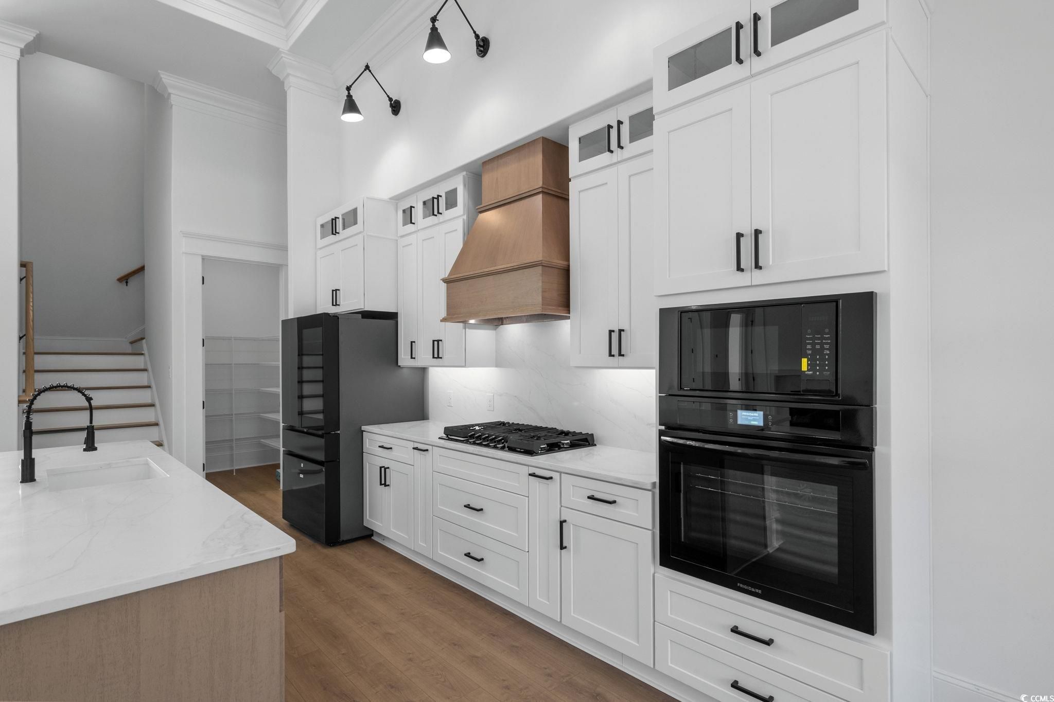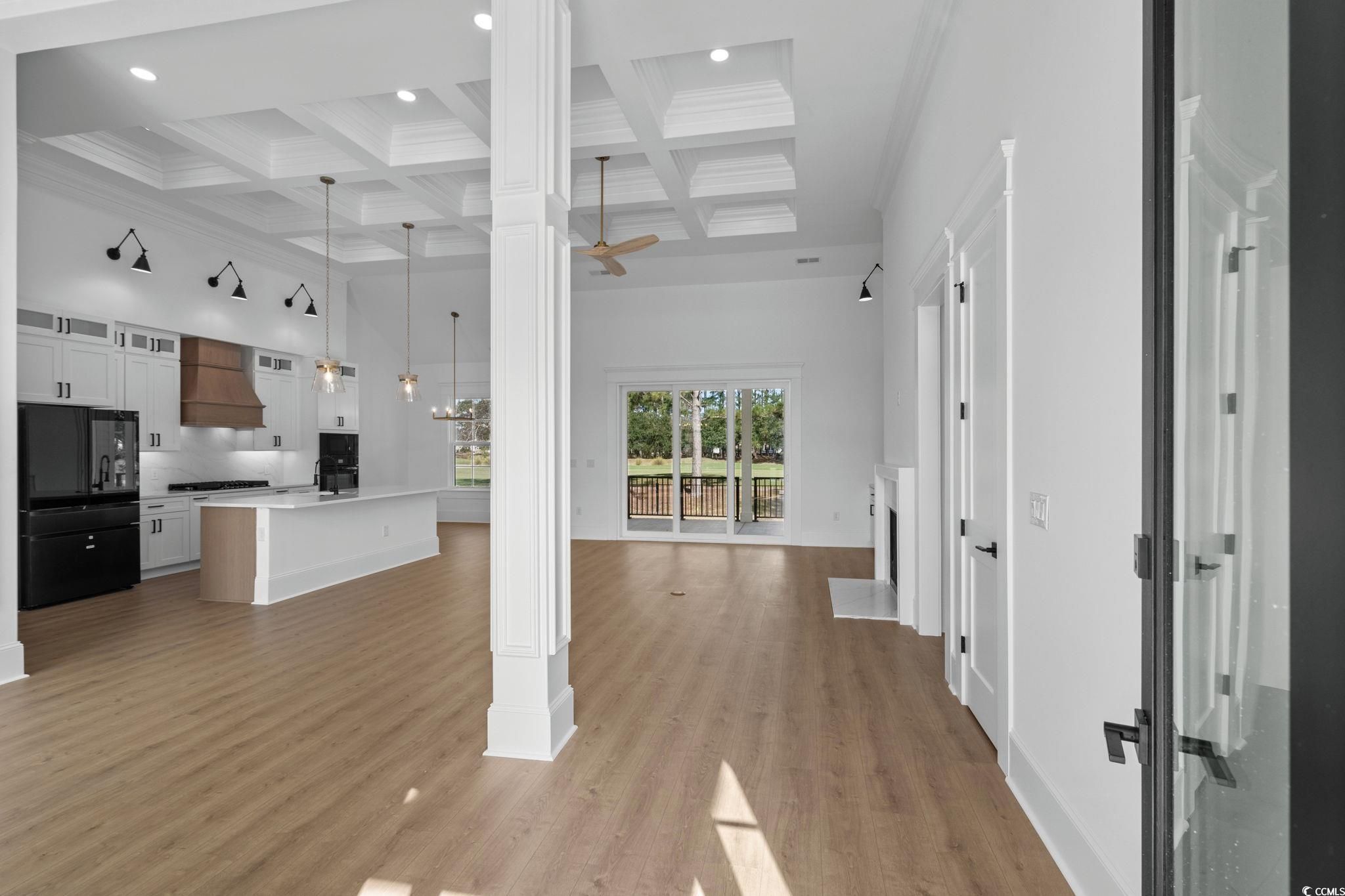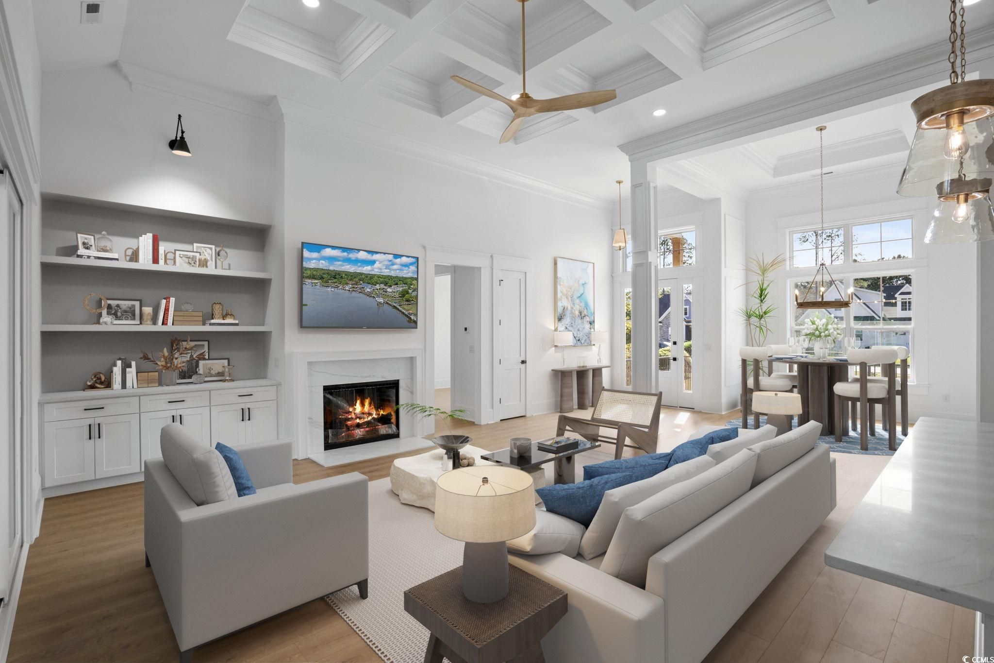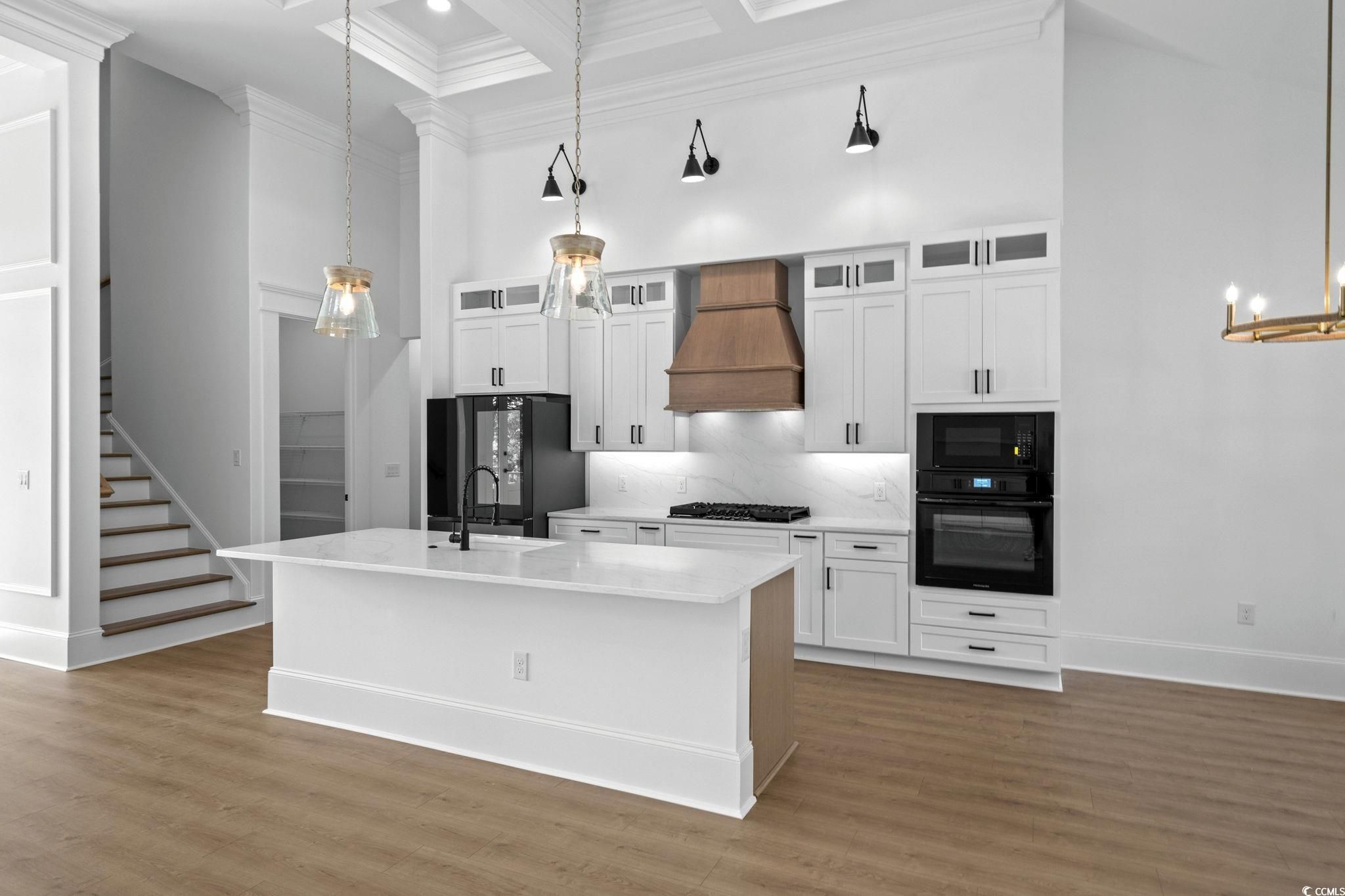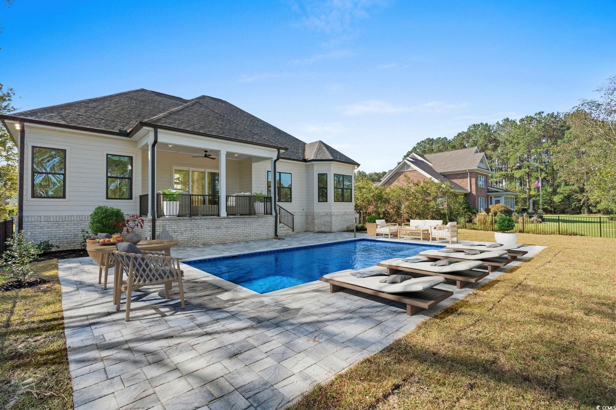Incredible Opportunity in Crow Creek! Welcome to this stunning 4-bedroom, 3.5-bath home with a 3-car garage and private pool, located in the prestigious gated golf course community of Crow Creek in Calabash, NC. Perfectly positioned on the golf course with a serene pond view, this home offers exceptional curb appeal with its brick façade, black windows, board and batten Hardie siding, and cedar-wrapped beams. Step inside the grand entrance with soaring 14-foot ceilings and be captivated by the home’s custom elegance. The open-concept layout seamlessly connects the formal dining area, spacious living room, and chef’s kitchen—perfect for entertaining or everyday living. You’ll love the coffered ceilings, custom trim work, and gas fireplace with built-ins that elevate the main living space. The gourmet kitchen features sleek black appliances, a 36-inch cooktop with a custom hood, built-in microwave and oven combo, and a cozy dinette area for casual meals. A large pantry, dedicated laundry room, and guest half bath round out the main living areas. The luxurious owner’s suite is a private retreat featuring a tray ceiling with bay windows, a spa-style bath with a soaking tub, oversized black tile walk-in shower, dual vanities, private water closet, and a generous walk-in closet. This home follows a split-bedroom layout, with two spacious guest bedrooms on the opposite side that share a full bath. Upstairs, you’ll find an incredible in-law suite or bonus room complete with a full bath, custom tile shower, walk-in closet, and even a kitchenette—perfect for extended guests, a media room, or flex space. Step outside and unwind on the expansive covered patio overlooking your private 12x24 concrete pool, surrounded by beautiful paver decking—ideal for summer entertaining. Crow Creek offers a resort-style lifestyle with access to top-tier amenities: Indoor & outdoor pools, Fitness center, Tennis & pickleball courts, Scenic walking trails, Full-service clubhouse, pro shop & restaurant, and Championship 18-hole golf course designed by Rick Robbins. Located just minutes from the NC beaches and the South Carolina border, this home truly delivers the best of coastal living. Don’t miss your chance to own in one of Brunswick County’s most desirable communities—schedule your private showing today!