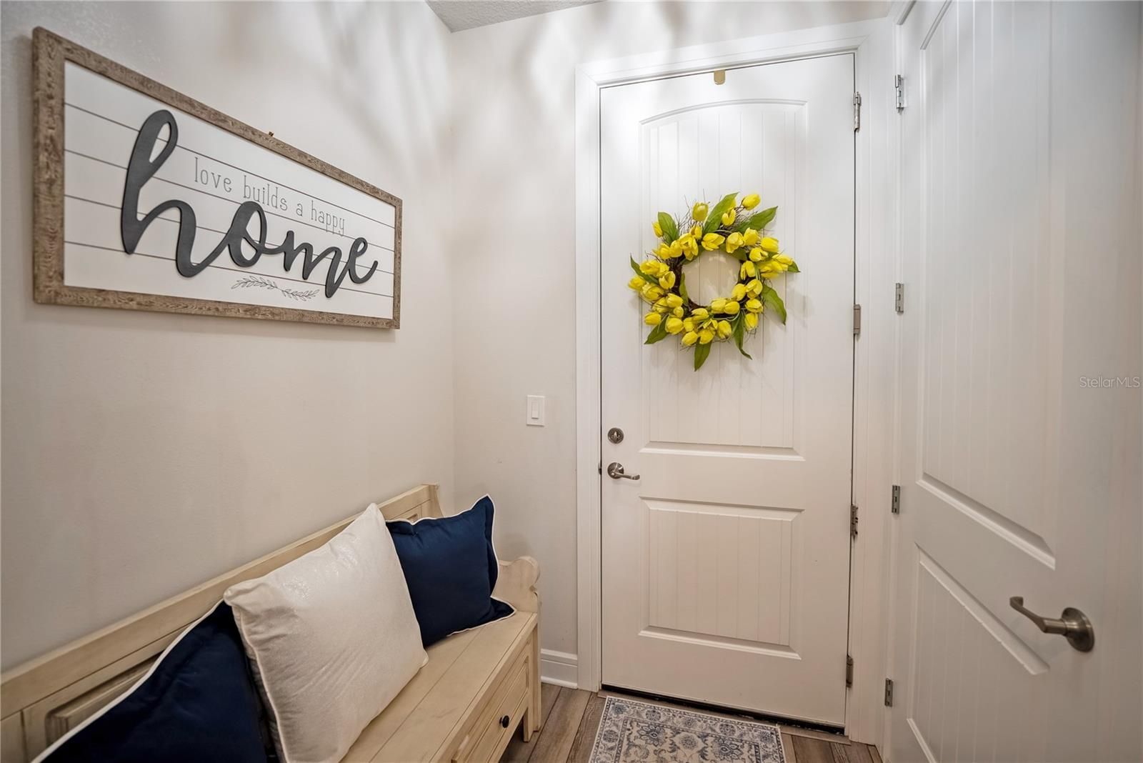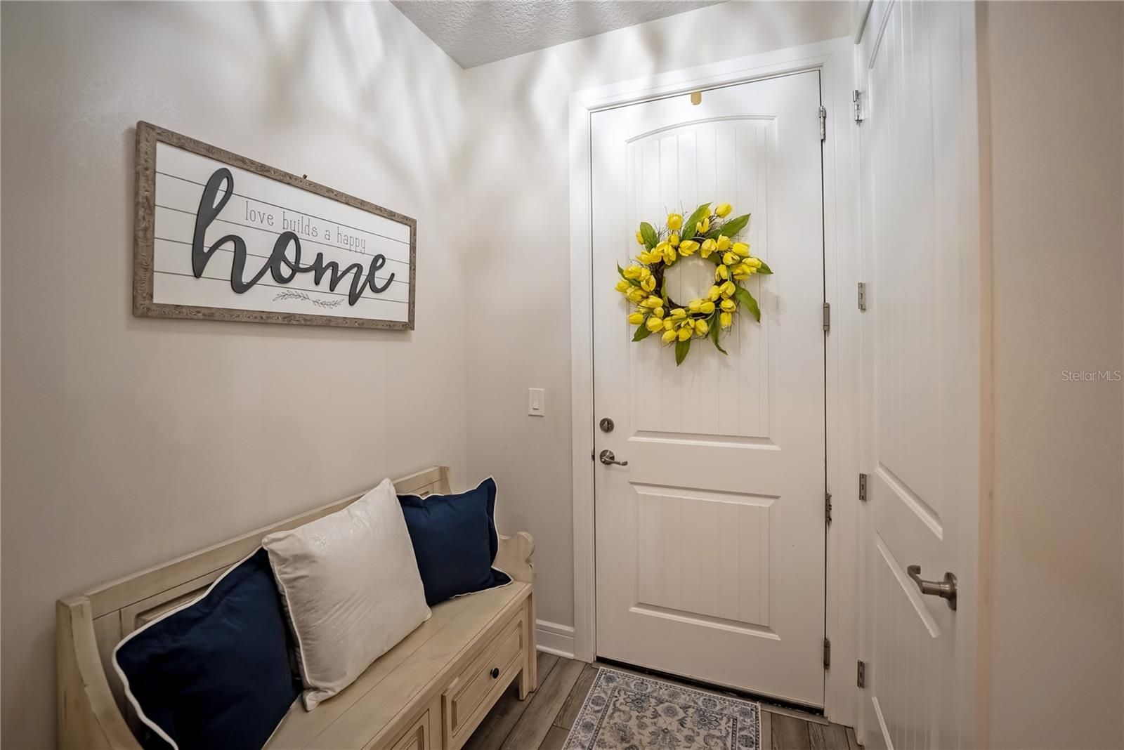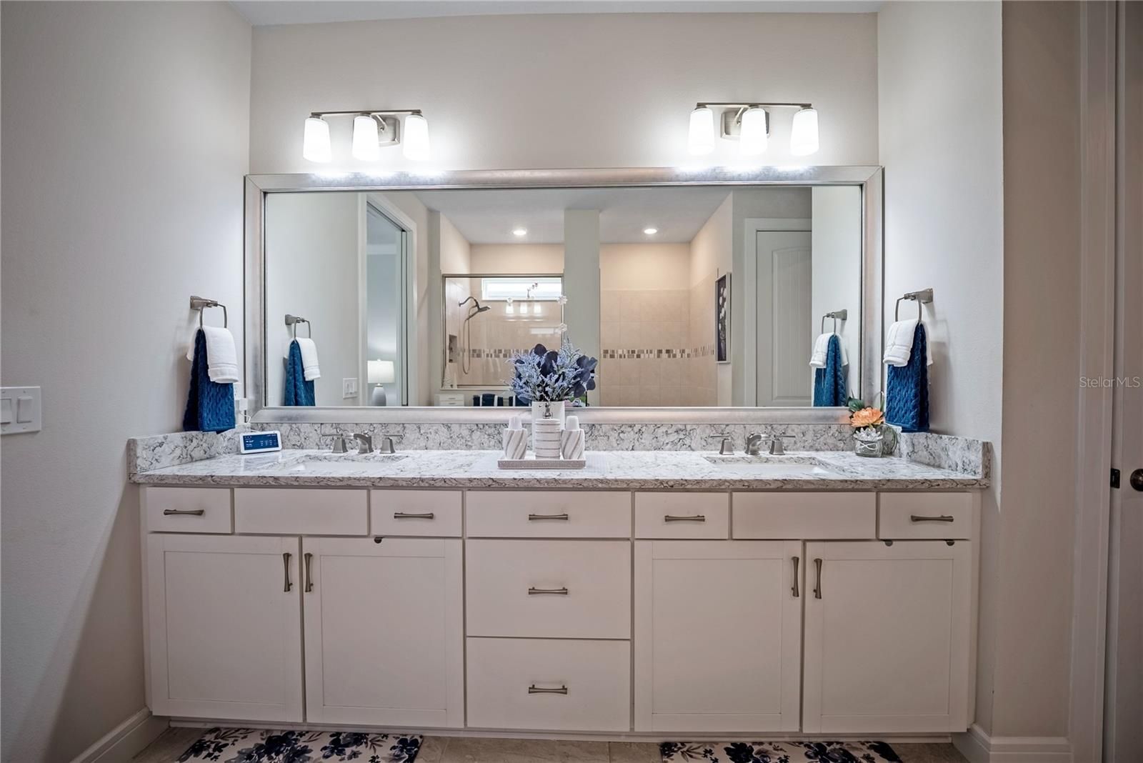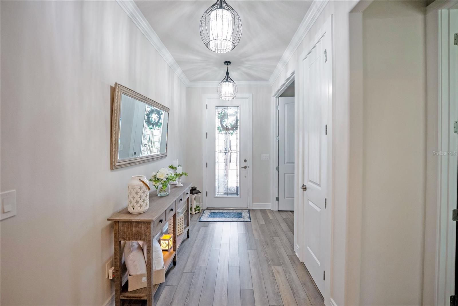 ASSUMABLE $340,000 LOAN AT 2.38%! This beautifully appointed Stardom model in Del Webb Stone Creek showcases thoughtful design, high-end finishes, and exceptional indoor-outdoor living—perfectly suited for enjoying your retirement in the resort-style lifestyle this community is known for. As you arrive, the upgraded stone elevation, paver driveway and walkway, and front screened porch create inviting curb appeal. Step through the elegant 8' glass-inset front door into a bright, welcoming foyer accented by rounded drywall corners, crown molding, and upgraded Cheyenne 8' doors throughout. Immediately to your left, you’ll find the enclosed flex room, finished with luxury vinyl flooring, making it an ideal space for a home office, den, or hobby room. Just beyond the flex room is the conveniently located half bathroom, perfect for guests. As you continue forward, the home opens beautifully into the main living area, where the dry bar, gourmet kitchen, living room, and dining area come together in a spacious, open-concept design. The living areas are enhanced with custom shiplap accent walls, adding texture and architectural interest, along with stylish pendant lighting that elevates the space and creates a warm, inviting ambiance. The gourmet kitchen is a true showstopper, featuring double-color cabinetry with 42" upgraded cabinets, crown molding, soft-close doors, pull-outs, and sleek quartz countertops. A vented hood, stainless steel built-in appliances, and thoughtfully placed pendant lighting complete this stunning and functional centerpiece of the home. The living room is flooded with natural light and flows effortlessly to the outdoor oasis through sliding glass doors that pocket completely, creating a wide opening for seamless indoor-outdoor Florida living. Step outside to the spectacular pool with a birdcage enclosure, perfect for relaxing or entertaining year-round. Both bedrooms are designed as private ensuite retreats. The primary suite features a spa-inspired bathroom with a tile recessed walk-in shower and refined finishes, while the secondary ensuite offers a tub and tiled shower, ideal for guests. Additional upgrades include a laundry room with cabinets and a utility sink, an extended 3-car garage, a hybrid water heater, a water softener, and 28 solar panels, combining luxury, efficiency, and comfort.