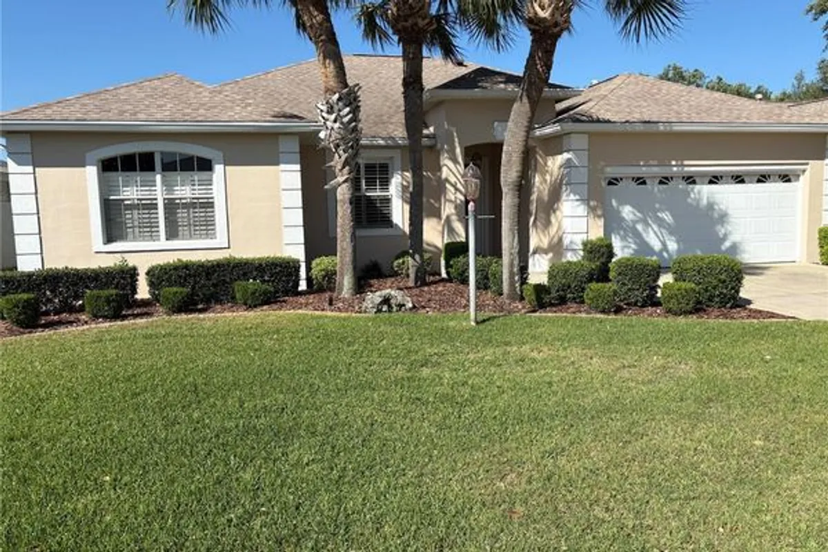This well-maintained 2000-built home features 3 bedrooms and 2 baths, situated on a premium lot overlooking the 15th hole of the Tortoise and the Hare golf course. It includes ceramic tile in living areas, luxury vinyl plank in bedrooms, plantation shutters, and a gas fireplace. The master bath offers dual vanities and a custom tub, while the guest bath has a walk-in shower. The great room layout is ideal for entertaining and opens to an enclosed lanai with ceiling fans and vinyl windows, complemented by a spacious backyard with privacy hedges and a concrete patio. The garage features an electric rollup screen door as well. Located in Ocala’s premier, gated, active 55+ community, loaded with amenities, including golf cart access to 2 shopping centers. Call and schedule your showing today!