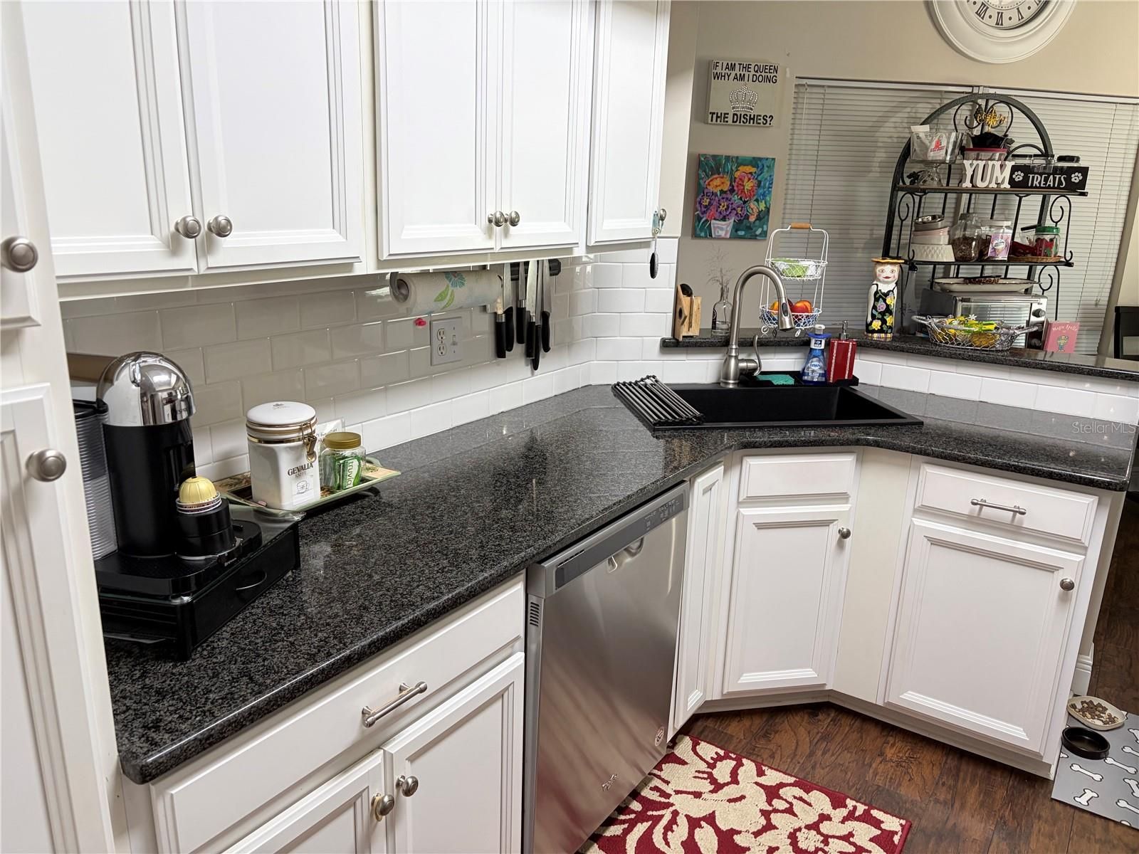 TOO GOOD TO BE TRUE....! GORGEOUS, SOLID CONCRETE BLOCK HOME; REMODELED! NEW BATHROOMS, NEW WATER RESISTANT LUXURY "WOOD LOOK" FLOORING THRU-OUT. HIGH VAULTED CEILINGS, MAKE THIS HOME FEEL INCREDIBLY SPACIOUS. NEW LUSH GRANITE COUNTERS AND WHITE CHALET CABINETS. NEW FULL, DEEP MODERN GRAPHITE KITCHEN SINK. GENEROUS MASTER SUITE WITH DUAL SINKS AND PLENTY OF GRANITE COUNTERS TO ACCOMMODATE SITTING VANITY AREA FOR MAKEUP. NEW WHOLE HOUSE WATER SOFTENER SYSTEM, LEAVES YOUR HAIR AND SKIN LOOKING HEALTHY AND NO CALCIUM BUILDUP AROUND THE FAUCETS. NEW DOUBLE PANE STORM WINDOWS AND GLASS DOOR. SECLUDED SIDE PATIO WITH PAVERS AND ROOM FOR YEAR ROUND ENTERTAINING.EXTENDED PAVER DRIVEWAY CAN FIT MULTIPLE GUESTS CARS. IDEAL LOCATION CLOSE TO RECREATION CENTER WITH MAIN POOL AND ALL THE ACTIVITIES.THIS HOME IS LOADED, PLUS IT HAS A TOP LINE 65"TV & SOUNDBAR. DON'T MISS OUT. BRAND NEW ON MARKET,SEE IT TODAY!
