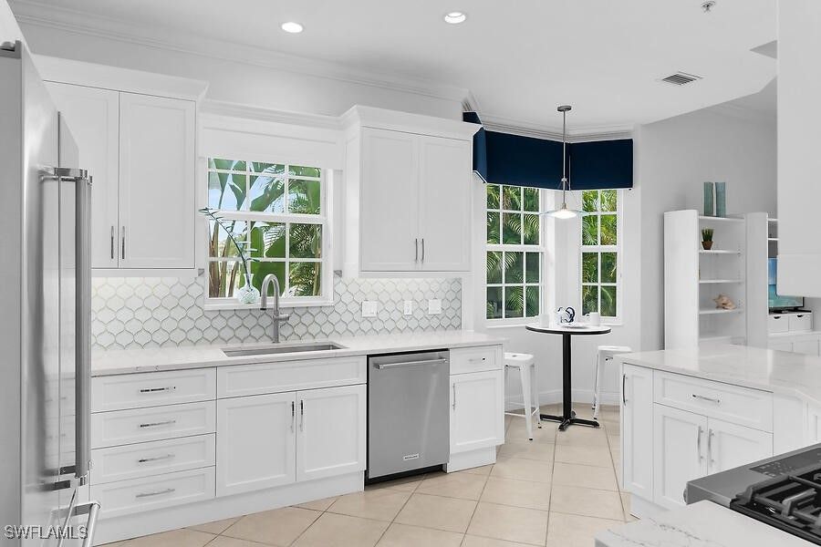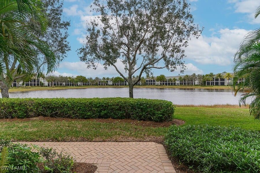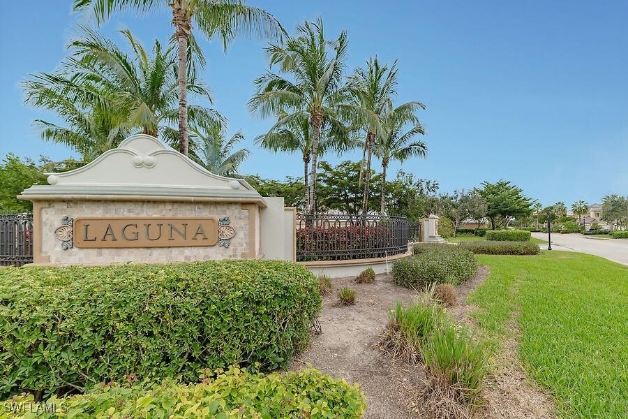 WOW factor from the moment you arrive! Gorgeous lake views surround this special first-floor end residence, offering exceptional privacy and an abundance of natural light. Spacious rooms and an oversized lanai create the perfect setting for both relaxed living and effortless entertaining, with soothing water views and balmy breezes flowing throughout the home. This thoughtfully designed floorplan is enhanced by a brand-new A/C, plantation shutters throughout, hurricane-impact windows, and electric shutters on the lanai. The kitchen has been stylishly updated with new countertops, cabinetry, backsplash, gas cooking, and newer stainless-steel appliances—perfect for the home chef. Laguna residences feature newer roofs and fresh exterior paint, all within a beautifully landscaped community with a serene pool just steps away. Located in the renowned Fiddler’s Creek, residents enjoy world-class, resort-style amenities including championship golf, a luxurious spa, state-of-the-art fitness center, and casual and fine dining. Optional memberships provide access to beach, boating, and marina privileges. Perfectly positioned between Marco Island and downtown Naples, Fiddler’s Creek offers unmatched convenience and an exceptional lifestyle. This is Southwest Florida coastal living at its finest—where comfort, elegance, and every wish come together.