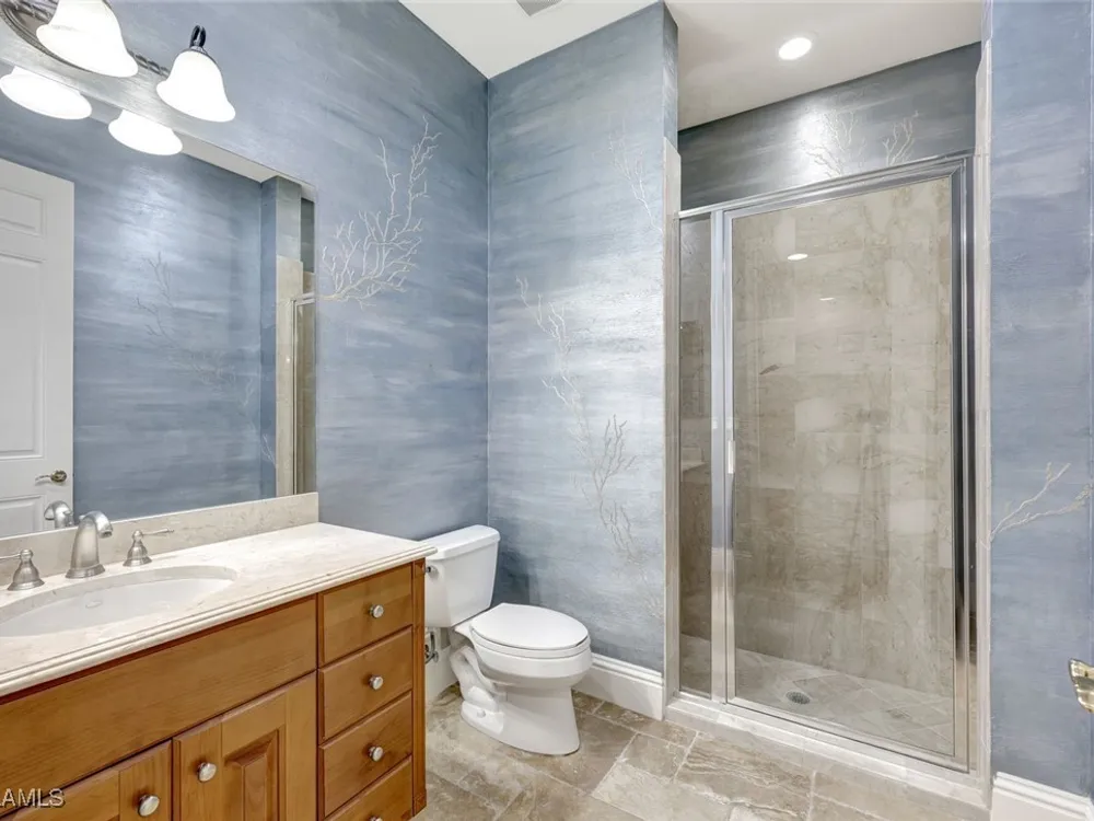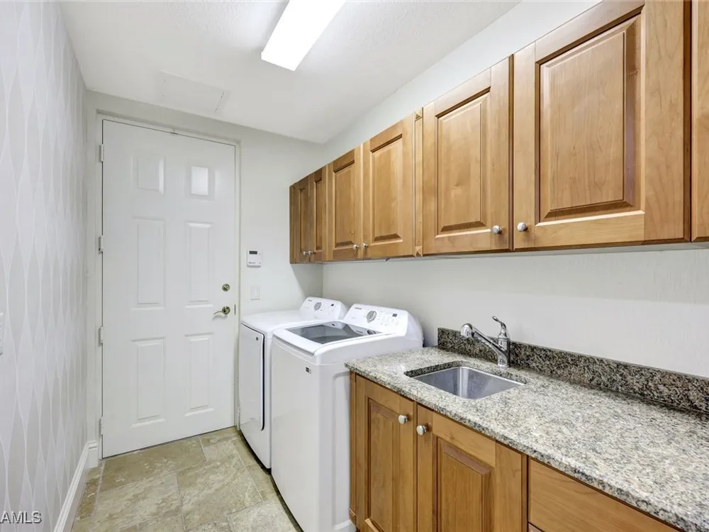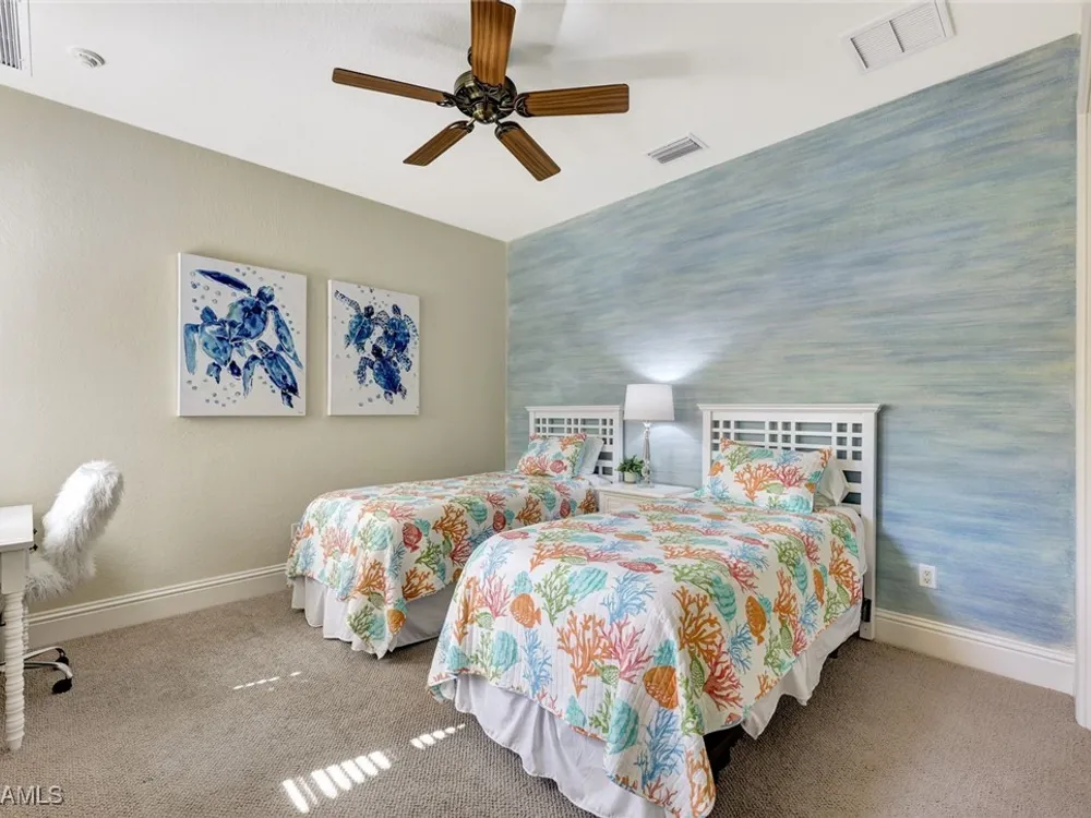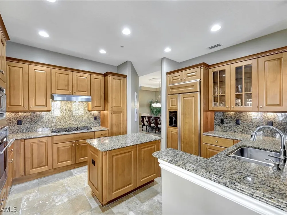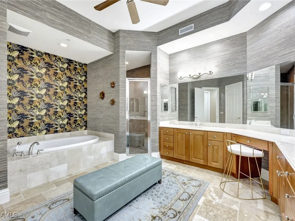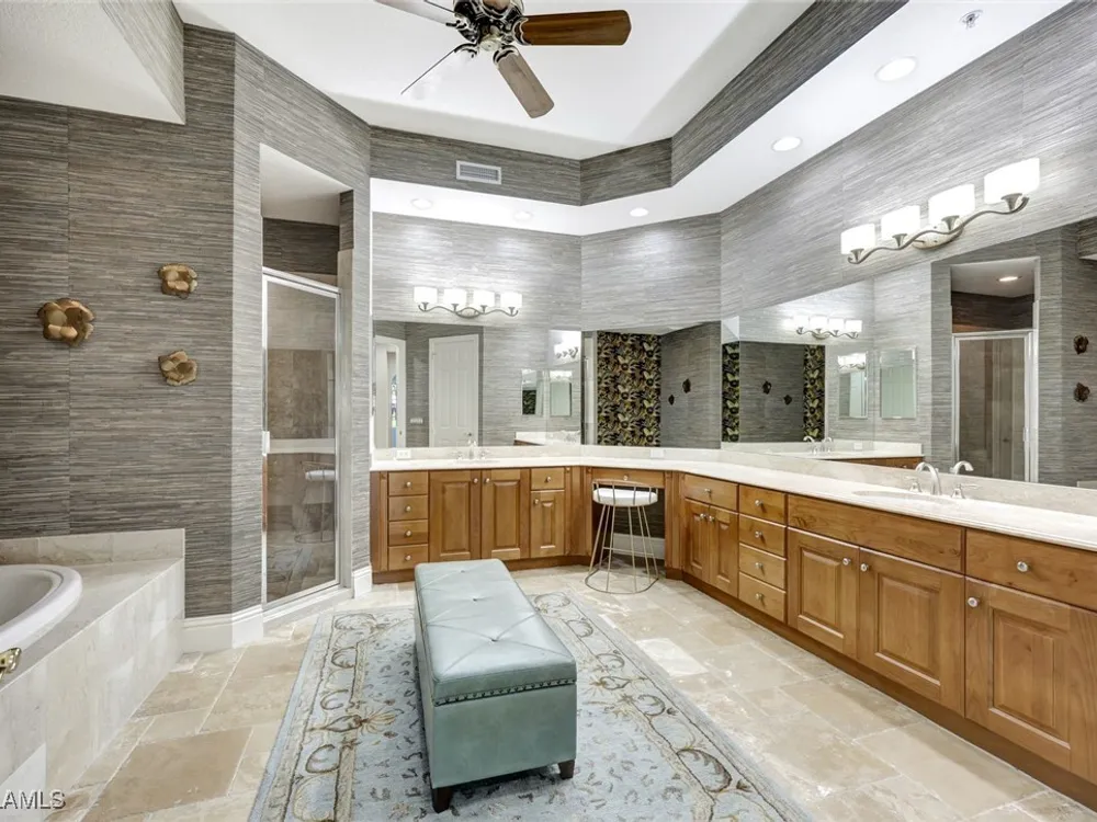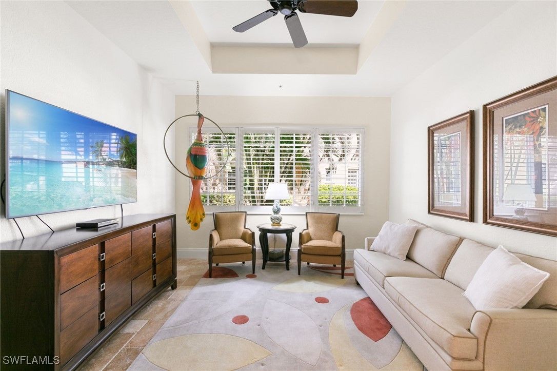 This stunning 3-bedroom plus den, 3-bathroom end-unit in Menaggio offers the epitome of luxury living with gorgeous water views. Boasting just over 2,900 square feet of elegantly furnished space and impeccably maintained, this residence is perfect for both entertaining and relaxing, featuring gorgeous travertine floors, a drop-down accent ceiling, and crown molding throughout. The oversized primary bathroom is a true retreat, complete with a large garden tub, a walk-in shower, and a bidet for added comfort. The spacious primary suite also includes expansive walk-in closets for your convenience. Two additional guest bedrooms with en suite bathrooms ensure privacy for visitors, while the generously sized den offers a versatile space for an office, lounge, or library. Step outside to the private, L-shaped lanai, where you can unwind and enjoy breathtaking water views. The home's architectural elegance is complemented by a beautifully maintained satellite pool, a private cul-de-sac road, and meticulous landscaping. Menaggio stands out as one of the most prestigious condominium communities within Fiddler’s Creek, offering more square footage than any other first floor condo in the community. The award-winning, resort style community of Fiddler's Creek is enhanced by a club and spa, fitness center, swimming pools, two golf courses, tennis courts, pickleball courts, a bocce court, fine and casual dining, social activities, and miles of biking and walking paths. Optional beach club and marina memberships are available. Experience the epitome of luxury living, where every detail is thoughtfully curated to complement your lifestyle