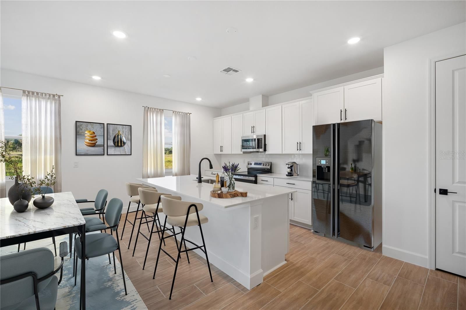 This AGATE model offers approximately 2080 square feet of living space with 4 bedrooms and 3 bathrooms. This home includes an expanded 3-car garage with epoxy floors, an open floor plan, wood-look tile, soft-close cabinets, quartz countertops, 8 ft doors, and a large center island—perfect for entertaining! located on a spacious 1/3-acre lot with a GOLF COURSE VIEW in the gated community of Glen Lakes in the Spring Hill, Brooksville, Weeki Wachee area — Florida's Nature Coast, just outside Tampa. Glen Lakes offers resort-style amenities including golf, clubhouse, fitness center, pool, dining, tennis, pickleball, and more. There is NO CDD, and the HOA is $300/month but includes a Spectrum internet package. Virtually Staged photos.