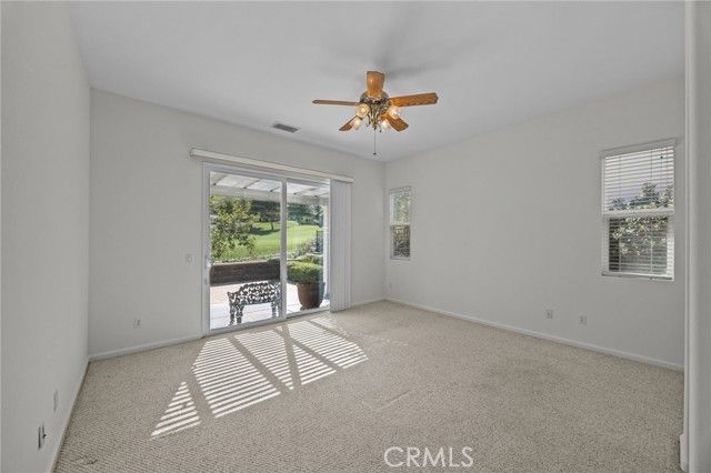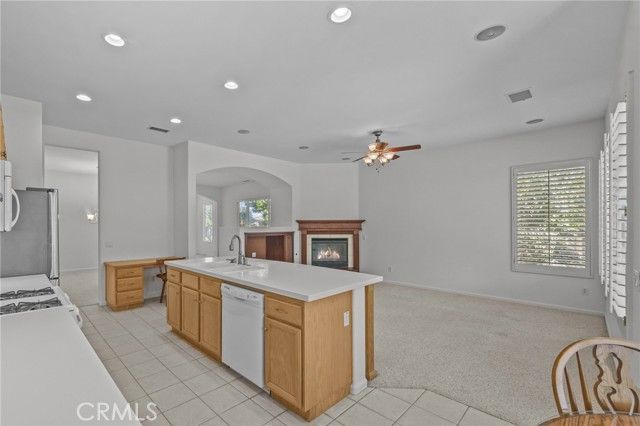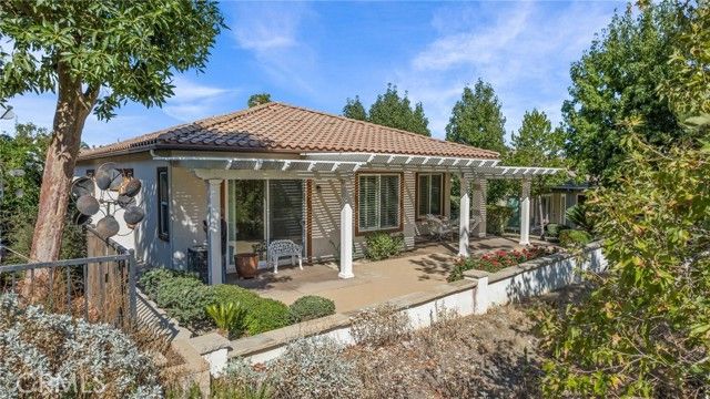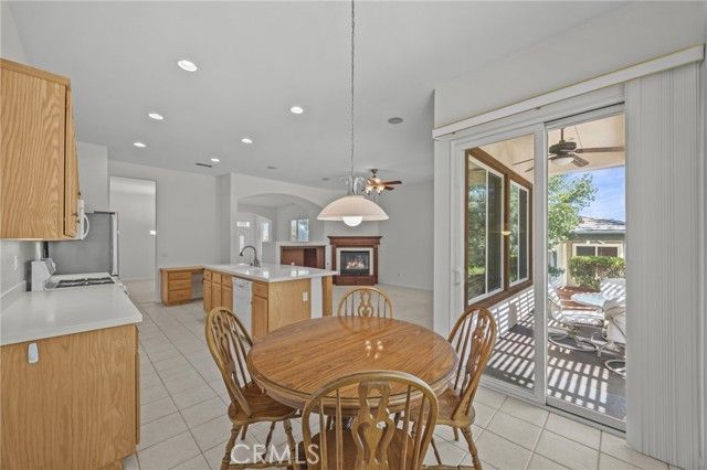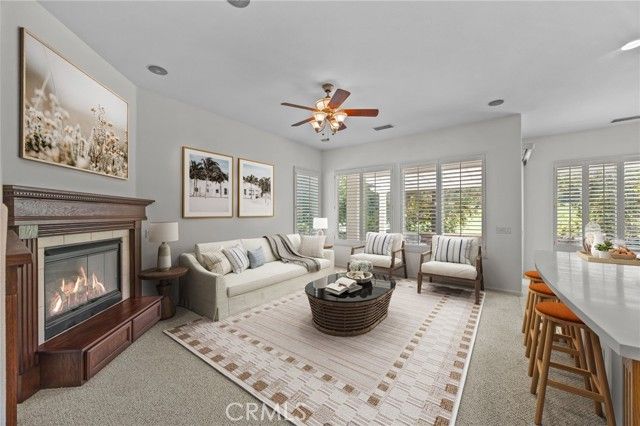 Live your best life on Fairway #1 of the Beautiful and Prestigious Glen Ivy Golf Club in Trilogy at Glen Ivy, Corona’s premier 55+ gated community! This Beautifully Located home is perfectly positioned mid-fairway on Hole #1, offering stunning golf course, mountain, and hillside views. The location on the course is PRIME! Well protected by beautiful landscaping and trees, yet an unobstructed view of the fairway! Step inside to the bright, open floor plan featuring a stylish island kitchen with breakfast bar, abundant cabinetry, and modern appliances. The spacious living and dining areas include a cozy gas fireplace—ideal for entertaining or quiet evenings at home. Large sliding glass doors open to a private outdoor patio with an AlumaWood patio cover, perfect for enjoying beautiful views year-round. The primary suite showcases serene vistas and private patio access. Additional highlights include a 2-car attached garage, indoor laundry, ceiling fans throughout, low-maintenance landscaping, new water heater (Jan 2024), new garage door opener (Aug 2024), and fresh exterior paint (2022). Located near the clubhouse, pools, fitness center, and walking trails, this home offers resort-style living in one of Trilogy’s best golf course settings. Don’t miss this rare opportunity for the PRIME Location this home offers! Active Adult 55+ Home in Trilogy at Glen Ivy | Golf Course Location | Stunning Views