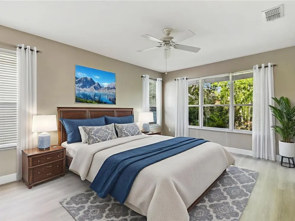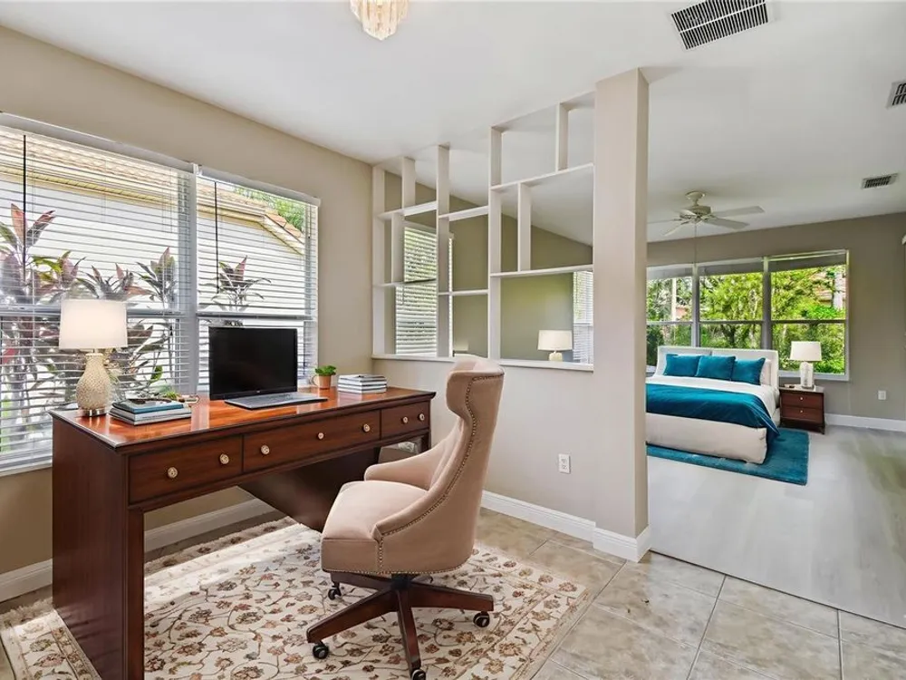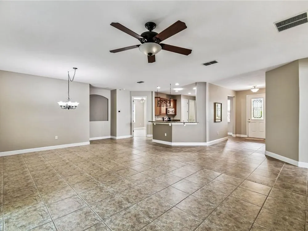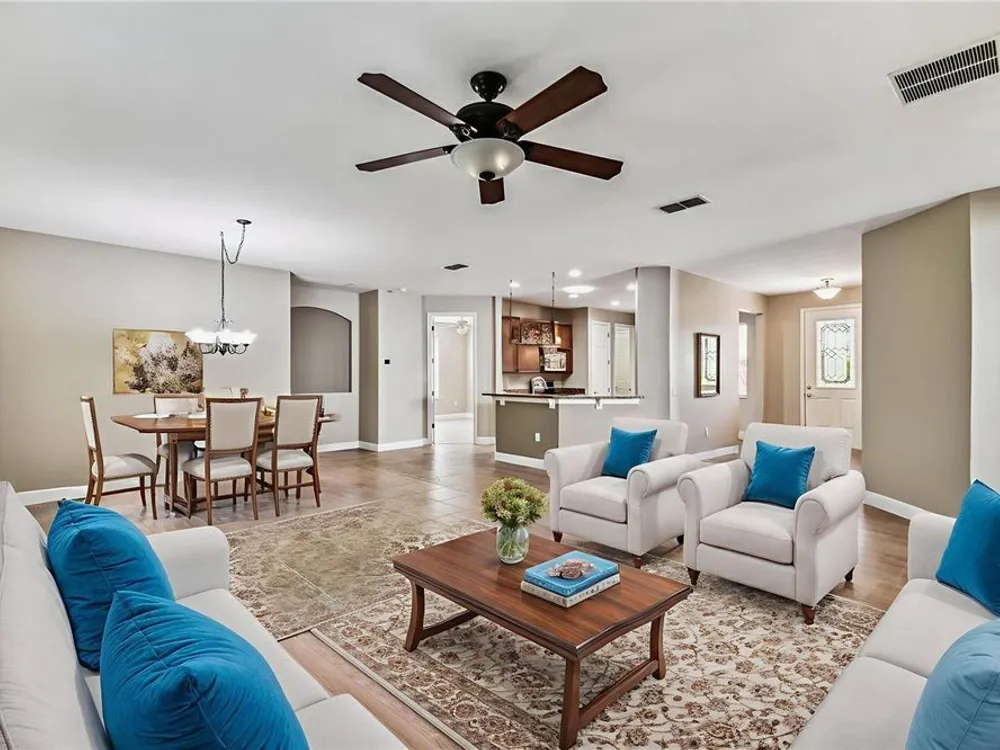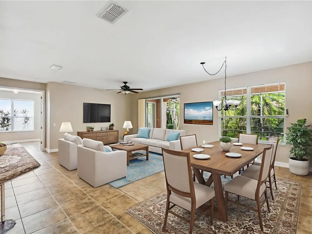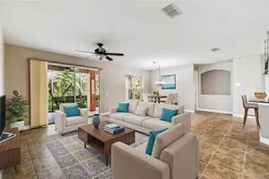 One or more photo(s) has been virtually staged. OWNERS SAY SELL! MAKE AN OFFER! ALL REASONABLE OFFERS CONSIDERED. Super location for this SAVOY Model home. Designer TILE FLOORING in main living area. NEW LUXURY VINYL PLANK FLOORING in bedrooms (2025), FRESHLY PAINTED INTERIOR (2025), newer STAINLESS STEEL appliances, CROWN MOLDING and HURRICANE SHUTTERS. HVAC replaced in 2021. Eat-in Kitchen has GRANITE COUNTERS, loads of cabinets, pull outs, SOLAR TUBE, and lots of counter space for those who love cooking and entertaining. The open floor plan makes for great formal and informal gatherings that may extend out to the large, covered lanai lined by gorgeous specimen plants and shrubs. Main bedroom suite has a peaceful SITTING ROOM/OFFICE. Bedroom itself has loads of windows and lush greenery to view. It has access to the lanai as well. The ensuite bathroom has TWO WALK-IN CLOSETS, has a GARDEN TUB, private commode, vanity with dual sinks and separate shower. Bedrooms two and three are well sized and share a Jack and Jill full bathroom. EXTERIOR PAINTED IN 2024. Solivita's amenities include: a manicured SOFTBALL diamond & field - 36 holes of CHAMPIONSHIP GOLF that can be played by joining the Stonegate Golf Club or paying as you go - 2 STATE of the Art AMENITY CENTERS with updated exercise equipment, yoga studio & meeting rooms - 3 restaurants - 14 HEATED POOLS - 17 PICKLEBALL Courts - 9 TENNIS Courts - 4 BOCCE BALL Courts - 4 SHUFFLEBOARD Courts-3 HORSE SHOE PITS, a BILLIARDS ROOM, BIKE PATHS, 2 DOG PARKS (Small and Large dogs), CORN HOLE, Tot PLAYGROUND, COMMUNITY GARDEN, over 250 resident clubs. The HOA maintains LANDSCAPING and IRRIGATION SYSTEMS in common areas as well as individual homesites, maintains the roads throughout the community, PROVIDES SECURITY with GATE GUARDS and mobile patrols including the Polk County Sheriff, allows AUTOMATED GATE ACCESS for residents via license plate readers, provides Fiber Optic Internet& TV service. Poinciana Lakes Plaza is a MAJOR NEW SHOPPING CENTER that opened directly across from Solivita's Main Gate Summer of 2024. It Burlington plus more. ORLANDO INTERNATIONAL AIRPORT and BRIGHTLINE RAIL just 40 minutes away. DISNEY and other ATTRACTIONS within 35 minutes.