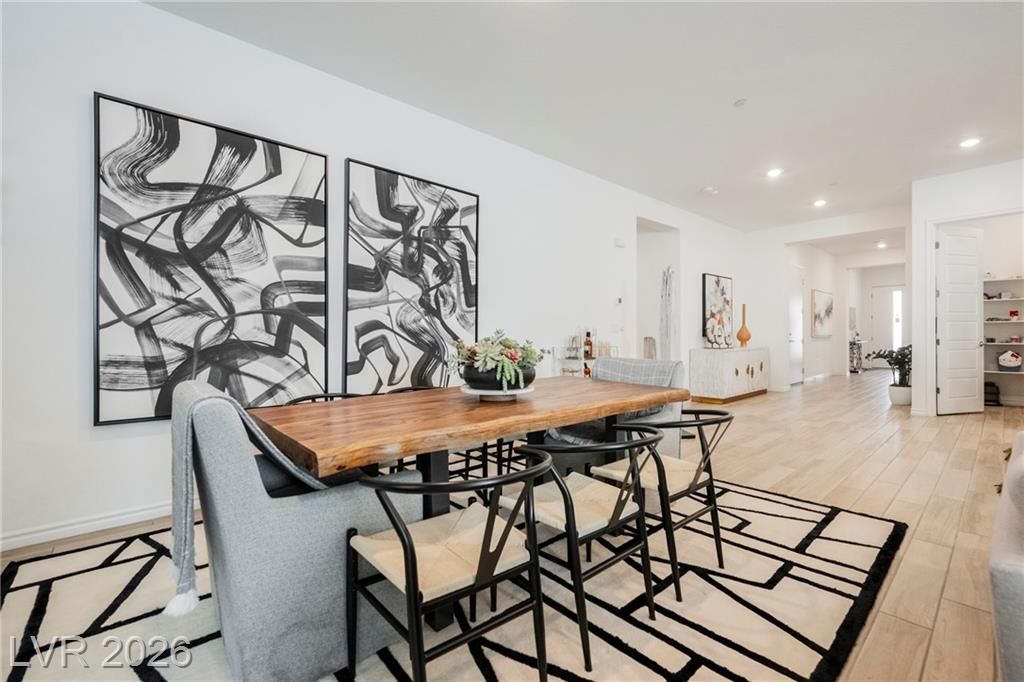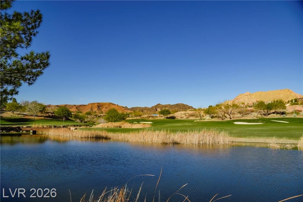 Experience refined living in the prestigious, gated Reverie at Lake Las Vegas. This exceptional single-story home features bespoke interiors curated by a professional designer, upgraded finishes, a designer kitchen backsplash, and Hunter Douglas shades throughout. The open-concept layout flows seamlessly into a chef-inspired kitchen, ideal for entertaining. A finished RV garage with epoxy floors adds rare functionality and appeal. Enjoy a shaded covered patio with mountain views, surrounded by low-maintenance desert landscaping and neighboring multi-million-dollar homes. Includes a Lake Las Vegas Sports Club membership with a $25,000 initiation fee already paid. Located near the lake, water sports, dining, shopping, and entertainment.