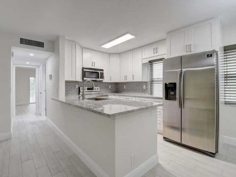 LOCATION, LOCATION, LOCATION! RENT IMMEDIATELY - TENANT OCCUPIED. Just listed: Gorgeous 2-bedroom, 2-bathroom condo on the 2nd floor in a vibrant 55+ community. Start your mornings with coffee on your enclosed patio overlooking the golf course. This beautifully renovated unit features a modern kitchen with granite countertops, stainless steel appliances, and tile flooring throughout. The stunning bathrooms are totally updated with tiled showers, updated vanities, and sleek glass shower doors. Enjoy peace of mind with a newer AC unit and hot water tank. The condo also includes a washer and dryer conveniently located on the enclosed patio. Ideally located in the heart of Delray Beach, this condo offers easy access to major highways, top-rated hospitals, shopping centers, and the exciting