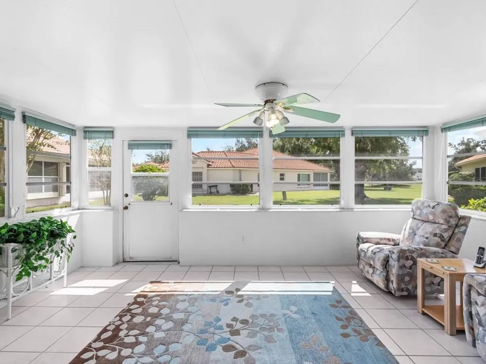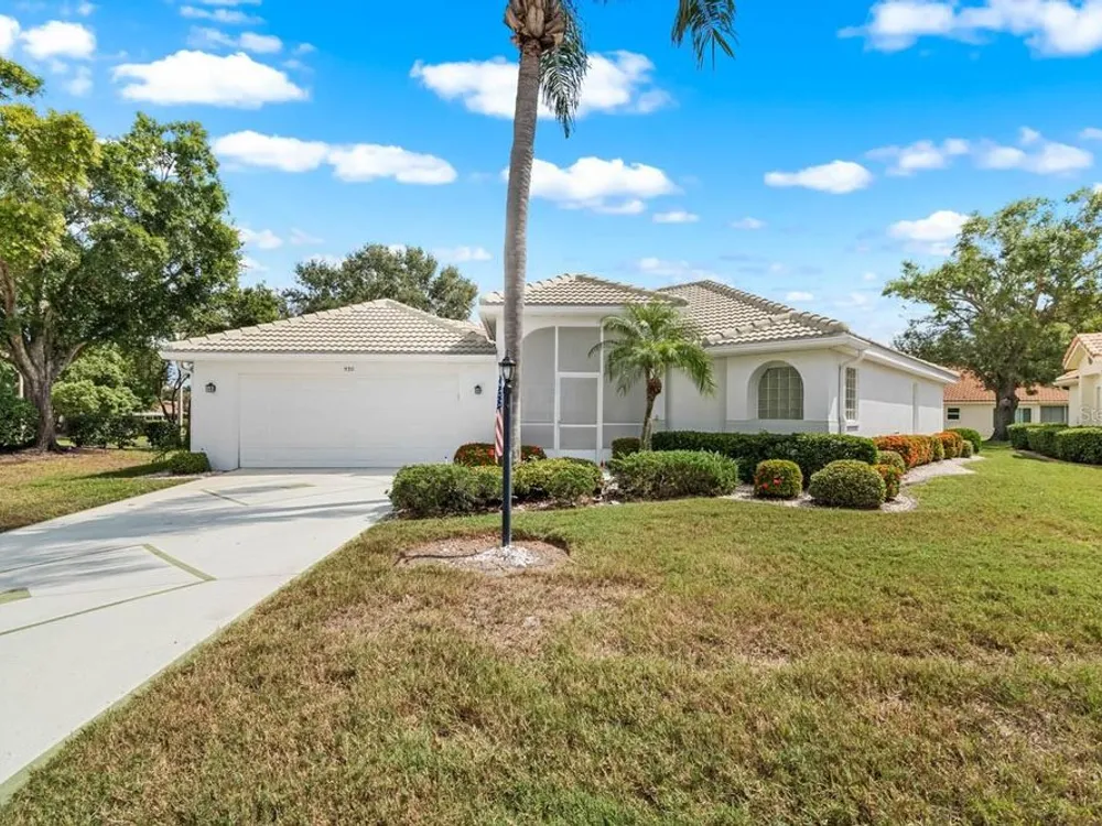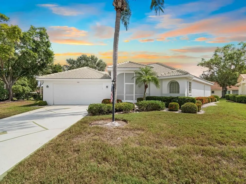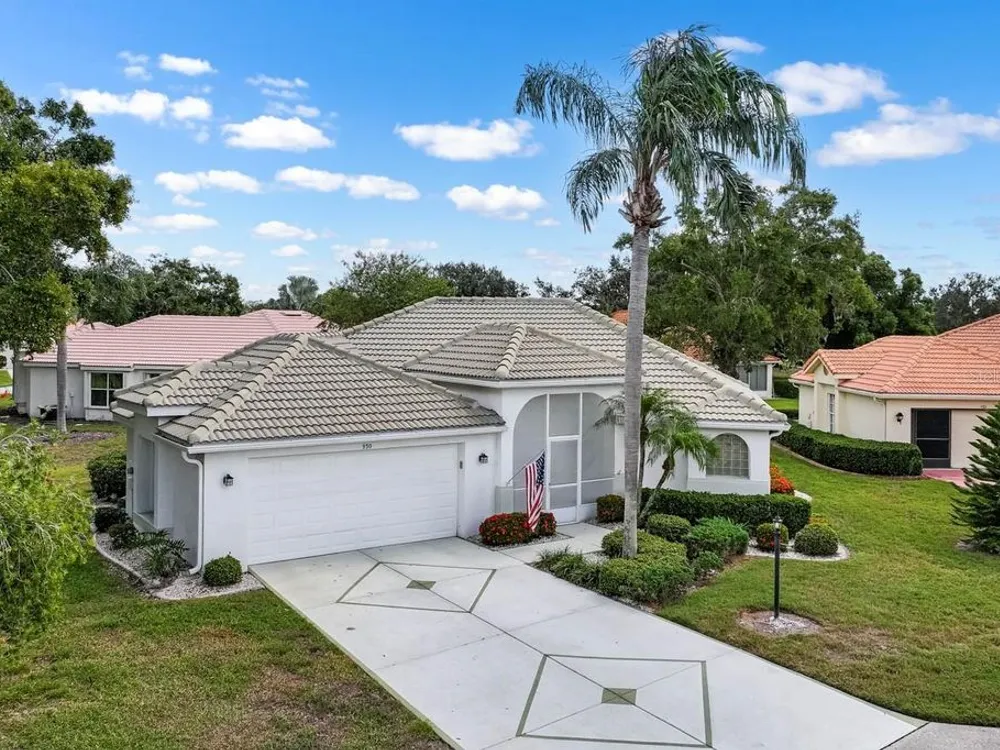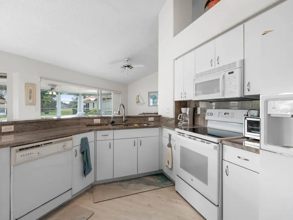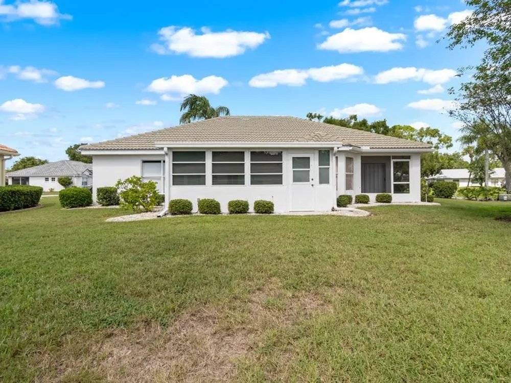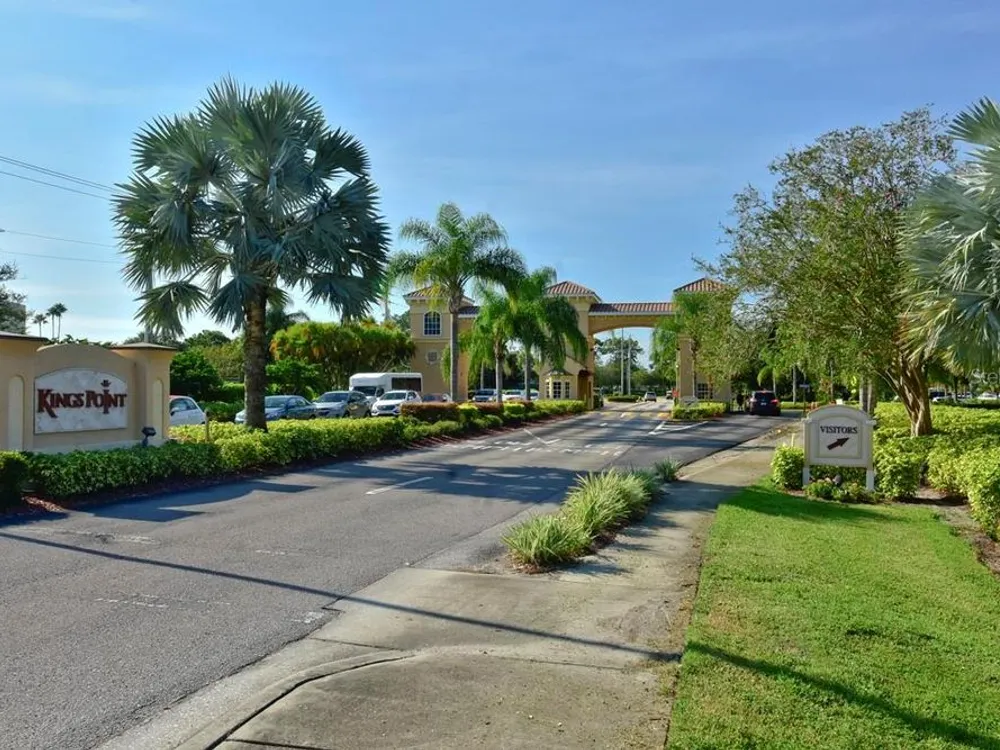 This rare UNATTACHED single-family-home-style condo is a FURNISHED, MOVE-IN READY dream presenting a SCREENED FRONT PORCH, 2-bedrooms, 2-bathrooms, a 2-car attached garage with driveway, GOLF CART, SCREENED LANAI, and an enclosed FLORIDA ROOM! Located on a CUL-DE-SAC in the active and engaging 55+ community of Kings Point, this beautiful property would make a low maintenance home away from home, or the perfect full-time residence. NO CARPET to contend with - tile and luxury vinyl plank flooring throughout! The foyer has a convenient coat closet and ushers you into the Great Room splitting the spacious living and dining areas with their HIGH CEILINGS and PLANTATION SHUTTERS. The kitchen is equipped with a closet pantry, BREAKFAST BAR, desk build-in, and a dinette for informal meals. There's a sitting room area that accesses the large Florida Room through sliders. The Primary Suite features DUAL WALK-IN CLOSETS and an EN-SUITE BATHROOM complete with a DUAL-SINK VANITY, SHOWER with SEPARATE SOAKING TUB, water closet, and linen closet! The secondary bedroom is a comfortable size, and the secondary bathroom is outfitted with a single-sink vanity and tub/shower combination. There's an interior laundry room with its own cabinetry, and the screened lanai is the perfect spot for grilling! Kings Point is a bustling gated and golf cart friendly community known for a myriad of recreation facilities, indoor/outdoor heated pools, a state-of-the art fitness center, arts, crafts, tennis, pickle-ball, lawn bowling, auditorium with 800+ seating and over 200 clubs & activities. Begin the process of making this home your personal paradise by scheduling your showing today!