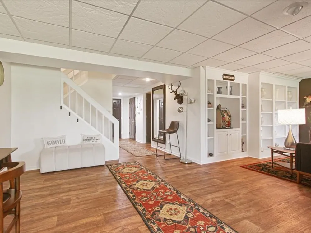 This spacious Oakwood model offers 4 bedrooms, 2 full baths, 2 half baths, and a 2-car garage, all set within the desirable gated community of Lake Barrington Shores. Enjoy serene natural views and abundant sunlight in this beautifully appointed, nestled in a peaceful setting with a cozy golf course backdrop. Beautiful Kitchen, newer Samsung & GE Appliances, (Double Oven), Refrigerator, Eat In Kitchen, lots of natural light! Plantation shutters in many rooms; Main Level HARDWOOD flooring. Upper & Lower Levels feature beautiful Luxury Vinyl Plank flooring. The bathrooms have been updated with modern quartz counter/sinks and beautiful hardware. Large office area and a sunroom with lots of windows on the main floor; The living room showcases a dramatic soaring fireplace, while the spacious walkout lower level features a wood-burning fireplace, perfect for entertaining or relaxing. A private courtyard entry with a large seating area and cathedral ceilings in the living room add charm, and the versatile layout accommodates comfortable everyday living; 3 outside spaces to enjoy - courtyard, balcony, and lower patio; Residents enjoy resort-style amenities including a private lake with a marina and a sandy beach, indoor and outdoor pools, fitness center, tennis and pickleball courts, scenic walking trails, an 18-hole golf course (memberships extra), and a vibrant clubhouse with year-round social events - all within a beautifully landscaped and secure setting with Barrington schools and Full-time security.