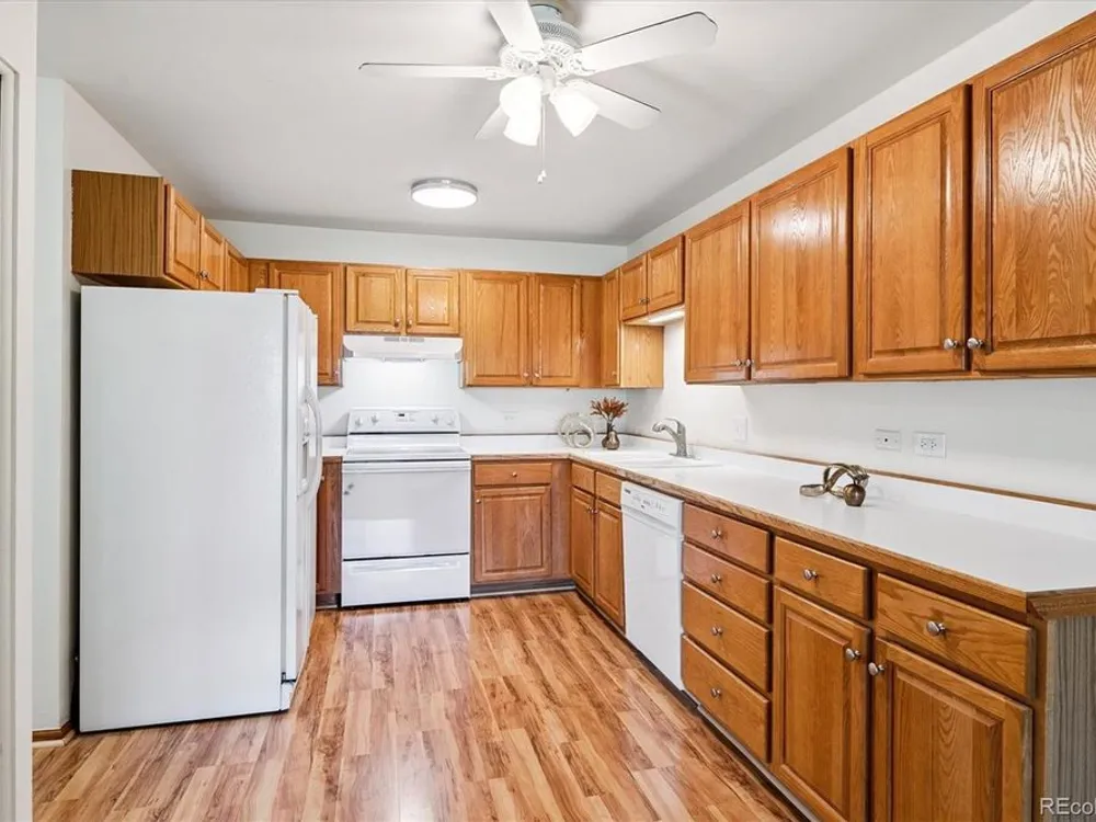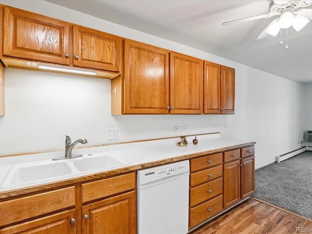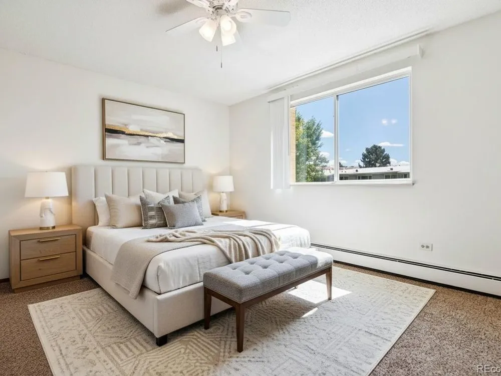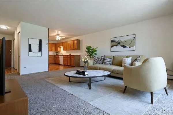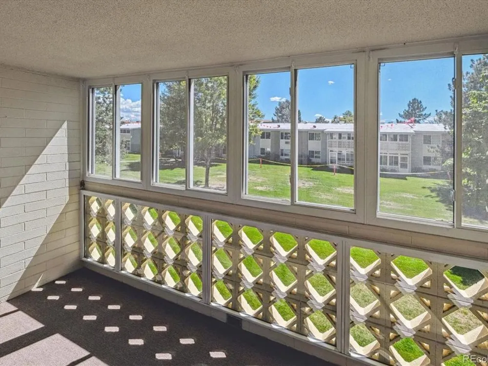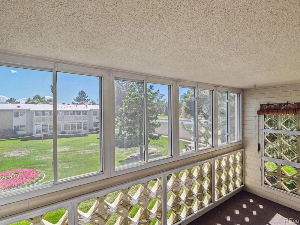Welcome to this updated and move right in corner condo, on same floor as laundry- and overlooks a beautiful courtyard! Updates thru-out, this 2 bedroom/1 bathroom is the 945 sf floorplan, and includes a 1 car detached garage close to building. Kitchen features updated wood-soft close cabinets extended more than most, and bonus countertop space. All white appliances included! The 3/4 Bathroom is a spacious walk-in shower, & updated vanity/top/fixtures. Neutral paint/carpet color scheme. Special double pane vinyl enclosed lanai and brand new vinyl slider door! 1 updated wall ac unit included in living room. Bonus storage room on same floor as condo. Great time to move into a ready to go home! **Windsor Gardens is Colorado's Largest Age 55+ Active Adult Living Condo Community. Did you know? Monthly HOA Dues include annual property taxes! And heat, water, sewer, trash, round-the-clock patrolling community responders, full time onsite association management, grounds/building maintenance, and activities department. Enjoy clubhouse amenities such as fitness center, indoor/outdoor pools, hot tub, sauna, billiards, library, craft rooms for ceramics, sewing, woodworking, and 9 hole par 3 golf course and onsite restaurant both open to the public. Stay engaged with a wide array of activities, clubs, and events scheduled every month. Additional features include garden plot program, private walking trail and nature preserve, and RV/Boat storage. The Highline Canal runs full length along south side of the complex. RTD Bus Stops located thru-out the community. FHA/VA approved. Close to restaurants, stores, shopping…Minutes to Lowry, Hwy 225, Cherry Creek…Easy access to DIA and downtown. Come see for yourself what Windsor Gardens has to offer. ©2021**