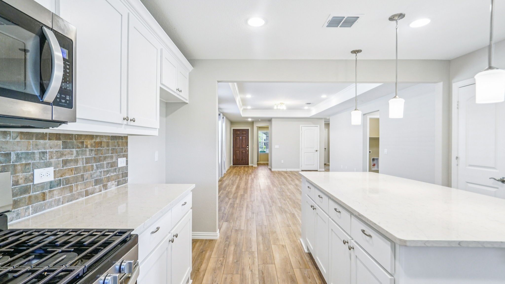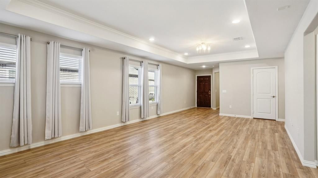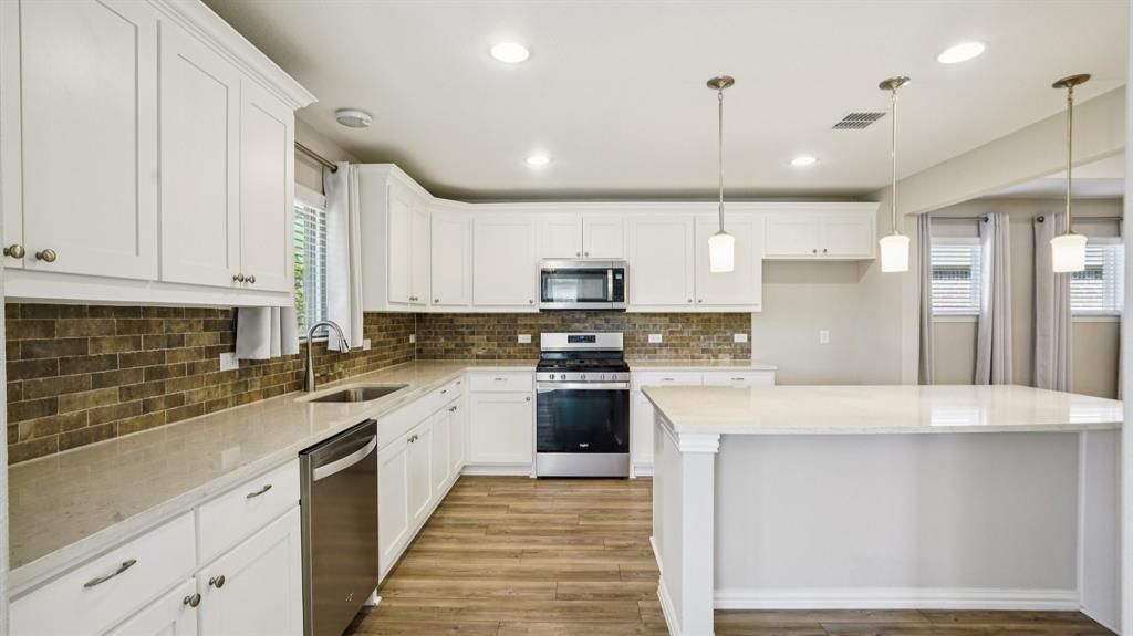 Welcome to this impeccably maintained Taft floor plan, located in the sought-after Del Webb active adult community at Trinity Falls. Designed for refined, low-maintenance living, this single-story home blends upscale finishes with practical comfort—perfect for right-sizing without compromise. The gourmet kitchen features quartz countertops, bright white cabinetry with designer hardware, and stainless-steel appliances—a true chef’s delight. One of the home’s standout features is the sunroom just off the back—a peaceful retreat perfect for your morning coffee and favorite book, or an evening glass of wine with friends. A versatile flex room perfect for work, hobbies, or play—use it as a study, arts and crafts room, or game space. Beautifully upgraded stone and brick flowerbeds add exceptional curb appeal. Enjoy the perfect blend of comfort and accessibility in this ideally situated home. Just minutes away, you’ll find a variety of shopping centers, restaurants, and everyday conveniences that make life effortless. Quick access to major highways ensures an easy commute and effortless travel to nearby attractions, entertainment, and medical facilities. This vibrant 55+ community offers an abundance of amenities designed for active adults, including: a sparkling walk-in pool, 10 pickleball courts, a state-of-the-art fitness center, dozens of clubs, interest groups, and activities for every passion, welcoming coffee bar and inviting gathering spaces, and games, events, and social activities all year long. Furthermore, there are miles of scenic walking trails, peaceful fishing ponds, and beautiful greenspaces and natural landscapes woven throughout. This isn’t just a neighborhood—it’s a true lifestyle community where neighbors become friends and every day feels like a vacation. Don’t miss your opportunity to own this exceptional home and experience resort-style living at Del Webb Trinity Falls. Schedule your private tour today—homes like this don’t come around often!