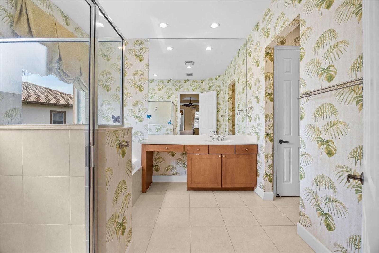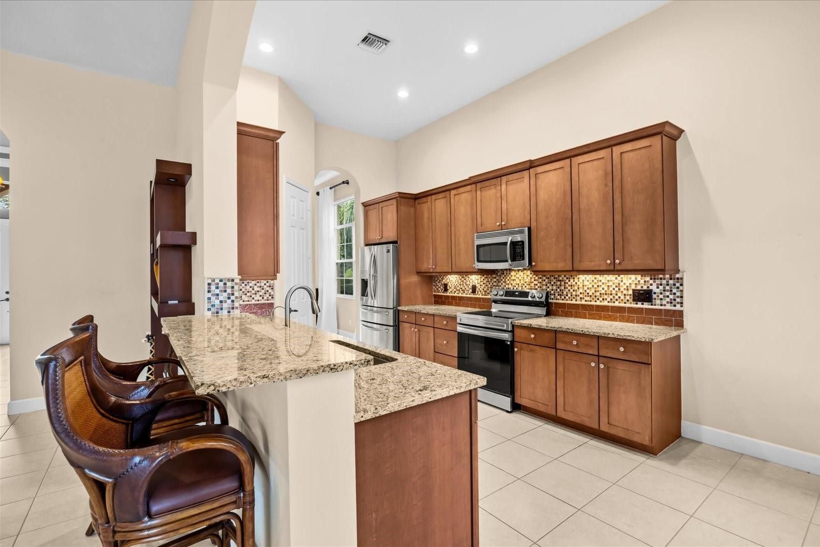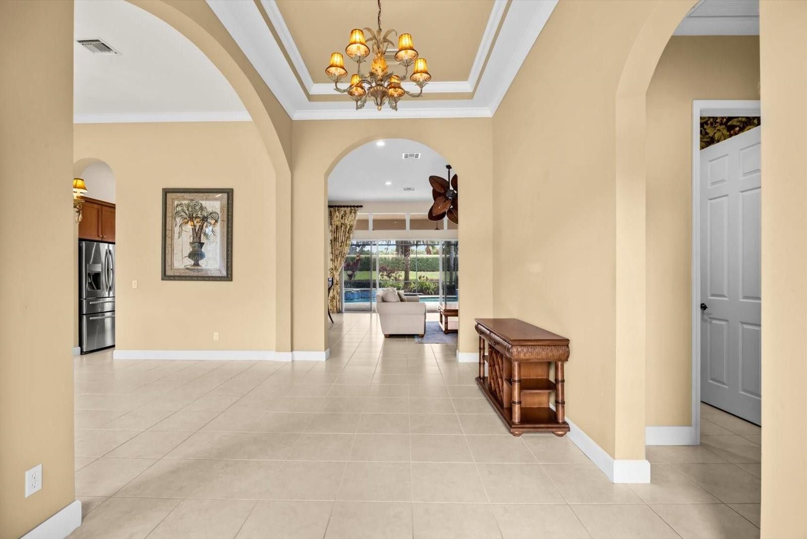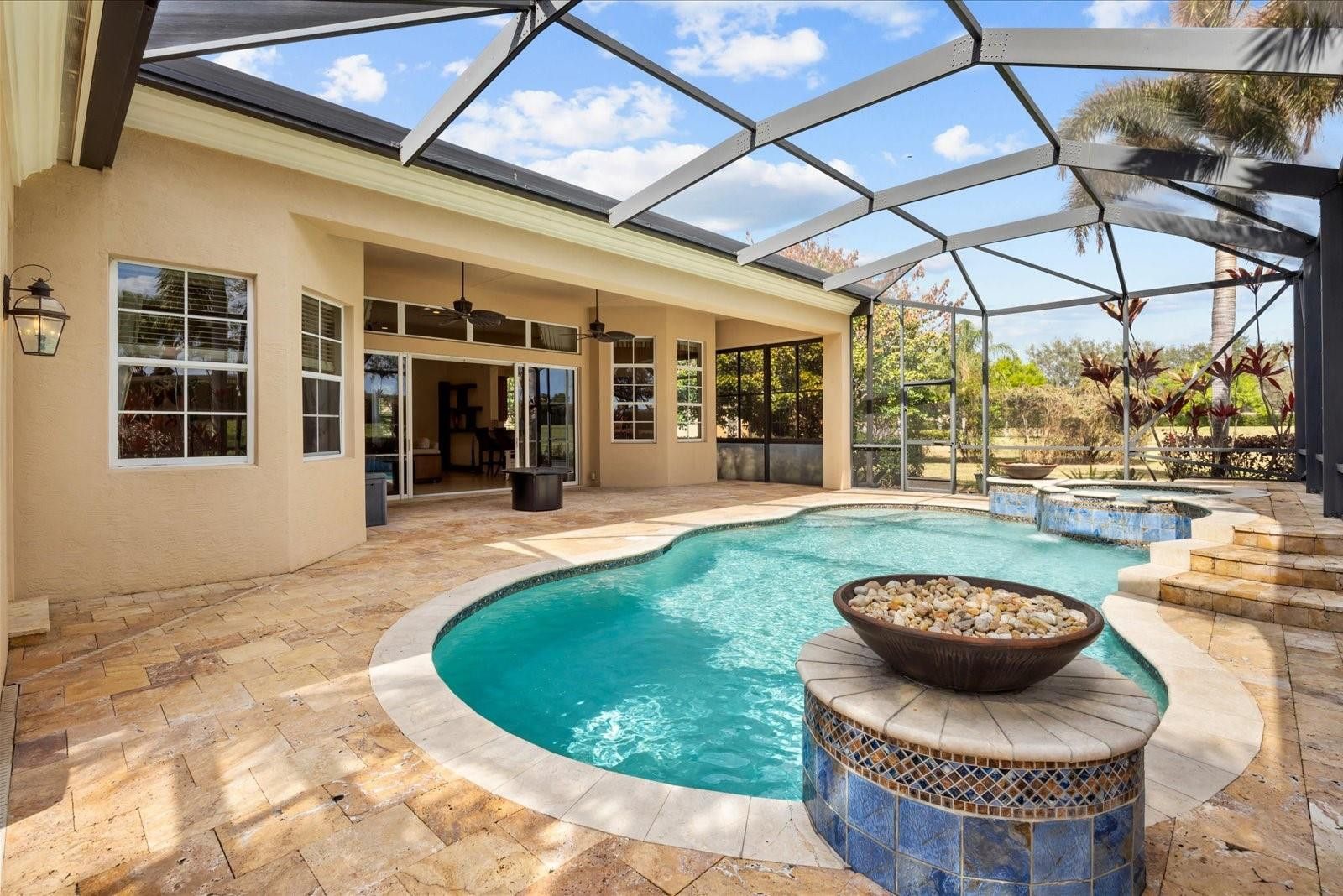 Beautifully designed residence with a new barrel-style roof. This home features a 2025 air conditioning system, a reverse osmosis water filter and a Tesla charger. Located in PGA Village, this three-bedroom, four-bathroom property includes a heated pool with spa. Inside open living spaces, with soaring 12-foot ceilings and a grand foyer. The kitchen featuring granite countertops, custom cabinetry, stainless steel appliances, and a spacious walk-in pantry. It seamlessly connects to the living area, with sliding glass doors leading to lanai. The primary suite with 2 full bathrooms and 2 large walk-in closets. PGA Village offers amenities, including championship golf courses, a clubhouse, a fitness center, resort-style pools, 27 pickleball courts, walking trails and 24-hour gated security.