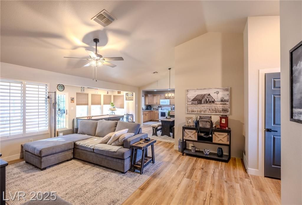 Discover this beautifully renovated 2-bedroom home in the highly sought-after Sun City Summerlin 55+ community. This updated residence features modern flooring, contemporary fixtures, and an expanded sunroom filled with natural light. Both bathrooms have been completely renovated with new cabinets and fixtures, and the primary bedroom features a large walk-in Shower with easy accessibility. The professionally landscaped front and back yards include timed lighting, while the fenced backyard provides ideal space for entertaining or peaceful relaxation. A newer AC unit and water heater less than 3 years old, this home offers both beauty & reliability.This move-in ready gem includes wood shutters & blinds throughout, a home water softener & filtration system, all appliances convey. Sun City offers an exceptional lifestyle with resort-style amenities including clubhouses, social clubs, tennis courts, pools, fitness centers & Theatre, all easily accessible in this golf course community.