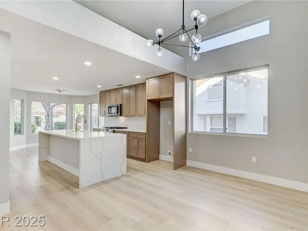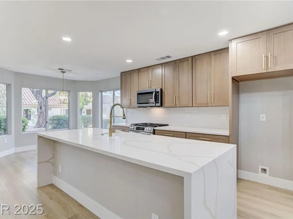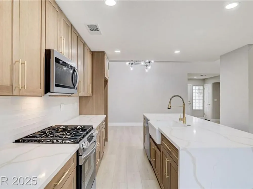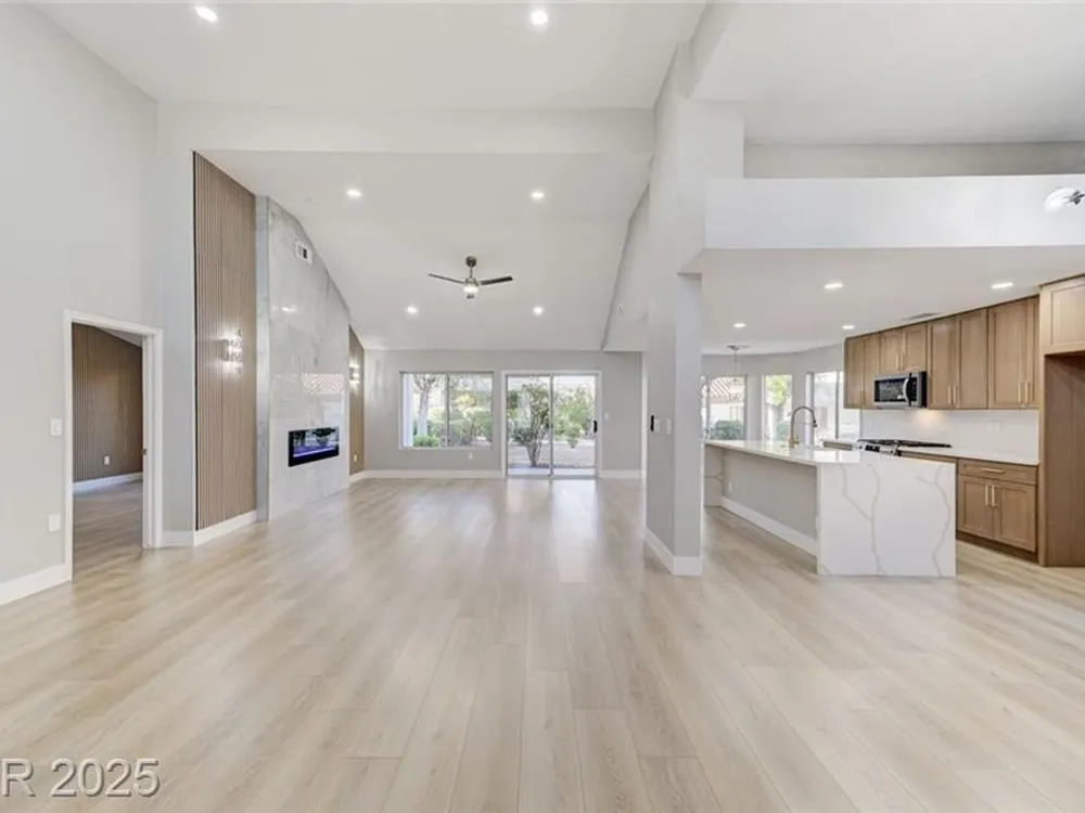 Welcome to 9308 Quail Ridge in the heart of Sun City Summerlin! This beautifully remodeled 2-bedroom, 2-bath home blends modern upgrades with timeless comfort. Step inside to discover a spacious open-concept great room with vaulted ceilings, sleek luxury plank flooring, and abundant natural light. The brand-new kitchen features custom cabinetry, quartz counters, and stainless steel appliances, flowing seamlessly into the dining and living areas—perfect for entertaining or relaxing. The primary suite offers a stylish en-suite bath, while the secondary bedroom is ideal for guests or a home office. Enjoy low-maintenance desert landscaping and a private backyard retreat. Located in one of Las Vegas’ most desirable 55+ communities, residents enjoy golf courses, pools, fitness centers, social clubs, and endless activities. This move-in-ready home is the perfect place to start your next chapter!