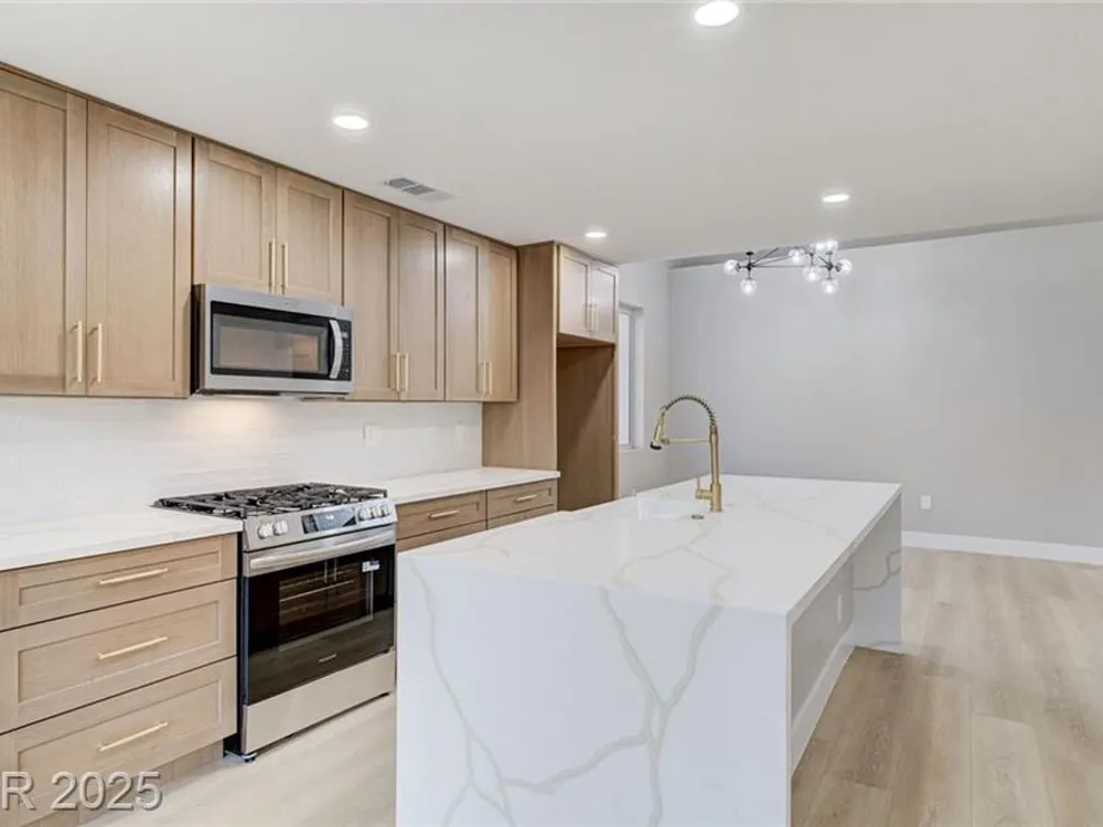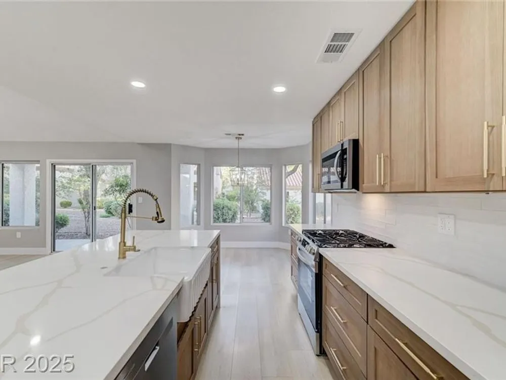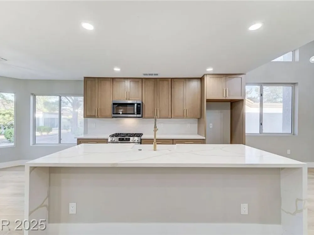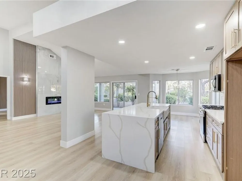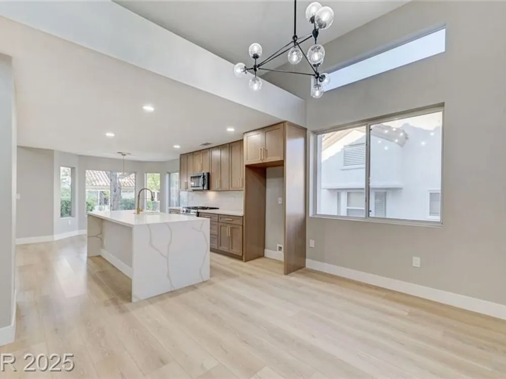 Welcome to 9308 Quail Ridge in the heart of Sun City Summerlin! This beautifully remodeled 2-bedroom, 2-bath home blends modern upgrades with timeless comfort. Step inside to discover a spacious open-concept great room with vaulted ceilings, sleek luxury plank flooring, and abundant natural light. The brand-new kitchen features custom cabinetry, quartz counters, and stainless steel appliances, flowing seamlessly into the dining and living areas—perfect for entertaining or relaxing. The primary suite offers a stylish en-suite bath, while the secondary bedroom is ideal for guests or a home office. Enjoy low-maintenance desert landscaping and a private backyard retreat. Located in one of Las Vegas’ most desirable 55+ communities, residents enjoy golf courses, pools, fitness centers, social clubs, and endless activities. This move-in-ready home is the perfect place to start your next chapter!