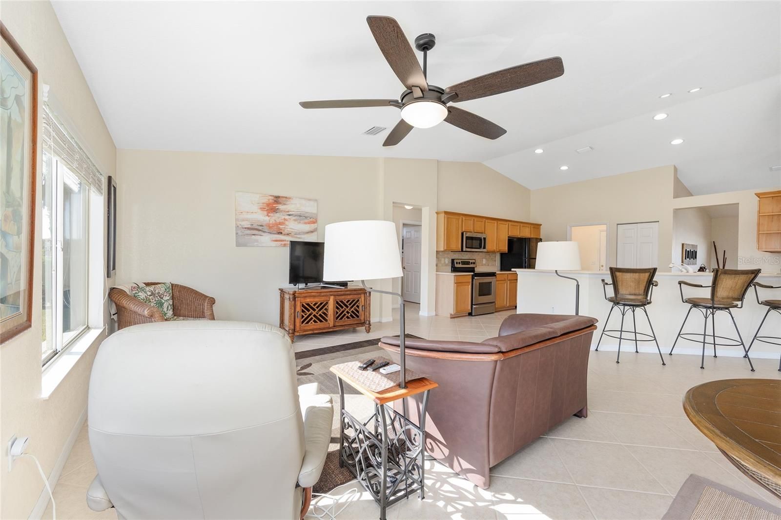 - Ceiling Fan(s), Eat-in Kitchen, Kitchen/Family Room Combo, Open Floorplan, Main Level Primary, Split Bedrooms, Walk-In Closet(s)