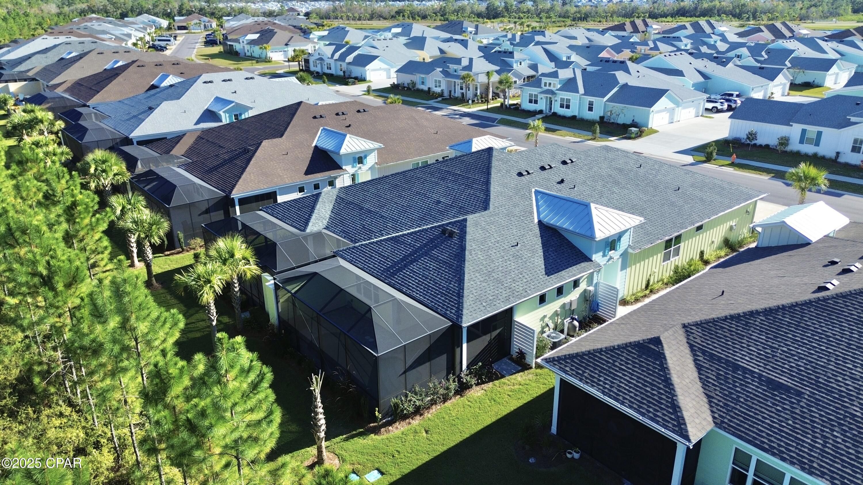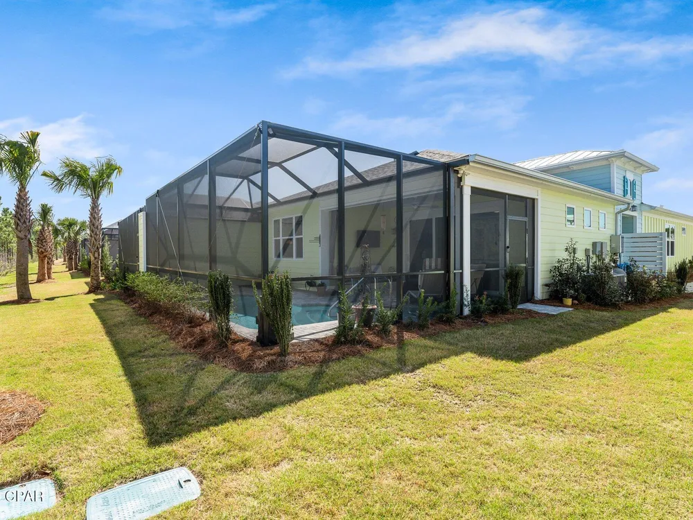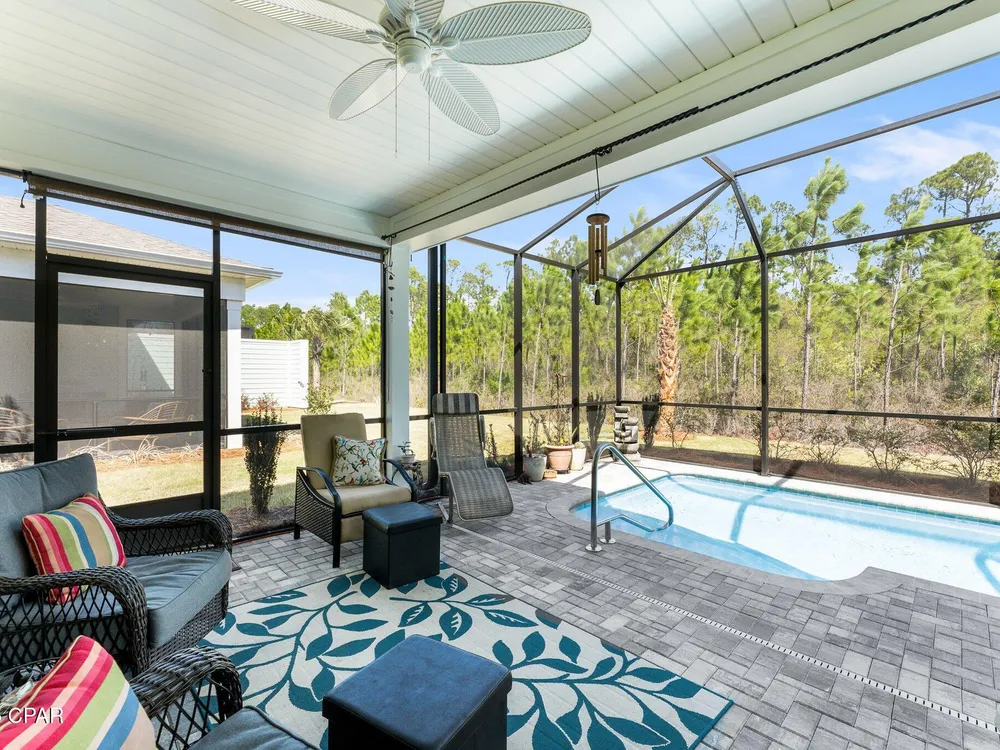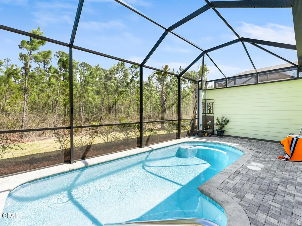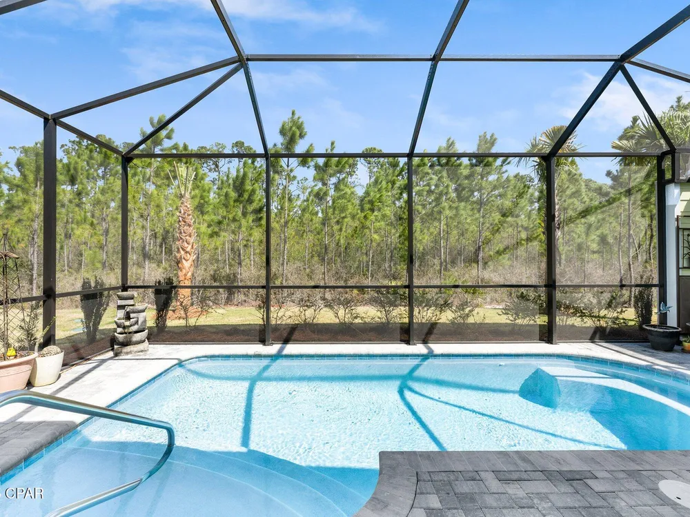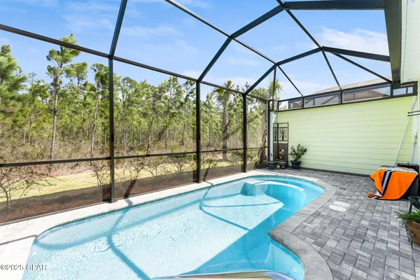 Latitude Margaritaville Watersound - Tortola Villa! Welcome to this beautifully appointed Tortola floorplan Villa with a POOL, in the highly desired and peaceful enclave of Phase 6a. Set on a private preserve lot, this home offers a perfect blend of comfort, privacy, and resort-style living. Interior Features include an open concept design with abundant natural light, Kitchen featuring quartz countertops, custom backsplash, and an electric range and large island. The Great Room is highlighted by a full wall of sliding glass doors that open seamlessly to the outdoor oasis. Two spacious en-suites plus a ½ bath - the Tortola is the only Villa floor plan to offer this unique layout Primary/Master bedroom ensuite overlooking the pool and preserve with tile shower, double vanity with quartz countertops and a large walk-in closet. Secondary/guest bedroom ensuite is almost as large as the primary with a huge walk-in closet and full bath with upgraded shower option. Flex space/den or office with a custom door between the main living/kitchen area for privacy added after closing for additional privacy. Laminate Revwood by Mohawk flooring throughout the home with the exception of the baths and laundry tile floors. Custom ceiling fans throughout. Upgraded lanai pavers, covered porch, screen enclosure surrounding the pool, all overlooking a peaceful preserve with stunning morning sunrises! Outdoor Living at its finest with your own private, upgraded lanai pavers, screen enclosure, Saltwater pool equipped with solar blankets for energy-efficient heating and a handrail for easy entry. Peaceful preserve views create a serene backdrop. Community & Lifestyle: Phase 6a is known for its quiet, quaint setting within Latitude Margaritaville Watersound. Residents enjoy access to all the incredible community amenities—golf cart underpasses, resort-style pools, tiki huts, and endless opportunities to embrace the Latitude lifestyle. This thoughtfully designed Tortola Villa truly captures the essence of Florida living—low maintenance, highly functional, and ready to be enjoyed. Villas have the exterior paint and roofs included in the HOA dues for repainting and roof replacement on a maintenance schedule. All landscaping, amenities covered in HOA dues, complete with a 10 year structural warranty from the original build date. Latitude Margaritaville Watersound is named among the TOP 50 master-planned communities in the U.S. providing a one-of-a-kind lifestyle! Amenities include the Town Center for the community which features a 2 story restaurant overlooking the Intracoastal Waterway, entertainment amphitheater for music and more, outdoor dance floor, resort style outdoor pool, lap indoor pool, state of the art Fitness Center, pickleball, tennis courts, bocce ball, Barkaritaville dog park, business center and a theater, pet grooming center, ceramics and wood-working shop. Activities year round, music and performances every Friday and Saturday nights and at the outdoor pool during season. Did I mention the BEACH!! Short-term Rentals allowed minimum of 30 days are allowed up to 3 leases per year (one leasing individual must be 55+). All leases must be approved by the HOA. Come experience the lifestyle Latitude Margaritaville Watersound and Panama City Beach has to offer!