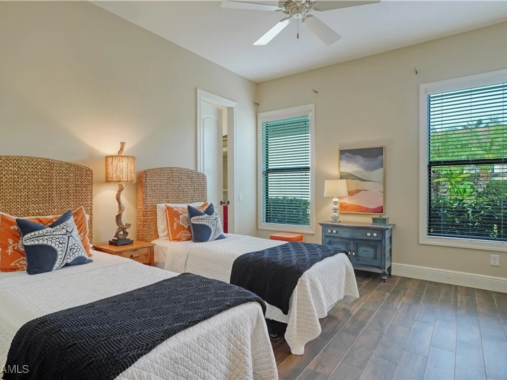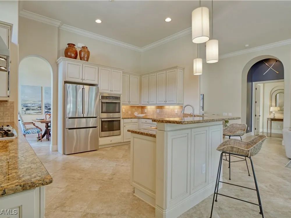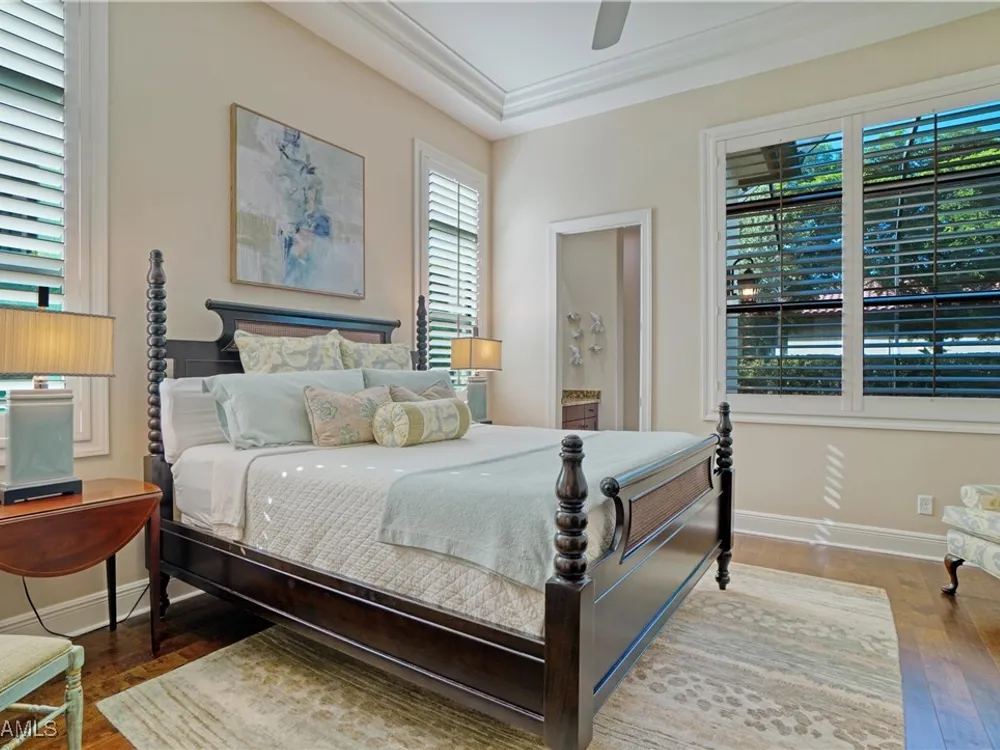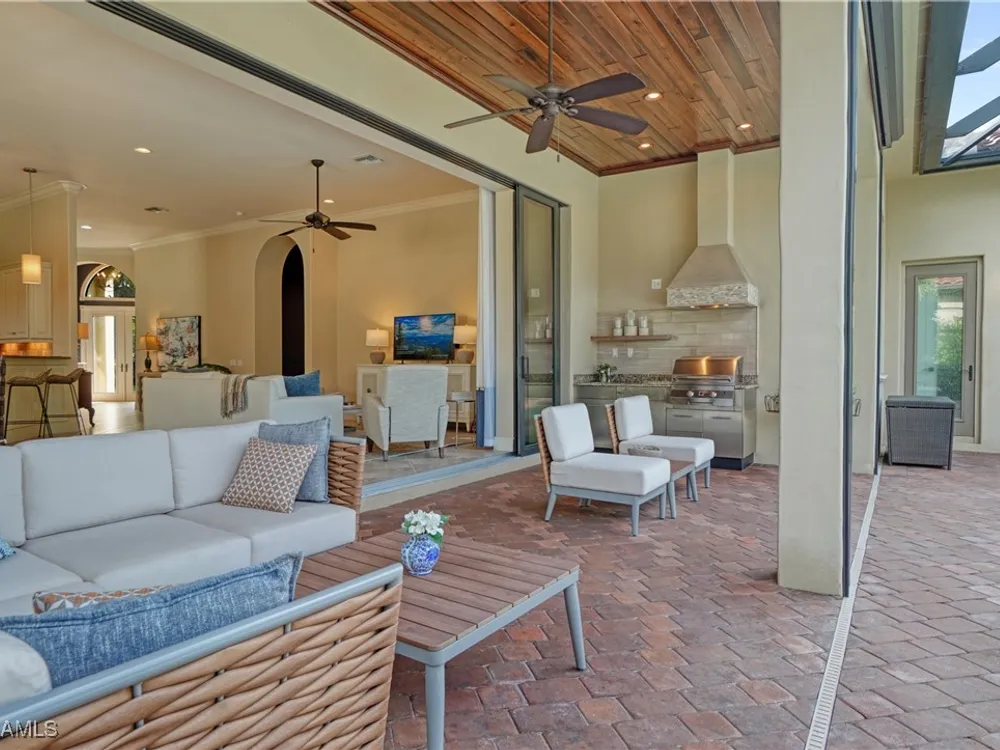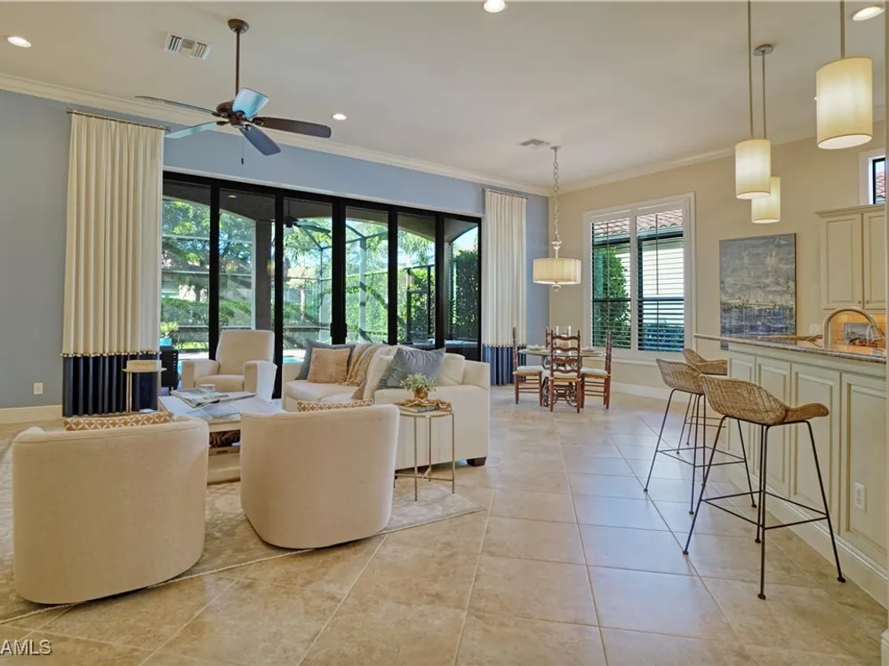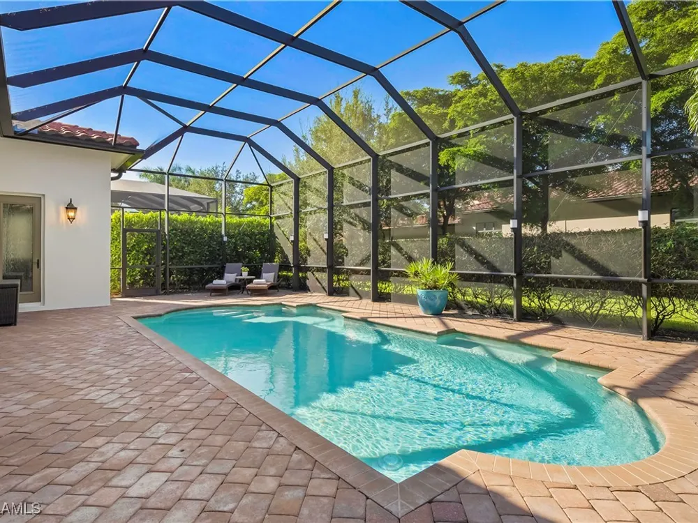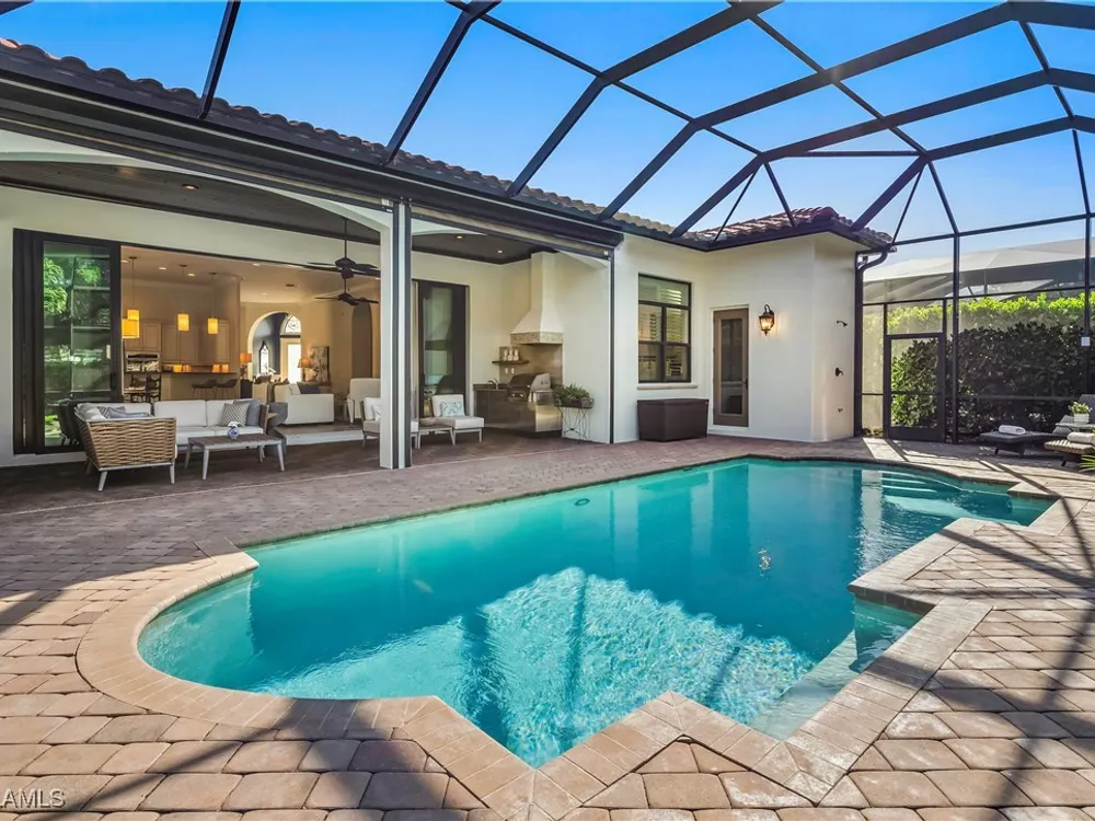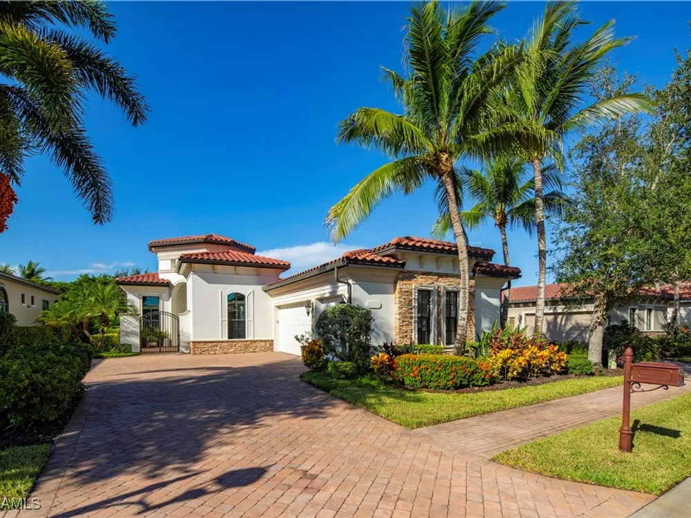 Welcome to the LOWEST PRICE PER SQ/FT of single family homes available in Treviso Bay, the world class resort community just 5 miles south of downtown Naples. Experience the elegance of a move-in ready Taylor Morrison partially furnished executive home, recently receiving a TOTAL EXTERIOR MAKEOVER & 2 NEW LENNOX HVAC SYSTEMS. With a courtyard gated entrance, this spacious 2935 sq ft home is a bright, open-concept family retreat with modern finishes, a chef's kitchen, and backyard built for entertaining. It features 3-4 bedrooms (or den/office), 3 full/2 half baths, a formal dining room adjacent to a well-appointed kitchen with gas stovetop & double oven & reverse osmosis sink faucet. 2 private guest suites with walk-in closets & full baths have their own wing, as does the primary suite at the opposite side of the house, with 2 custom finished closets & an expansive master bath. Wall to wall sliders open to a SW facing screened & heated pool for year-round enjoyment. Multiple lanai upgrades enhance the quiet privacy of your backyard oasis, including outdoor kitchen & shower, half bath & electric storm shutters. 12 foot ceilings, all tile/wood floors, custom light fixtures & window treatments, solid core doors, storm impact windows, tankless gas water heater, Bosch fridge, & whole house water softening system all contribute to the home’s allure. Key amenities center is walking distance from home, which includes 8 tennis courts, 3 bocce ball courts, basketball court, fantasy-lap-baby pools, tiki sports bar, fitness & spa centers, his/her saunas and bike/dance studio. 8 pickle ball courts, 5 remote pools & 17 miles of stress free paved bike riding are complemented by (18) activity clubs available for social interactions. TPC golf access May-Oct.