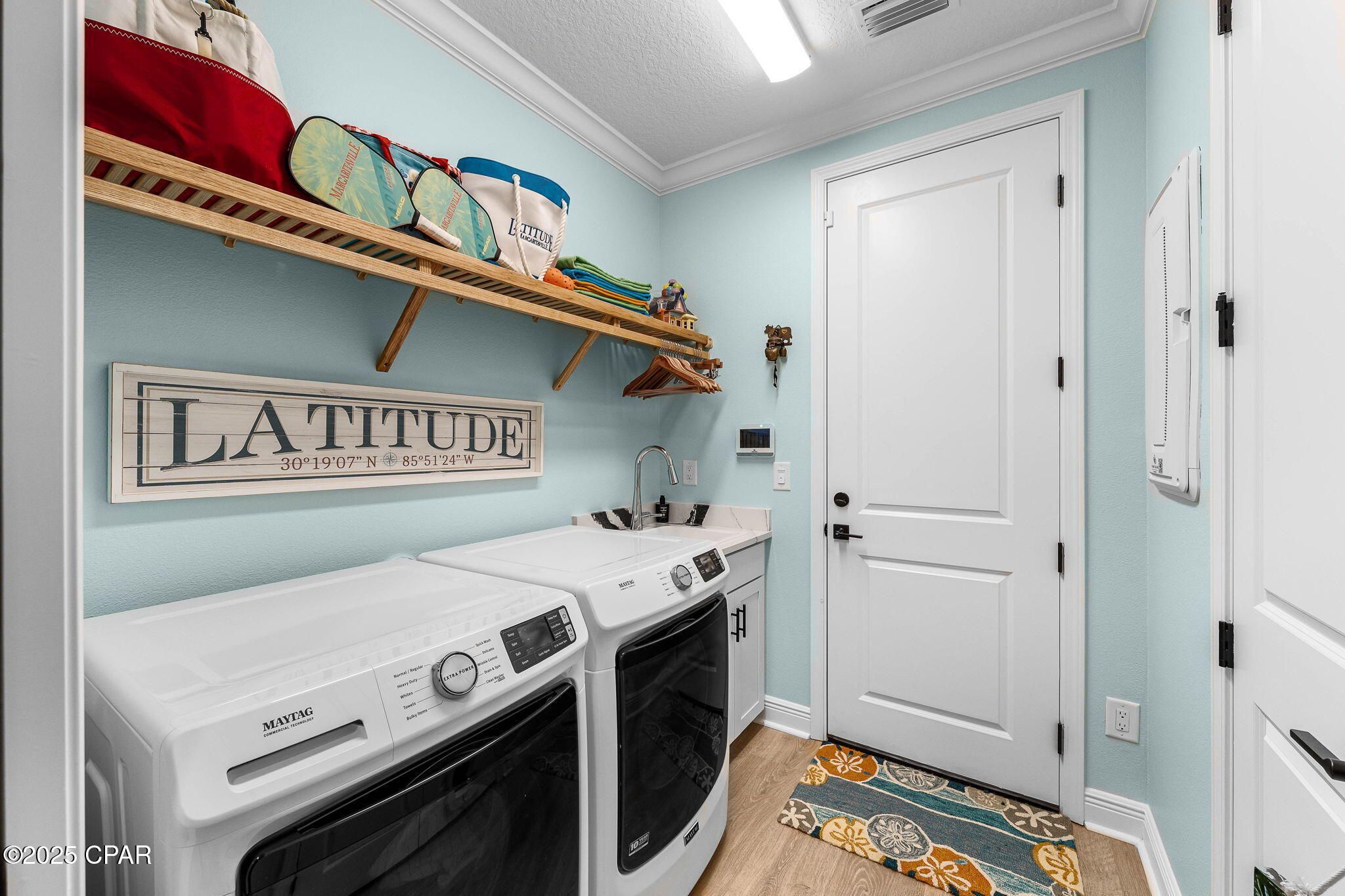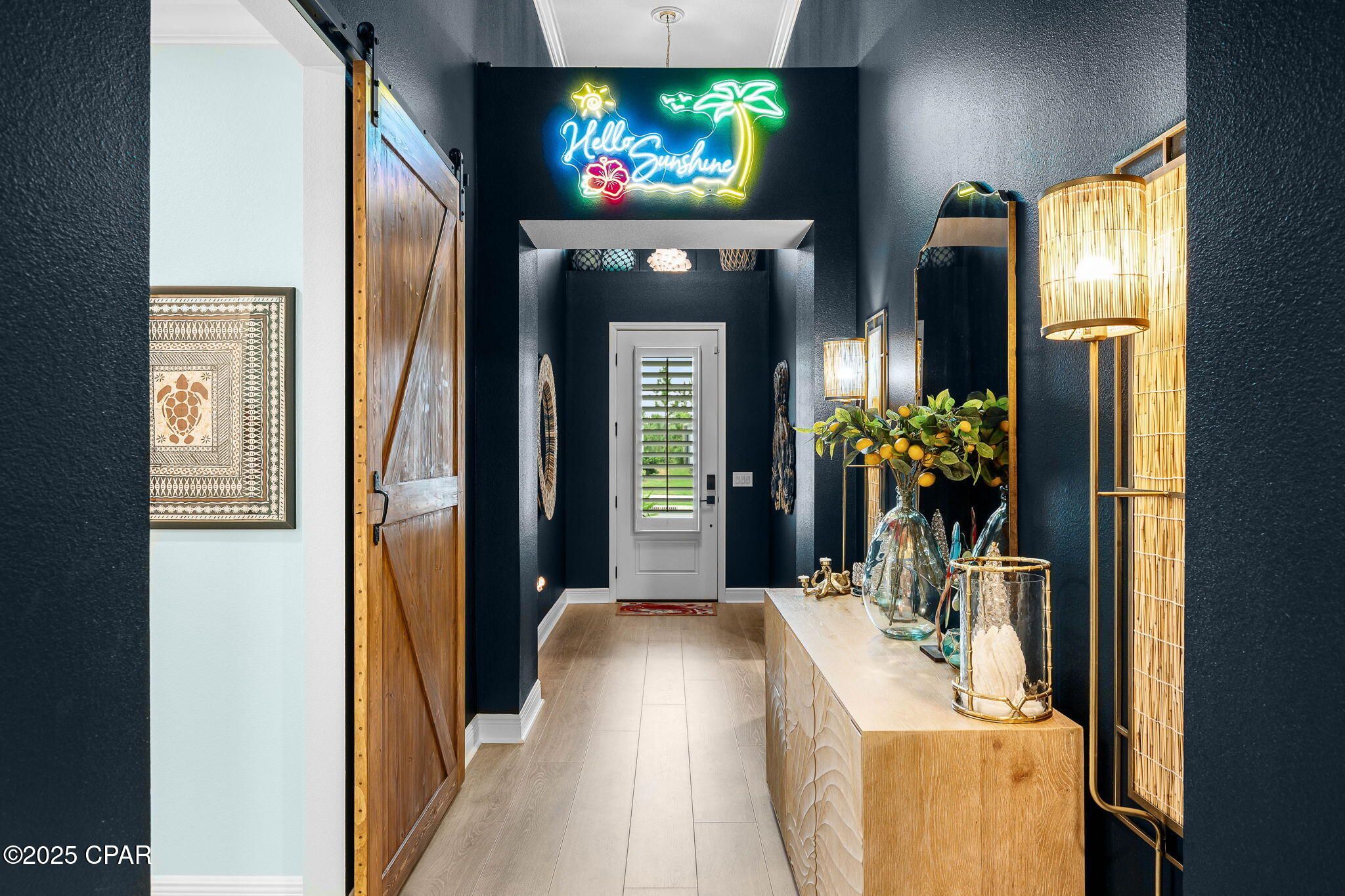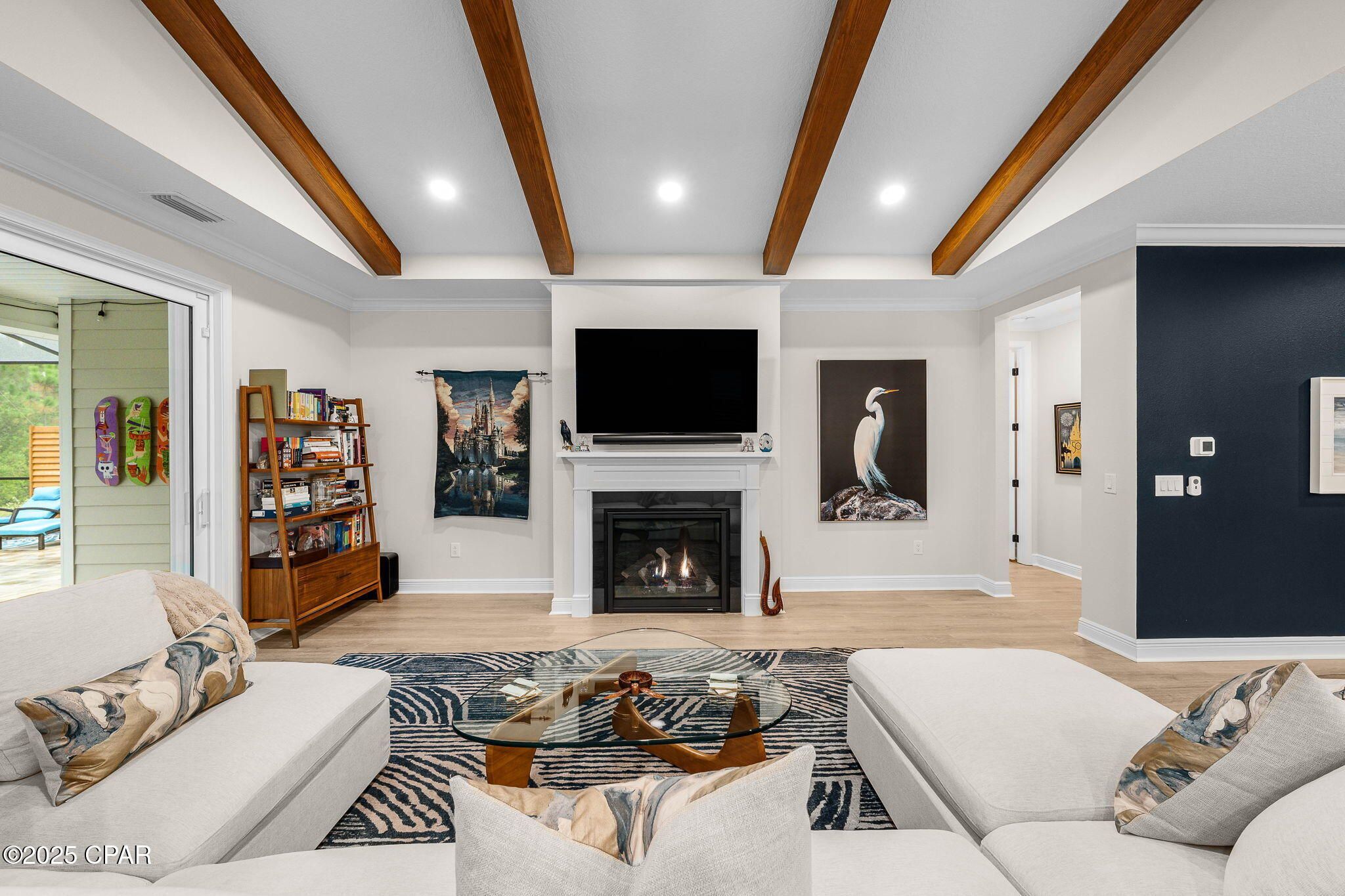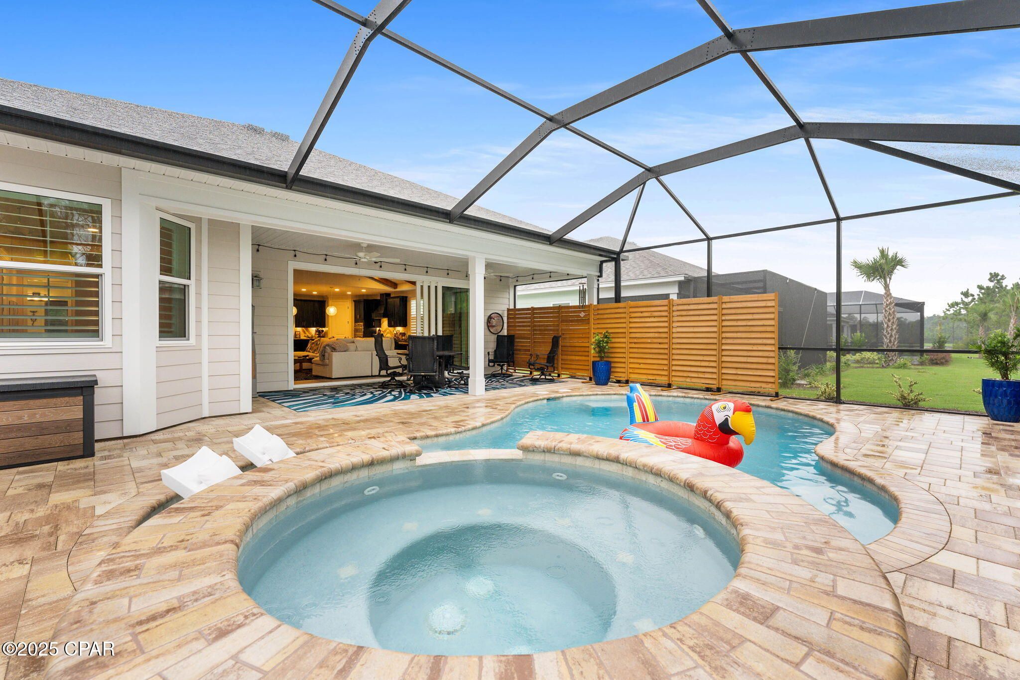 Latitude Margaritaville Watersound - Luxury living at its finest! This highly upgraded Cabana Bay Beach Collection home is crafted for the discerning buyer who values quality, comfort, and style. Nestled on a private preserve lot, this stunning home boasts a resort-style pool and spa with a screened lanai, creating the ultimate retreat for entertaining or relaxation. Inside, an open-concept design is anchored by a chef's dream kitchen with state-of-the-art Thermador appliances, gas cooktop, double ovens, vent hood, wine refrigerator, and stunning level 6 quartz countertops. The great room is the centerpiece, showcasing a gas fireplace, vaulted ceiling with stained beams, and abundant natural light. Upgraded Revwood by Mohawk laminate flooring flows throughout, complemented by designer lighting and designer paint accents in every room. The oversized primary ensuite overlooks the pool and preserve, with a spa-inspired bath offering a private retreat with a luxurious tile shower with frameless shower enclosure, double vanities, quartz countertops, framed bath mirror, oil rubbed bronze fixtures and more! Two additional spacious bedrooms and a full bath, plus half bath, provide comfort for guests. A den/office with custom built-ins, wet bar, and second wine refrigerator makes working or hosting seamless. Custom barn door will provide privacy for space to be used as a home office/study. Additional features include: Paver walkway and driveway. Fully equipped laundry room with front-load washer & dryer, sink, and quartz countertops, Upgraded baths with tile floors & showers. Plantation shutters throughout the entire home. Garage with epoxy floors, Hurricane impact windows, whole-house water filtration system, Planet Secure security system, Exterior front and rear landscape lighting. Home includes an adorable Margaritaville ready Golf-cart. Furniture is available for additional purchase. Living in Latitude Margaritaville Watersound means embracing a true resort-style, active adult 55+ community, coastal lifestyle designed for fun and relaxation. At the heart of it all is the Town Square where live entertainment fills the air on a daily basis and every Fri/Sat. night! Homeowners enjoy: The Resort-style pools- perfect for lounging in the Florida sunshine or enjoying a swim with friends. State-of-the-art fitness center & group classes - including yoga, spin classes and lap pool and spa, water aerobics to name a few. Walking, biking, and golf cart trails that wind through the community with easy access to all amenities and a underpasses for safe and convenient access throughout the neighborhood. Sports courts - including pickleball, tennis, and bocce, basketball encouraging friendly competition and active living. Kayak launch for adventure seekers, Last Mango Theater for shows and events, ceramics and wood working shops, pet grooming and a dedicated dog park. Beyond the amenities, Latitude Margaritaville Watersound offers a low-maintenance lifestyle—with lawn care included in HOA dues, a 1 year Master Care home warranty from the original close date and a 2/10 structural warranty, giving residents more time to enjoy the beach, boating, or exploring nearby Panama City Beach and 30A. Whether it's a sunset golf cart ride, cocktails by the pool, or mingling with neighbors at one of the many social groups, this is a place where every day feels like a vacation. This home is more than just a showcase of luxury and upgrades—it's a gateway to the Latitude Margaritaville lifestyle. From mornings spent on the lanai overlooking the preserve to afternoons by your private pool and evenings gathering with neighbors, every detail of this property invites you to live life like it's always vacation. Exuding comfort, elegance, and the vibrant energy of Latitude Margaritaville Watersound, this home captures the very essence of coastal living at its finest.
