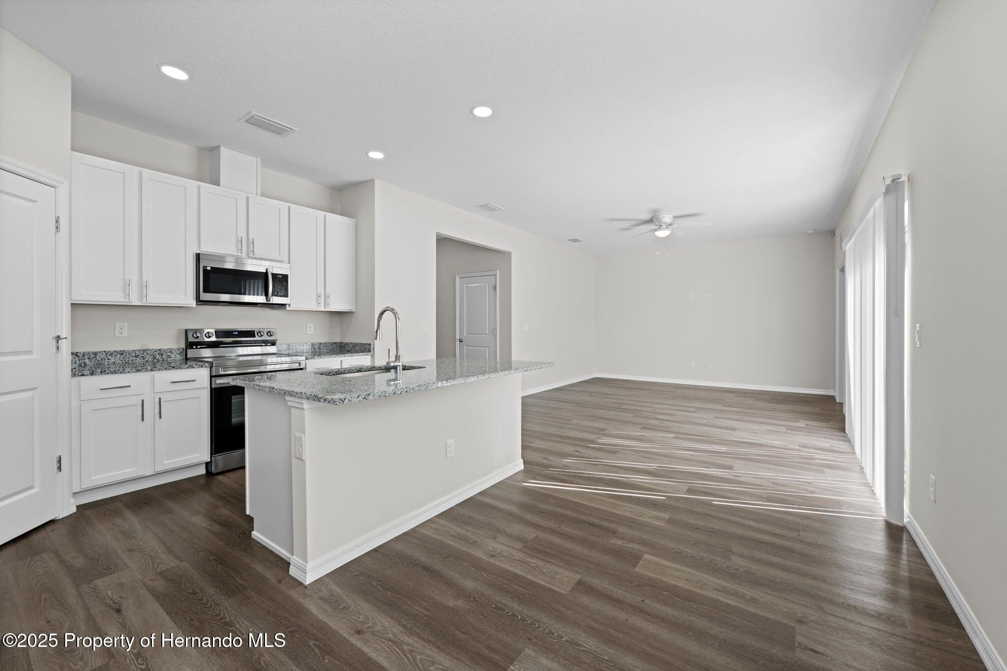 Ready for Immediate Occupancy! This brand-new 3-bedroom, 2-bathroom home with a 2-car garage offers 1,550 sq ft of living space (2,069 total) and is located in the highly sought-after gated community of GlenLakes Country Club! Step inside and be welcomed by a spacious, open layout ideal for modern living. The kitchen boasts rich wood cabinetry, granite countertops, stainless steel appliances, a breakfast bar that seats three, LED lighting, and beautiful, easy-to-maintain flooring that runs throughout the entire home. The bright and airy living room includes sliding glass doors that open to the backyard. Enjoy the convenience of an indoor laundry room, complete with washer and dryer. The generous primary suite features a walk-in closet and a private bath with dual sinks, a tub/shower combo, wood vanity, and sleek LED lighting. Two additional bedrooms are located near the guest bath, which includes granite counters, tile-surround tub/shower combo, and matching cabinetry. This home is nestled within GlenLakes, home to a stunning 18-hole championship golf course and a vibrant clubhouse offering a full-service restaurant and the popular 19th Hole Grill & Bar. Gated community with 24/7 security for peace of mind. Conveniently located near major shopping centers, restaurants, and everyday essentials. Drive your golf cart to the many amenities: fitness center, tennis and pickleball courts, lakeside pool and spa, game and card rooms, billiards, library, yoga studio, dog park, playground, and Veterans Memorial. With over 100 clubs and social groups to join, there's always something to enjoy! Located just 1 hour from Tampa, and close to beaches, Pine Island sunsets, boating, fishing, kayaking, and more. HOA dues include cable and internet for added value and convenience!