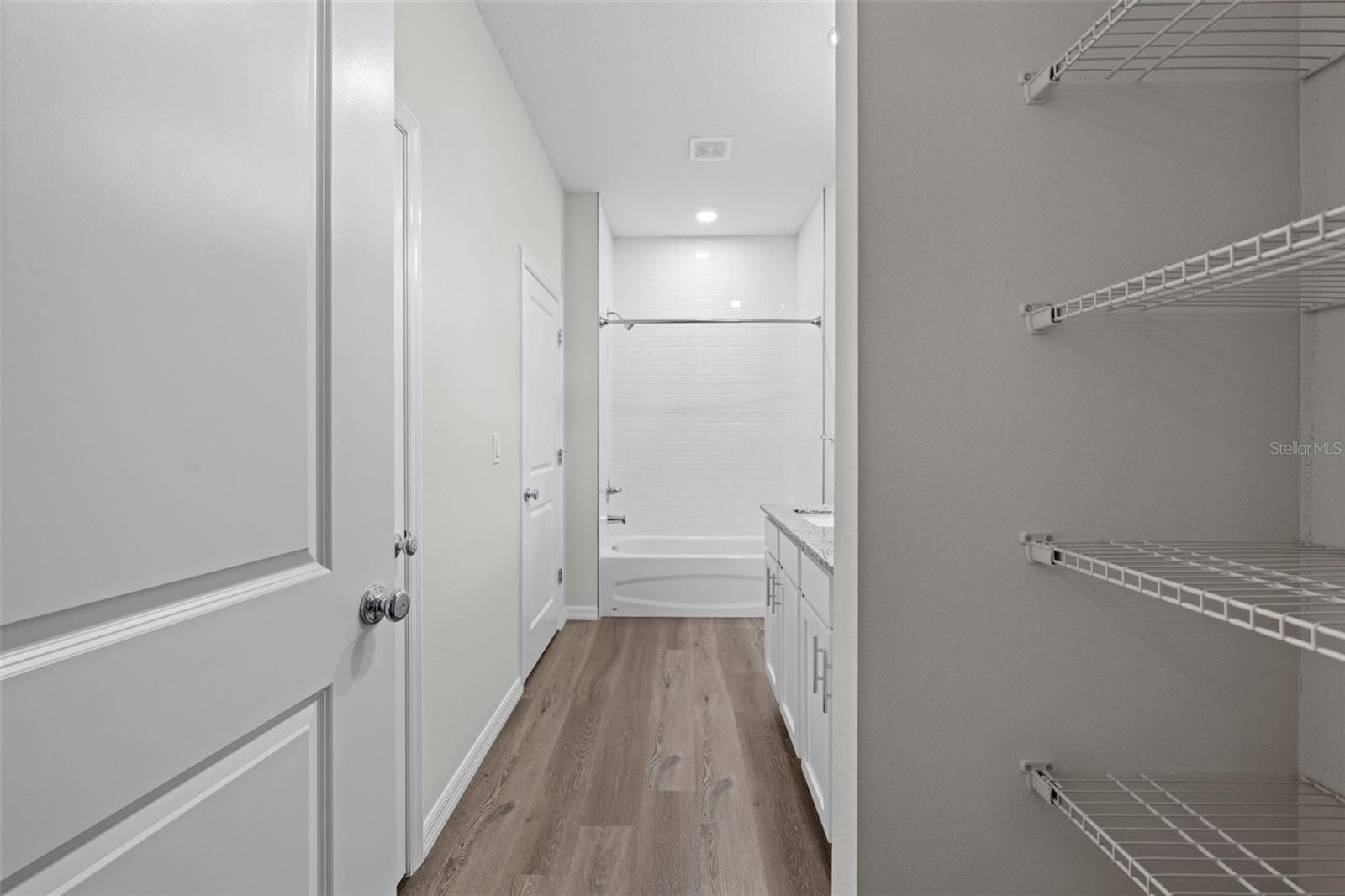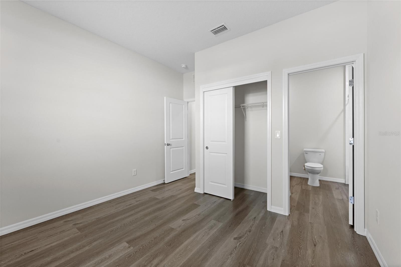 - Main Level Primary, Solid Surface Counters, Solid-Wood Cabinets, Stone Counters, Thermostat, Walk-In Closet(s)