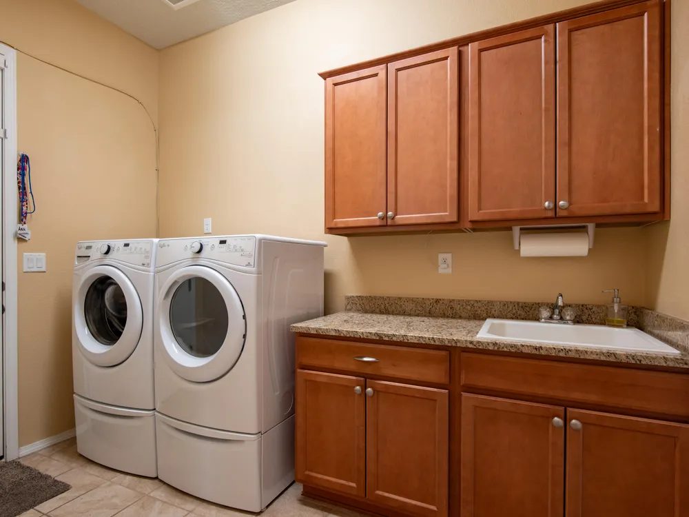 - Built-In Electric Range, Cooktop, Dryer, Dishwasher, Disposal, Microwave, Refrigerator, Range Hood, Washer
