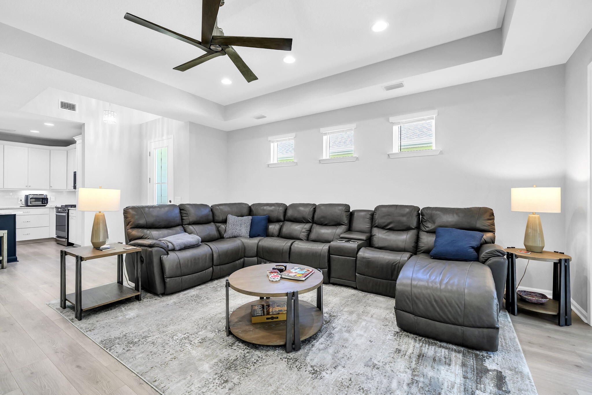 This Tortola model villa takes ''move-in ready'' to a whole new level. Offered fully furnished with brand-new LazyBoy pieces throughout—some still with the tags—this 2-bedroom, 2.5-bath home truly checks all the boxes. An extended lanai maximizes outdoor living and backs to a peaceful preserve, offering privacy and a serene backdrop. Inside, you'll find all the upgrades buyers ask for: no carpet, easy-maintenance finishes, and an upgraded kitchen and a washer and dryer already included. And yes—the golf cart is already in the garage. Just bring your toothbrush and your favorite beverage. Located in the 55+ Latitude Margaritaville Watersound community, this home comes with a lifestyle that's as easy as it is fun. The HOA maintains the yard, so weekends are for pickleball, resort-style pools, and sunset rides - not mowing or weeding. Whether you're locking the door to travel or settling in to enjoy the day-to-day amenities, this is true maintenance-free living done right.