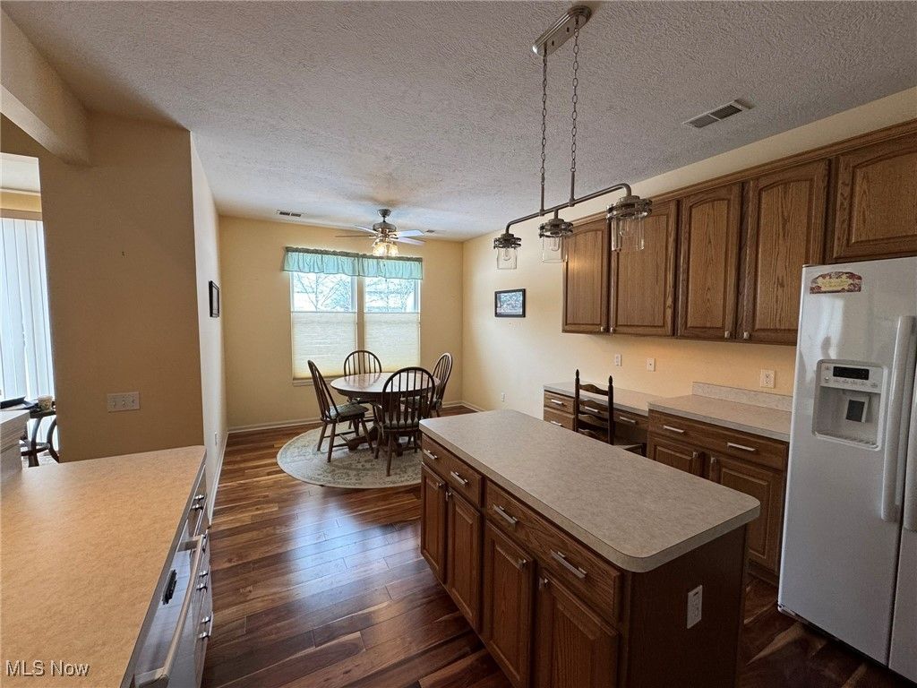 Welcome to 9319 Asbury Lane in the desirable Pioneer Ridge subdivision of North Ridgeville. This beautifully maintained Brampton model offers 2 bedrooms, 2 full baths, and a versatile den/office all designed with comfort and style in mind. Enjoy 9-foot ceilings and an extended great room that fills the home with abundant natural light from numerous windows as well as a spacious dining room, creating an open and inviting atmosphere. Eat-in kitchen offers plenty of storage and counter space. The spacious primary suite features a tray ceiling, private bath with walk-in shower, soaking tub and large walk-in closet, providing a relaxing retreat. Recent updates add peace of mind and value, including whole-house carpeting (2022), a new roof (2022), and a brand-new HVAC system (2025). Thoughtfully laid out and move-in ready, this home combines modern updates with timeless design in a sought-after community. Perfect for easy living and entertaining. 2-car attached garage has 4' extension and Nature Stone floor offering extra space. Relax on the large patio with Sunsetter awning (2021), Nature Stone overlooking private treed area. Del Webb community offers NE Ohio's premier 55+ community featuring indoor and outdoor pools, exercise facility, bocce ball courts, pickleball & tennis courts and much more. Free Weekly Fitness Classes as well as many clubs, groups, cards & games to choose from. This is a pet friendly neighborhood offering walking trails and plenty of green space. Located near highways, shopping, parks and more.