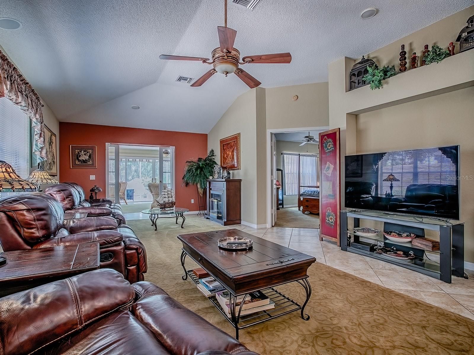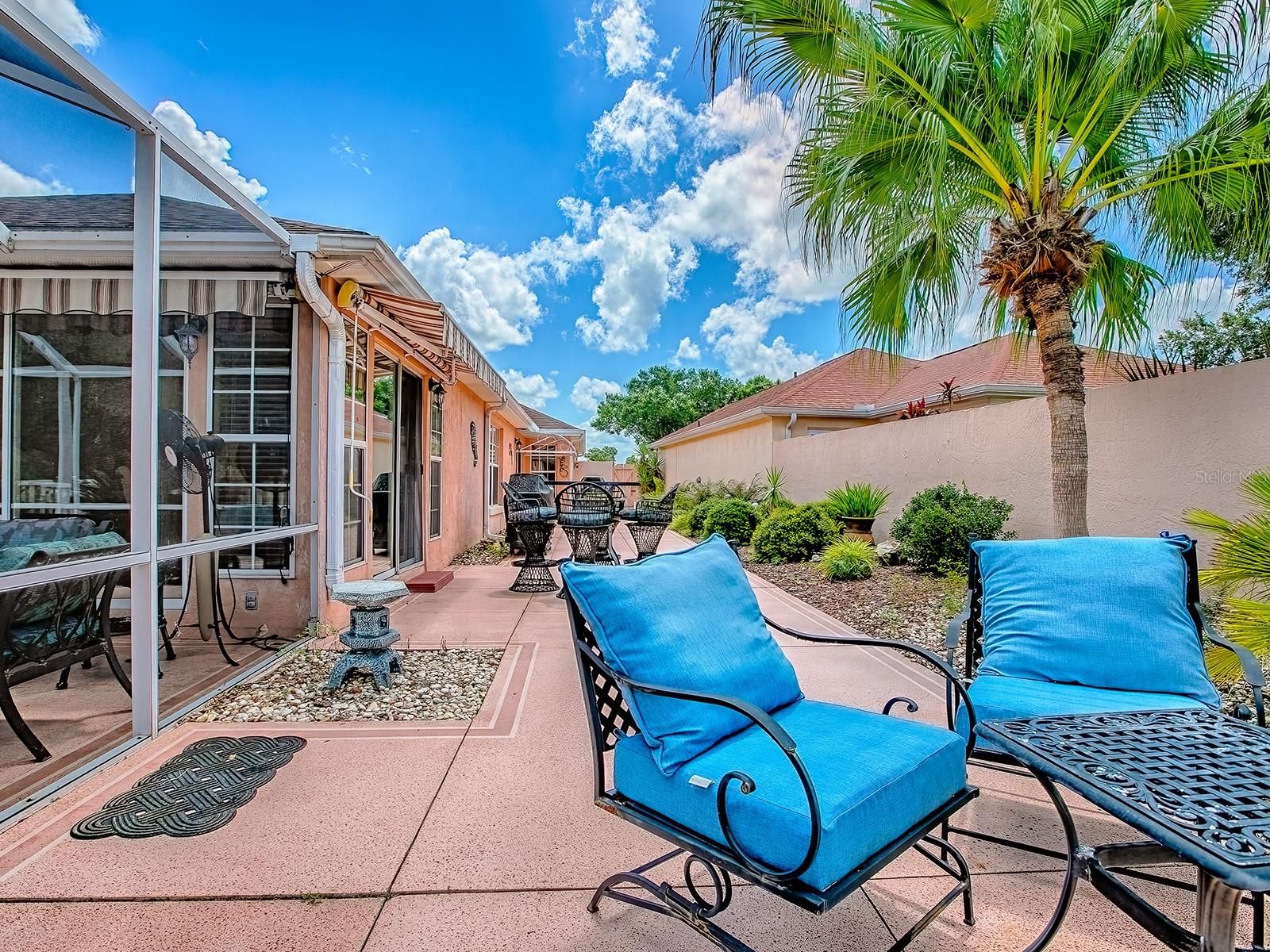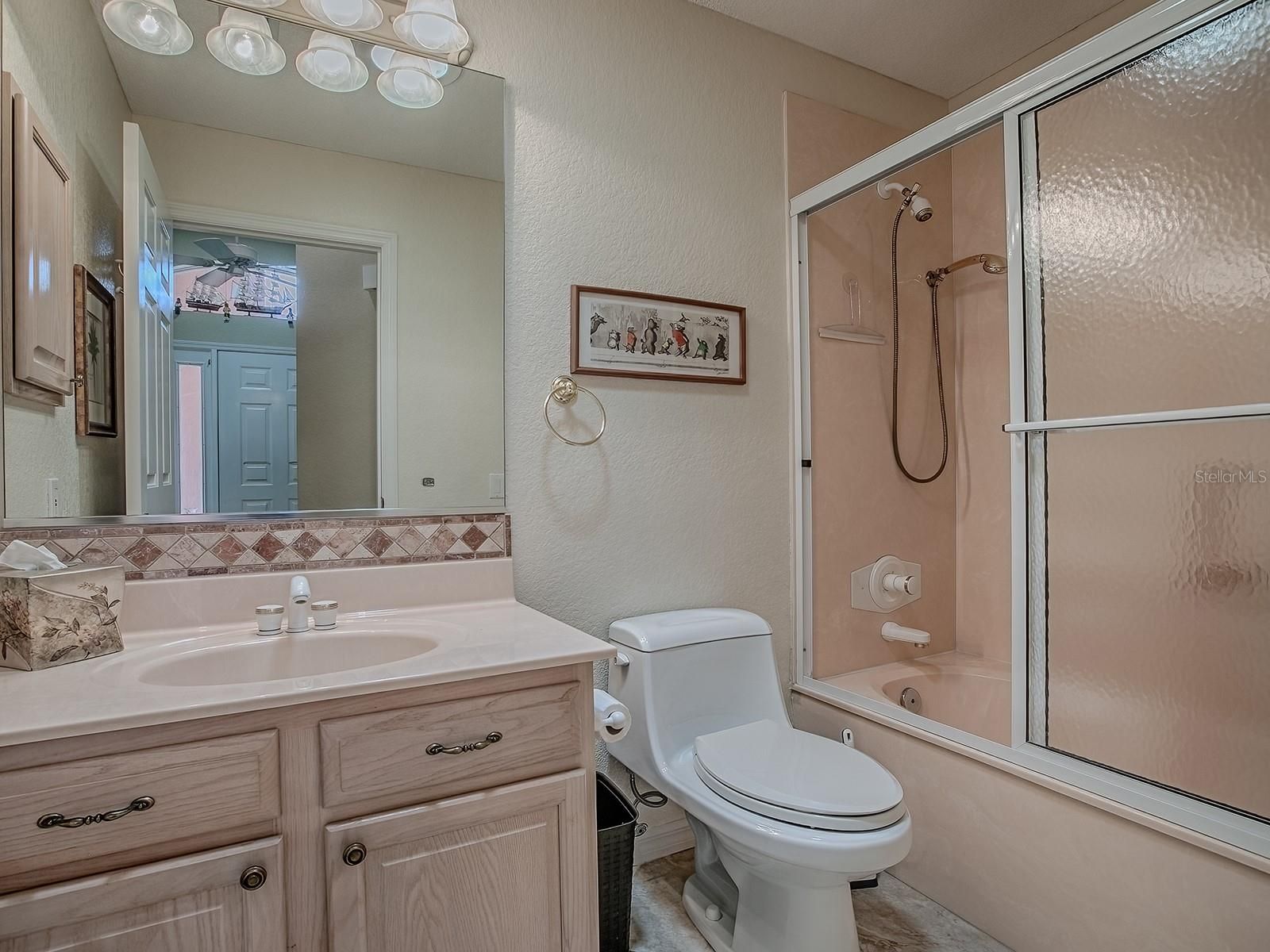 NEWER 2023 ROOF, BOND PAID, BROWARD WARRANTY, TERMITE BOND, AND TWO CAR GARAGE on this TURNKEY, INCLUDING GOLF CART, 2/2+ FLORIDA ROOM, GOLF COURSE COURTYARD VILLA located ACROSS THE STREET FROM SPANISH SPRINGS in HACIENDA VILLAS! SPECTACULAR GOLF COURSE VIEW of the 5th hole of the Championship course in Hacienda Hills. Enjoy the view from the Florida room or sitting in your IN GROUND HOT TUB in the expansive birdcage covering the large courtyard patio! Shade is offered by the remote controlled awning! This lovely villa offers diagonal tile with carpet insert throughout the dining, living area, and the Florida room with diagonal time in the kitchen, and carpet in the bedrooms. The kitchen has GRANITE countertops with diagonal tile backsplash, under cabinet lighting, a solar tube, and newer appliances. You'll also find SOLAR TUBES in the guest and primary bathrooms. Leaf filters were added with the new roof so low maintenance with the clean-up of your gutters. This is a GREAT LOCATION right around the corner from Spanish Springs for shopping, dining, and entertainment. Several Recreation Centers and 2 executive GOLF COURSES, Chula Vista and Mira Mesa close by for lots of fun! COME SEE ALL THIS VILLA AND THE SURROUNDING AREA HAS TO OFFER!