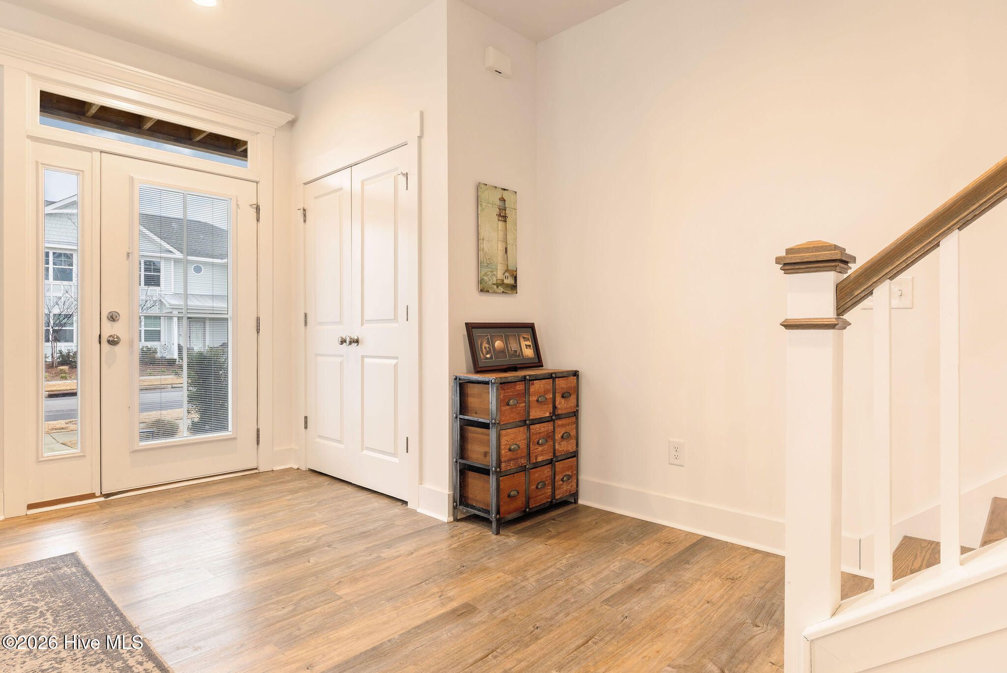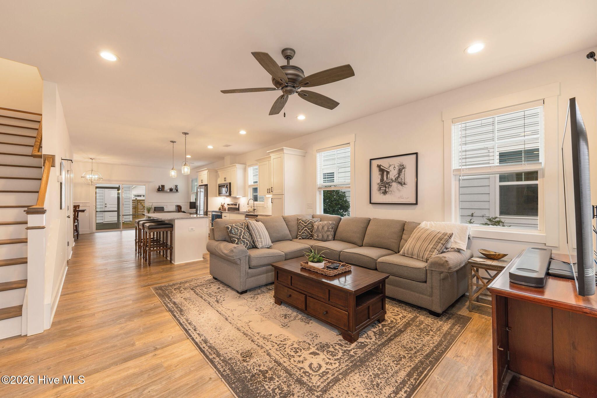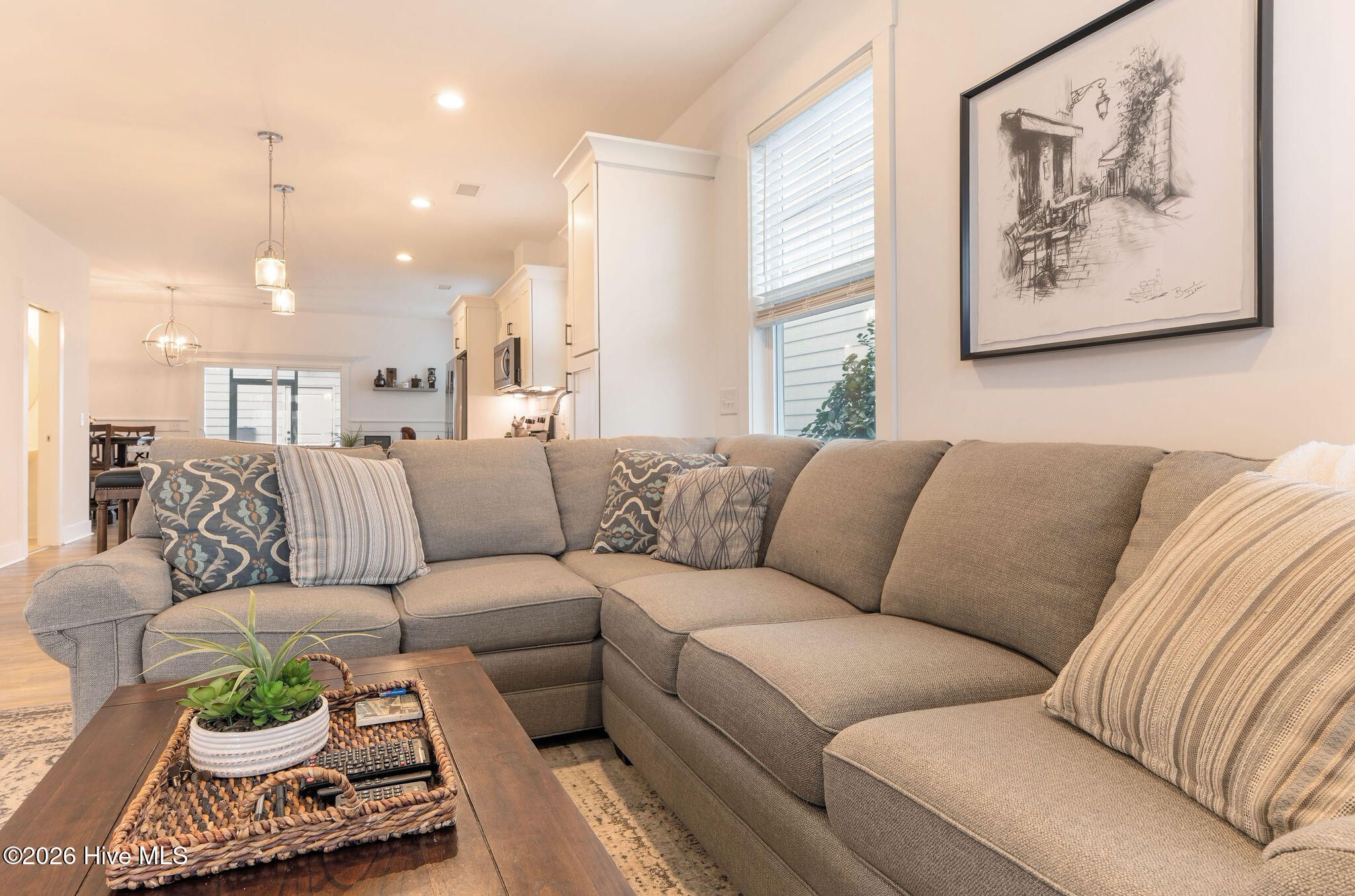This home is one of just six rare Ketch floor plans—a unique opportunity in RiverLights. This 2-bedroom, 2.5-bath end-unit townhome with a backyard and detached one-car garage offers an exceptional blend of comfort, convenience, and low-maintenance living. Enjoy outdoor living from four distinct spaces: a welcoming front porch, a covered balcony off the primary suite, a rear covered screened porch, and a fully fenced backyard—maintained by the HOA. Inside, thoughtfully selected upgrades complement the open-concept layout. The main level features LVP flooring, hardwood stairs, and a well-appointed kitchen with granite, subway tile backsplash, undercabinet lighting, pantry cabinet, refrigerator surround, and stainless steel appliances—including the refrigerator. A generous dual-purpose space easily accommodates both dining and a home office or desk area. The primary suite is a true retreat, complete with its own covered porch overlooking peaceful pond views, a walk-in closet, and an en suite bath featuring a tiled shower with herringbone accent, framed glass enclosure, and dual vanities. The secondary bedroom also includes a walk-in closet. Cottage-style trim and refined finishes are found throughout the home. Enjoy low-maintenance living at its best—homeowners are responsible for the interior only. The HOA provides a comprehensive ''all-in'' master insurance policy, along with landscaping, irrigation, exterior building maintenance, pressure washing, pest control, and a termite bond. RiverLights offers a unique blend of natural beauty and vibrant amenities, with easy access to the 38-acre lake and scenic 3.4-mile walking and biking trail. The growing mixed-use district features restaurants, a bike shop, nail salon, and more to come. Community amenities include a clubhouse, billiards, two fitness centers, two pools, dog park, playgrounds, bocce courts, and pickleball! 6 Month Min. Lease Term per HOA.