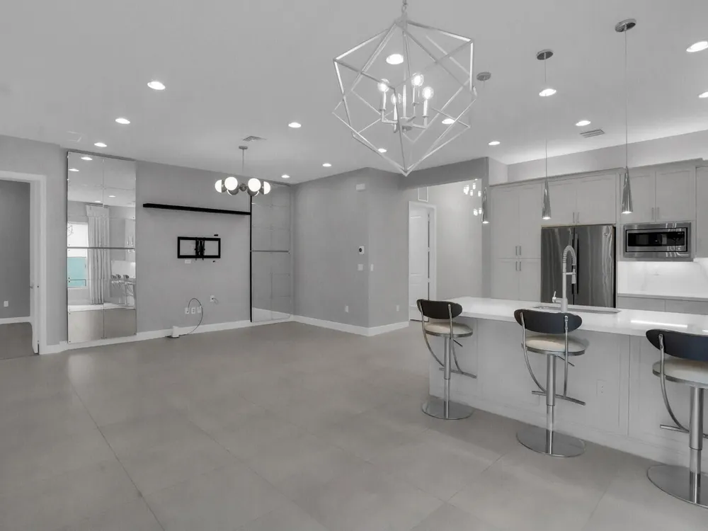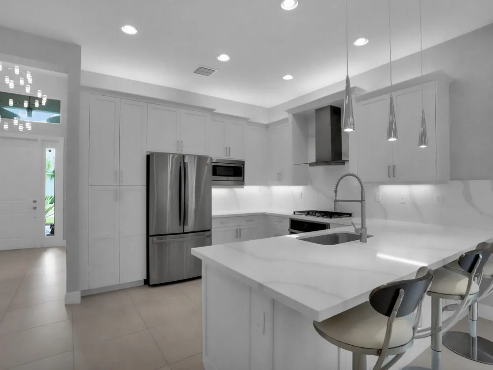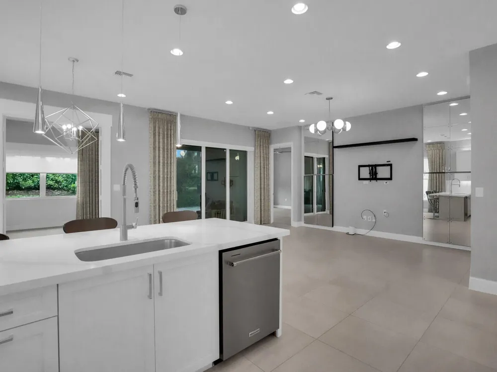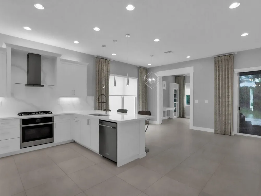 FORMER GL MODEL! HARDLY LIVED IN! THIS EXQUISITE CONTEMPORARY 2BR + DEN/3RD BR/OFFICE, 2BTH HOME SITS ON A CORNER LOT. EVERYTHING IS UPGRADED! WHITE KITCHEN HAS UPGRADED CABINETS, SS APPLIANCES, & QUARTZ COUNTERTOPS. BTHS HAVE UPGRADED VANITIES, AND MIRRORS UP TO THE CEILING. CUSTOM MIRRORED WALLS IN GREAT ROOM. 24x24 PORCELAIN TILE IN MAIN LIVING AREA & DEN. DEN HAS FRENCH DOORS. OTHER UPGRADES INCLUDE: CUSTOM BLINDS & DRAPERY, GORGEOUS FIXTURES & FANS, DESIGNER WALLPAPER, FULL HOUSE GENERATOR, ELECTRIC HURRICANE SCREEN, EPOXY FLOORING IN GARAGE, IMPACT GLASS WINDOWS & DOORS, GAS APPLIANCES, & SO MUCH MORE! **HIT MORE FOR MORE INFO**