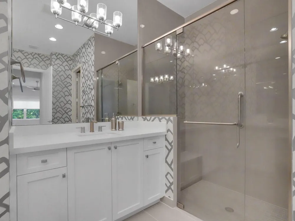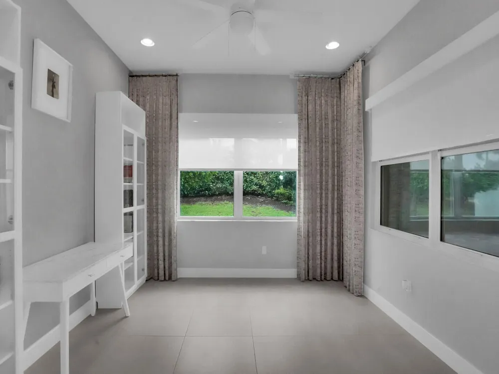 - Cathedral Ceiling(s), Custom Mirrors, Entry Level Living Area, Entrance Foyer, Kitchen Island, Split Bedrooms, High Ceilings, Walk-In Closet(s), Attic, Home Office, Family Room, Great Room, Kitchen/Dining Combo, Eat-in Kitchen, Blinds, Drapes, Impact Glass, Dual Sinks, Primary Downstairs, Sitting Area In Primary Bedroom, Separate Shower