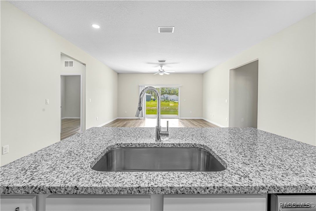- Main Level Primary, Primary Suite, Pantry, Stone Counters, Solid Surface Counters, Tub Shower, Walk-In Closet(s), Sliding Glass Door(s)