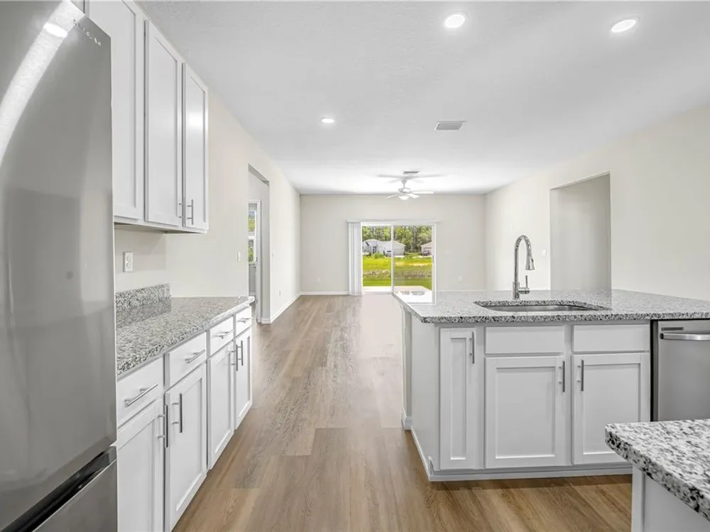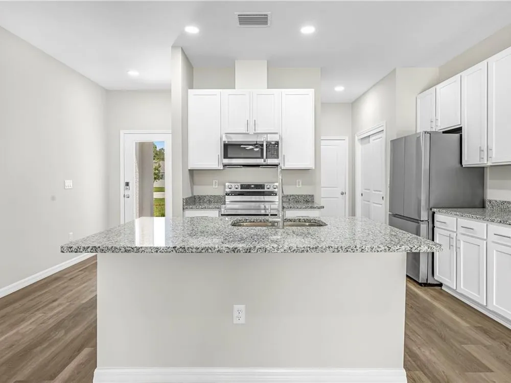 One or more photo(s) has been virtually staged. Ready for Immediate Occupancy! Seller is offering $5,000 to be used toward the buyer’s closing costs and prepaids, or applied toward the first year of HOA dues! This brand-new 3-bedroom, 2-bathroom home with a 2-car garage offers 1,550 sq ft of living space (2,069 total) and is located in the highly sought-after gated community of GlenLakes Country Club! Step inside and be welcomed by a spacious, open layout ideal for modern living. The kitchen boasts rich wood cabinetry, granite countertops, stainless steel appliances, a breakfast bar that seats three, LED lighting, and beautiful, easy-to-maintain flooring that runs throughout the entire home. The bright and airy living room includes sliding glass doors that open to the backyard. Enjoy the convenience of an indoor laundry room, complete with washer and dryer. The generous primary suite features a walk-in closet and a private bath with dual sinks, a tub/shower combo, wood vanity, and sleek LED lighting. Two additional bedrooms are located near the guest bath, which includes granite counters, tile-surround tub/shower combo, and matching cabinetry. This home is nestled within GlenLakes, home to a stunning 18-hole championship golf course and a vibrant clubhouse offering a full-service restaurant and the popular 19th Hole Grill & Bar. Gated community with 24/7 security for peace of mind. Conveniently located near major shopping centers, restaurants, and everyday essentials. Drive your golf cart to the many amenities: fitness center, tennis and pickleball courts, lakeside pool and spa, game and card rooms, billiards, library, yoga studio, dog park, playground, and Veterans Memorial. With over 100 clubs and social groups to join, there’s always something to enjoy! Located just 1 hour from Tampa, and close to beaches, Pine Island sunsets, boating, fishing, kayaking, and more. HOA dues include cable and internet for added value and convenience!