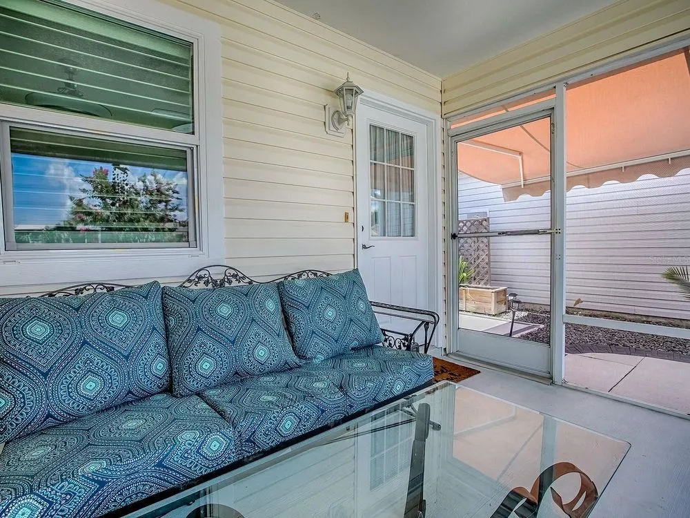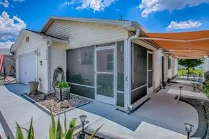 Back on the Market! (Buyers had to back out) ~•SUPER LOW Bond•~ ~•Roof New in 2022•~ ~•HVAC New in 2020•~ ~•Assumable LOW-Interest VA Mortgage•~ Perfect for Florida Living or Rental Income! This Charming 2 bed, 2 bath TURNKEY* CABOT COVE patio villa in the village of Woodbury offers a PRIME OPPORTUNITY for buyers looking for a LOW-MAINTENANCE home or an investment property in The Villages! Enjoy easy living with LUXURY VINYL PLANK flooring (no carpet!), PLANTATION SHUTTERS (throughout!), and TALLER BASEBOARDS for a polished look. The kitchen is a standout with Beautiful WOOD cabinetry, OVER and UNDER cabinet LIGHTING, TILE backsplash, STAINLESS appliances, a GAS Range, and a SUNNY SOLAR TUBE. Behind the Convenient POCKET DOOR is your spacious PANTRY and the INDOOR LAUNDRY room with built-in storage. The spacious primary bedroom features a WALK-IN closet and SLIDING BARN DOOR leading to a stylish EN-SUITE bath with SOLID-SURFACE Shower and FRAMELESS glass doors. Outdoor living is a BREEZE on the side patio with THREE RETRACTABLE AWNINGS for all-day COVER and SHADE. And Behind the villa is a LARGE, GRASSY Area - no Homes Directly Behind! The whole-house water filter, garage utility sink, newer Hot Water Heater, and low bond payoff ($1,063.47) make ownership simple and worry-free. Seller has an ASSUMABLE VA Loan with a 2.2% interest rate! Seller will even include a BROWARD GOLD home warranty. Move in, relax, and start to enjoy your own slice of The Villages lifestyle today! Call today for a Private Showing! Located in the Village of WOODBURY this is a Great location that is EASY IN and OUT of The Villages w/LIGHT traffic even in Peak Season! Close to the Postal Station, Nancy Lopez Country Club, Glenview Country Club, Springdale Pool and Mulberry Grove Rec Center. Shopping, Banking, Restaurants and the VA Center are nearby! Tax line reflects property taxes only and is estimated. Bond Assessment is $197.86/year. (LOW Bond Payoff is $1,063.47.) Current Maintenance Assessment is $518.10/year. Current Fire Dept. $199.91/year. Note: Square footage information is taken from the Public Record and is deemed reliable, but not guaranteed. Room and garage dimensions are approximate and estimated: buyer to verify. *Not included in the Turnkey Package are some decorative items used for staging. ~••BE SURE TO SEE THE 3D 360º MATTERPORT WALKTHROUGH TOUR AT VIDEO TOUR 2!•~ ~•And see the Floor Plan at the end of the Photos•~